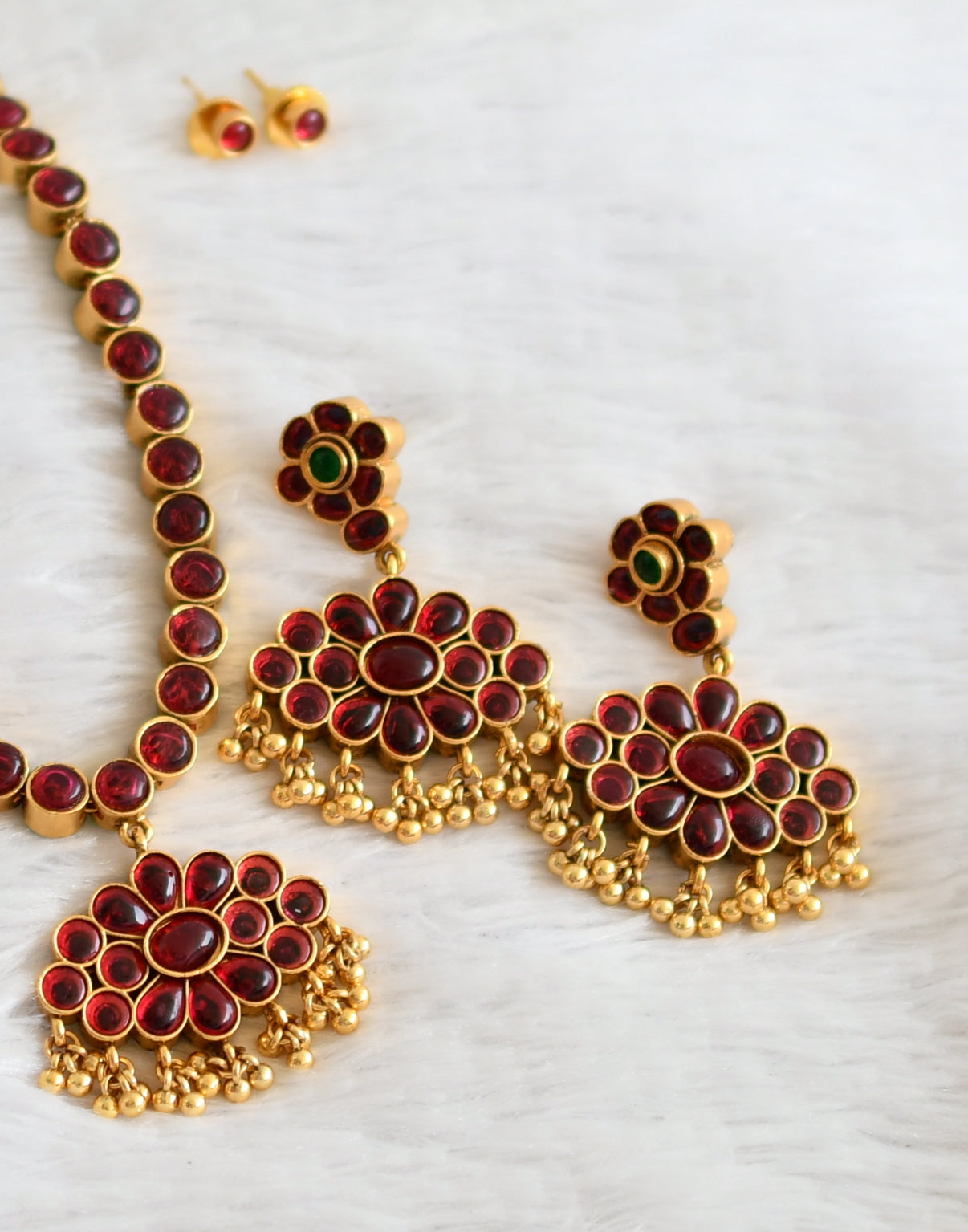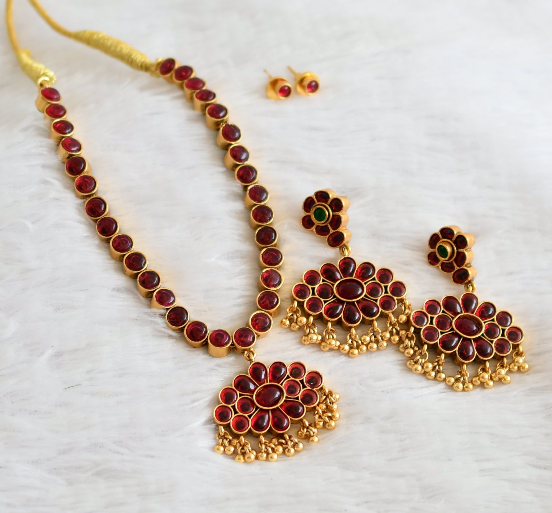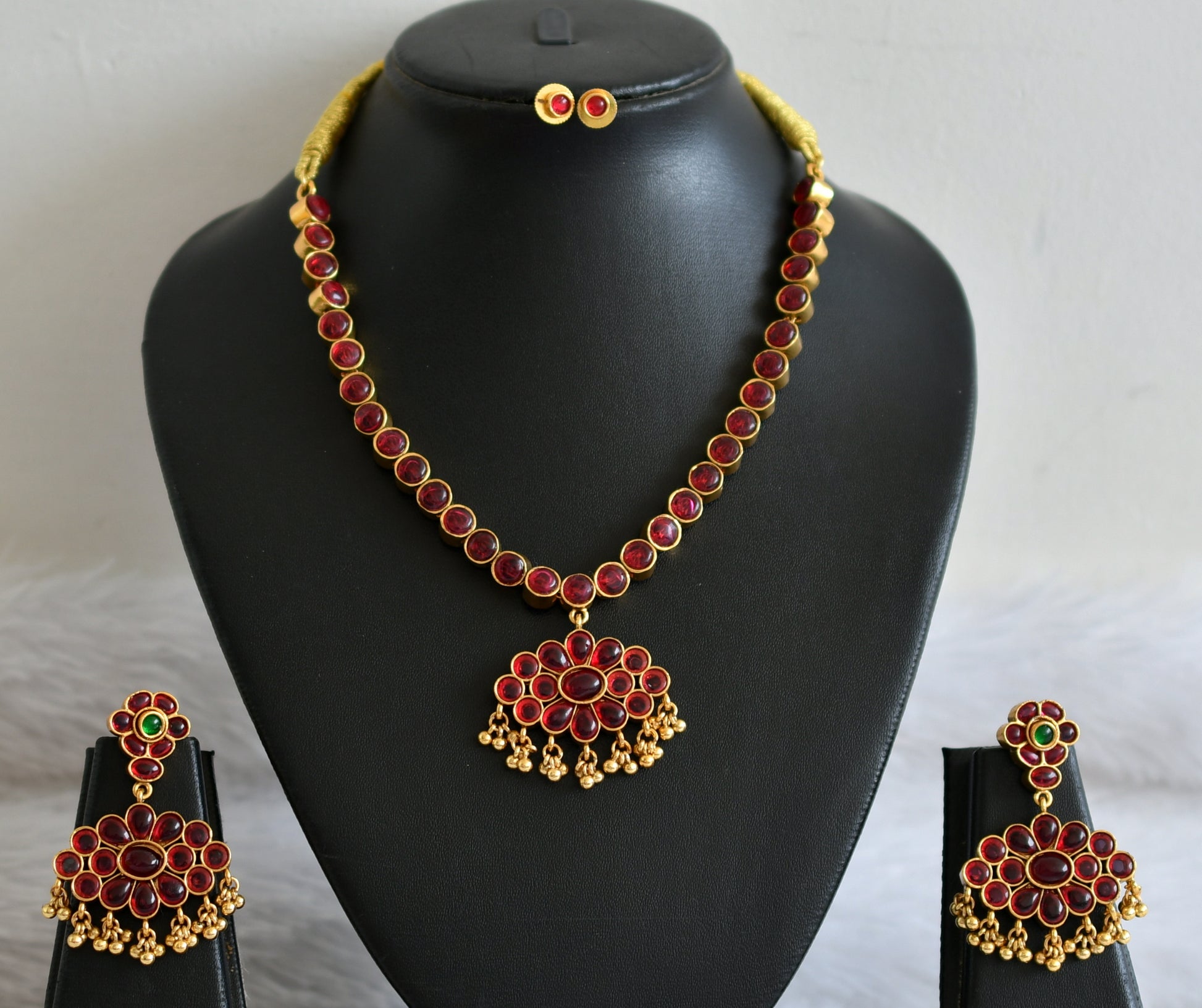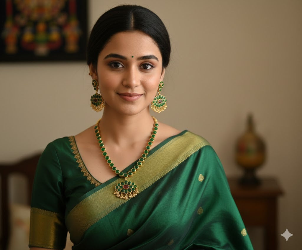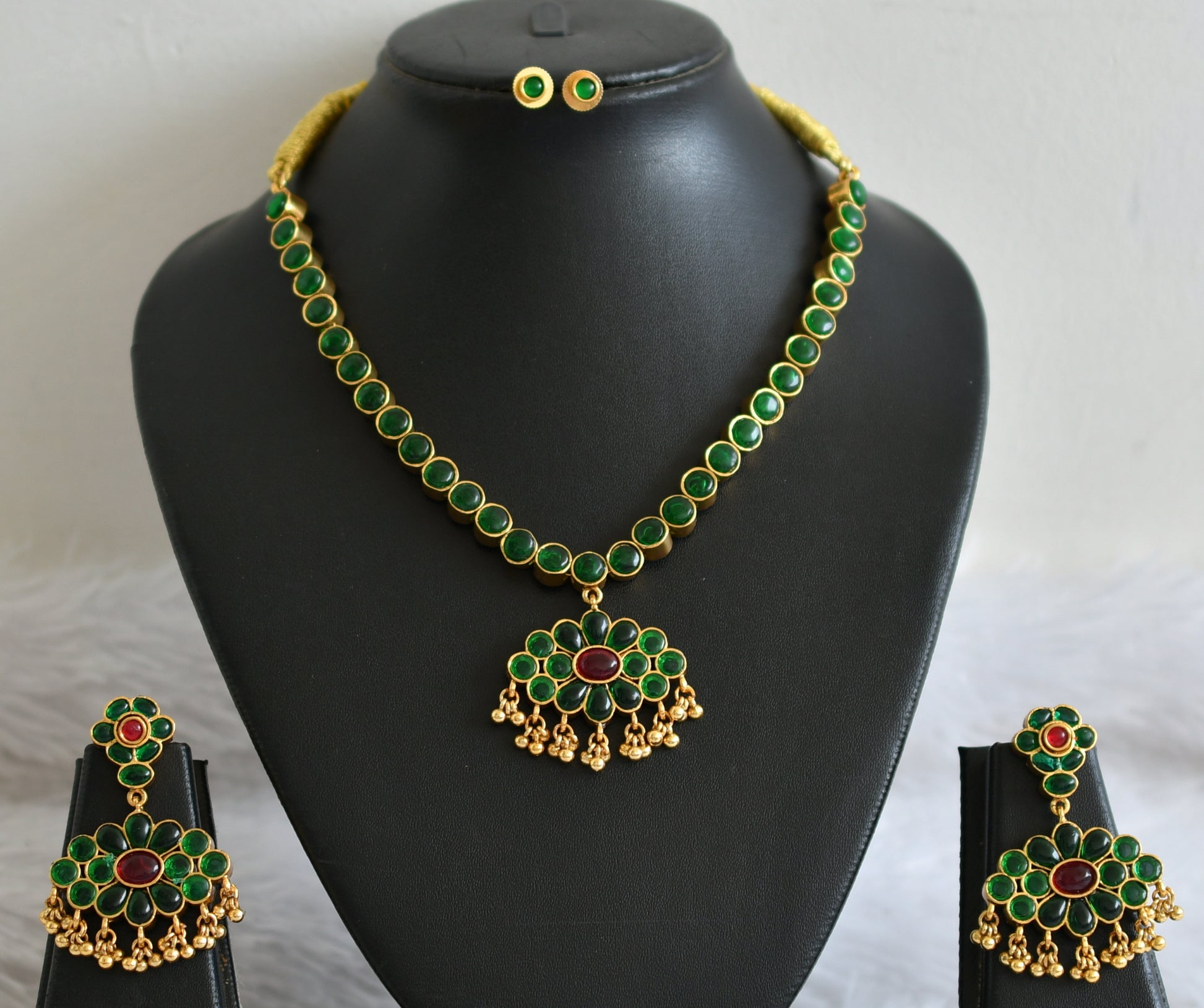 Matte finish kemp-green reversible necklace set dj-36048