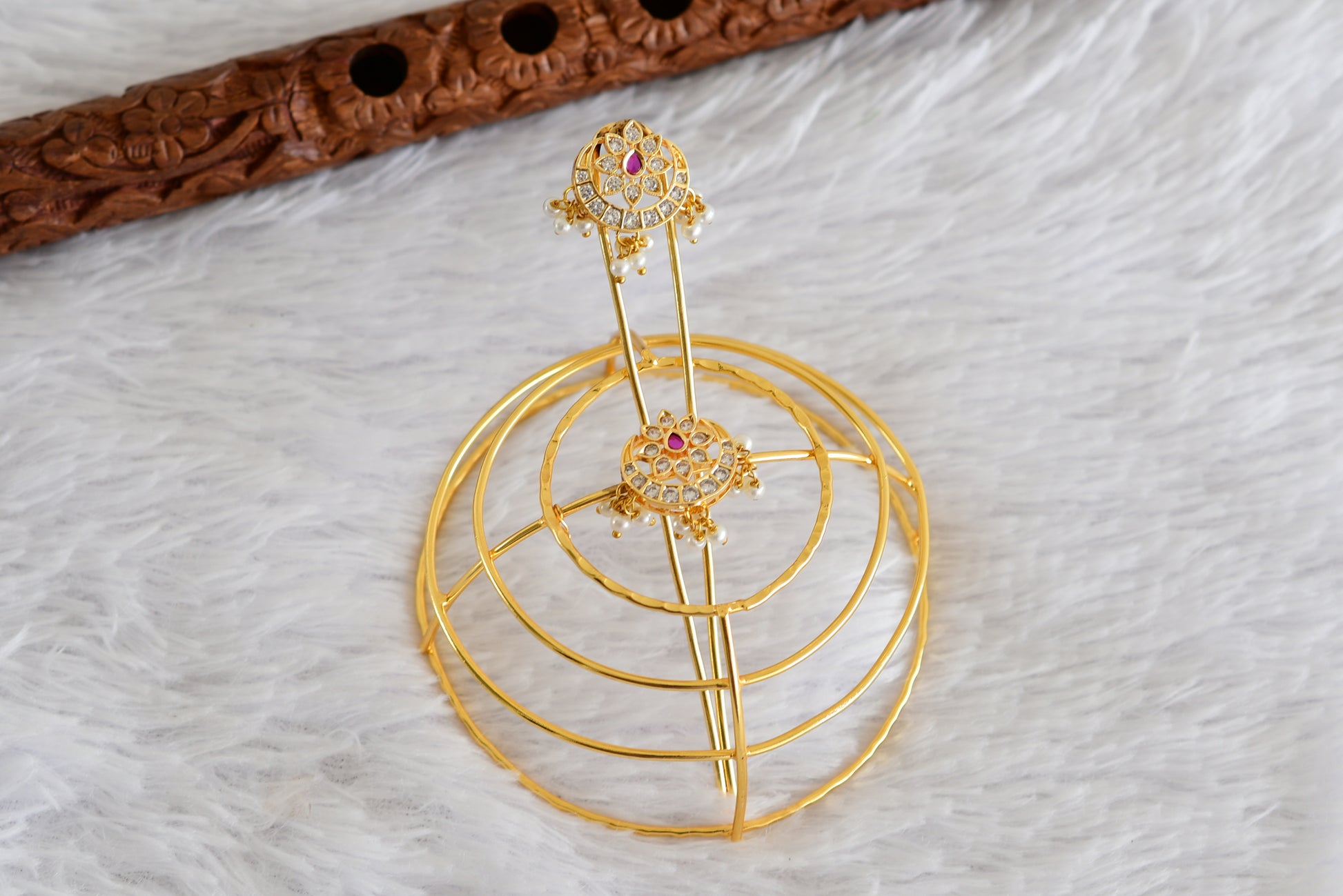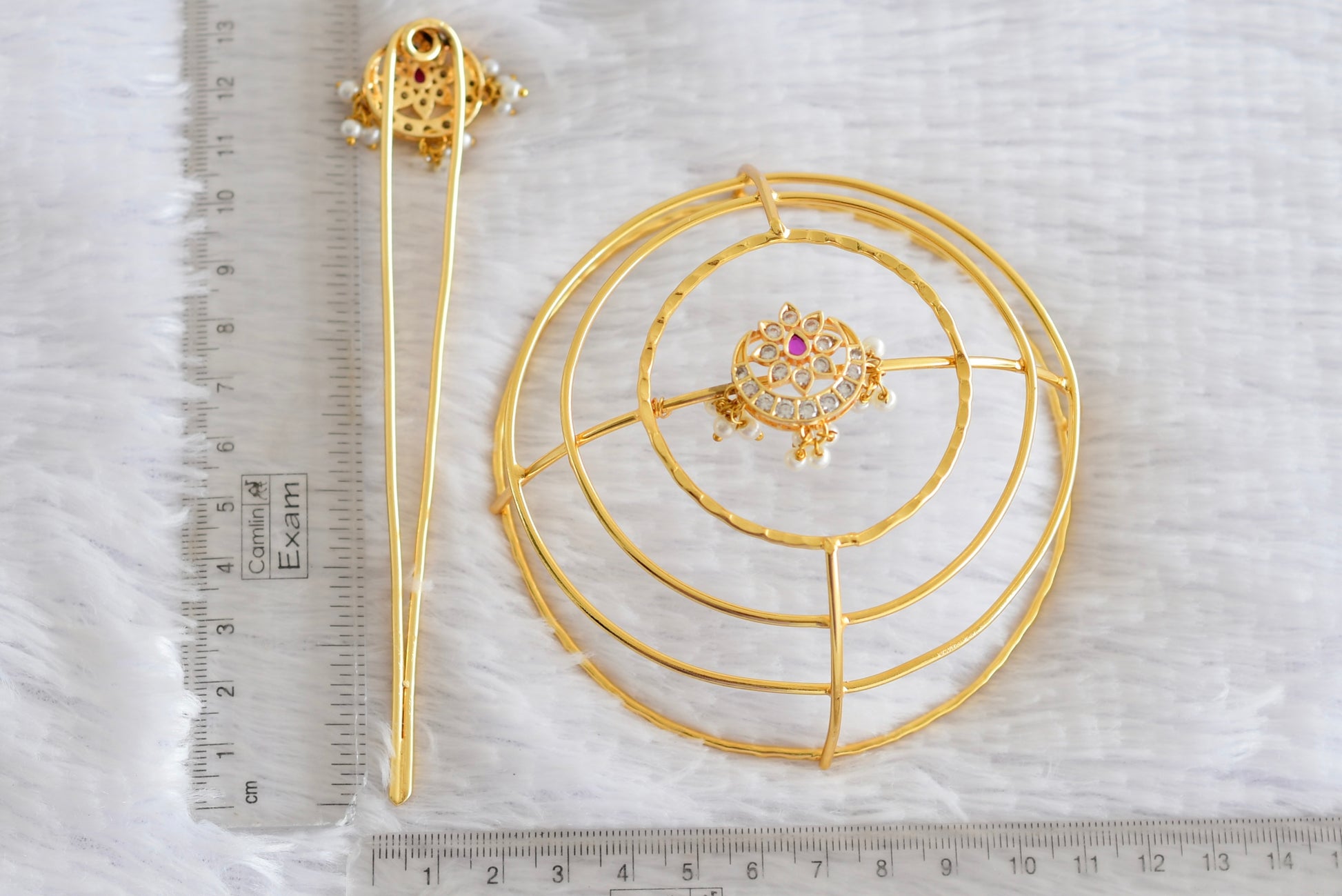 Gold tone kemp-green bun cage-hair accessory with stick Dj-52336