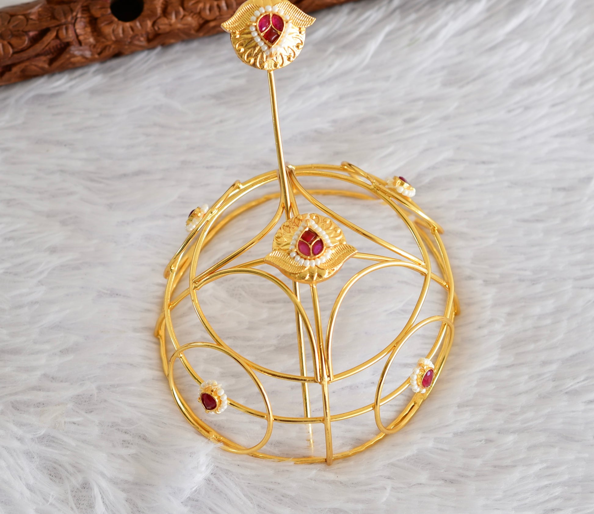 Gold tone kemp-green bun cage-hair accessory with stick Dj-52337
