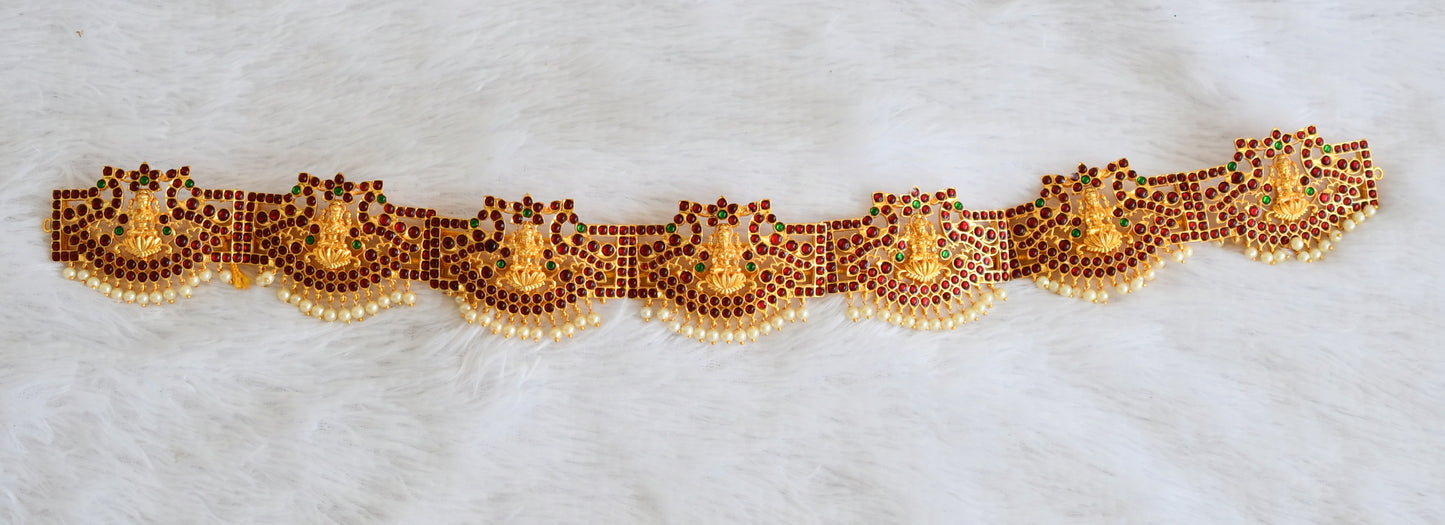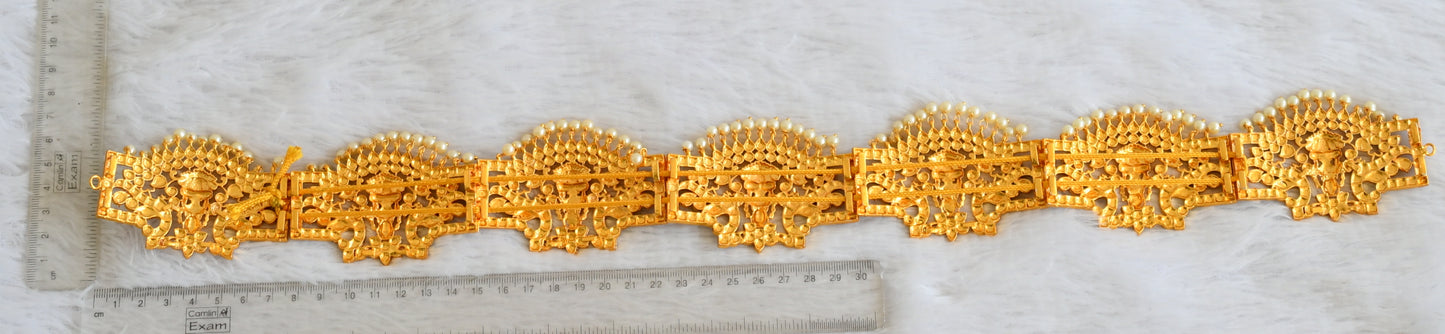Gold tone kemp-green pearl bead lakshmi waist band dj-50383