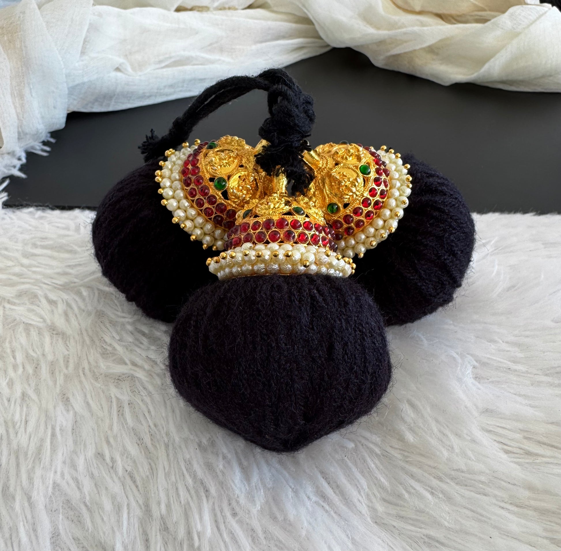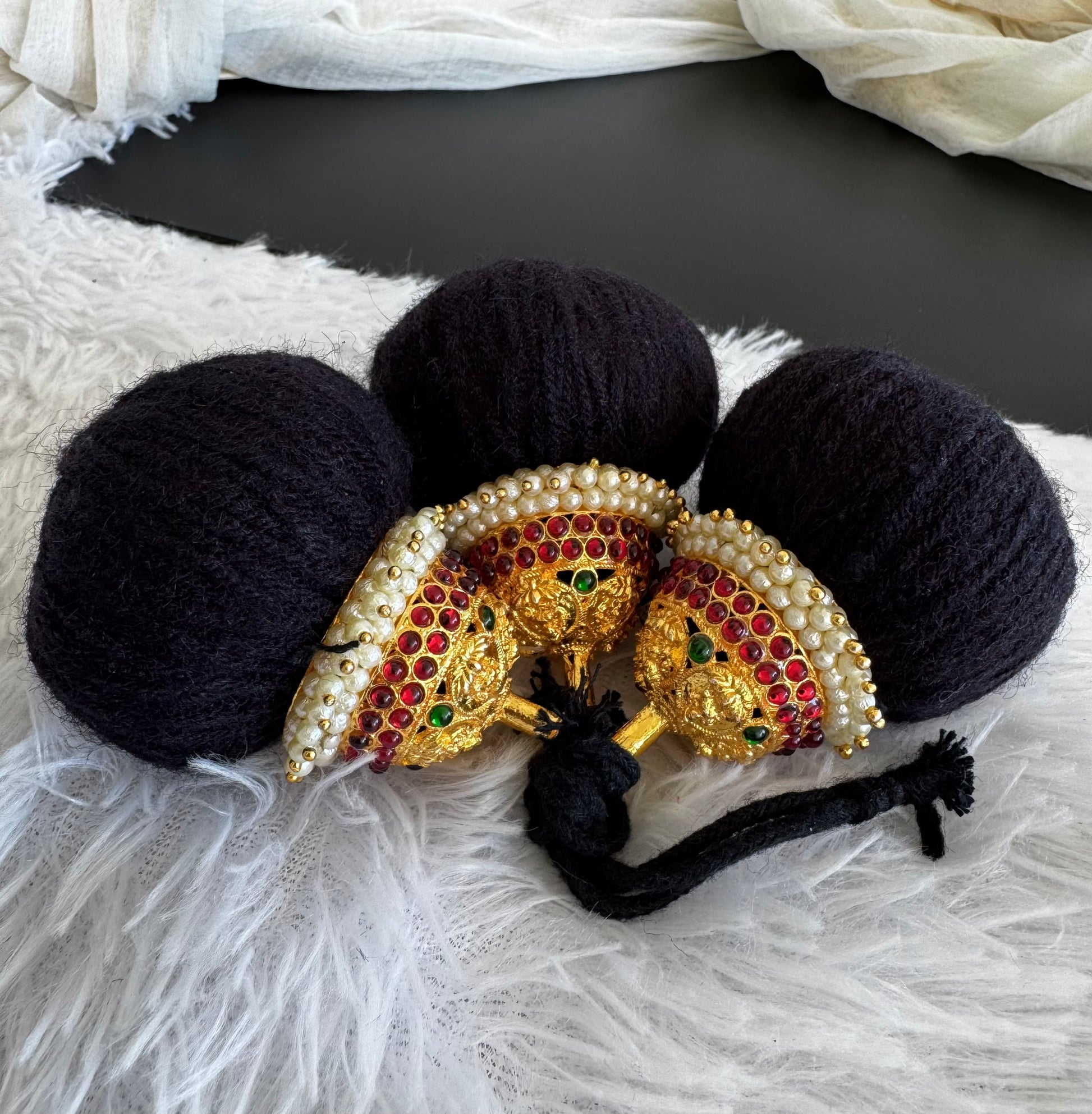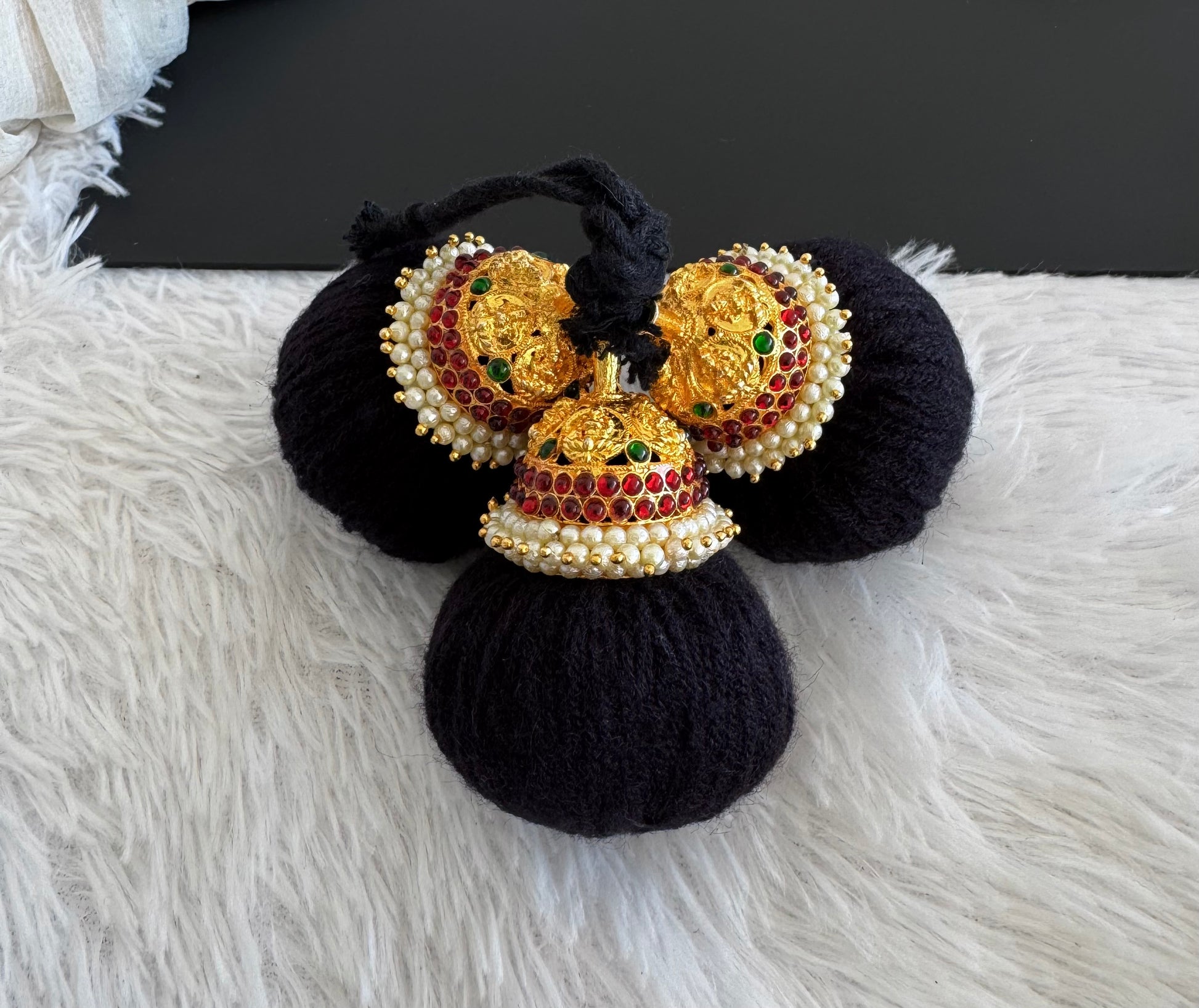 Gold tone kemp-green pearl lakshmi kuppulu (Hair accessory) dj-52764