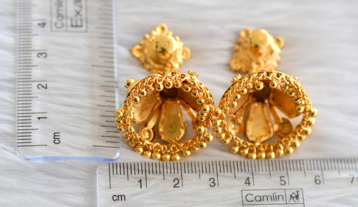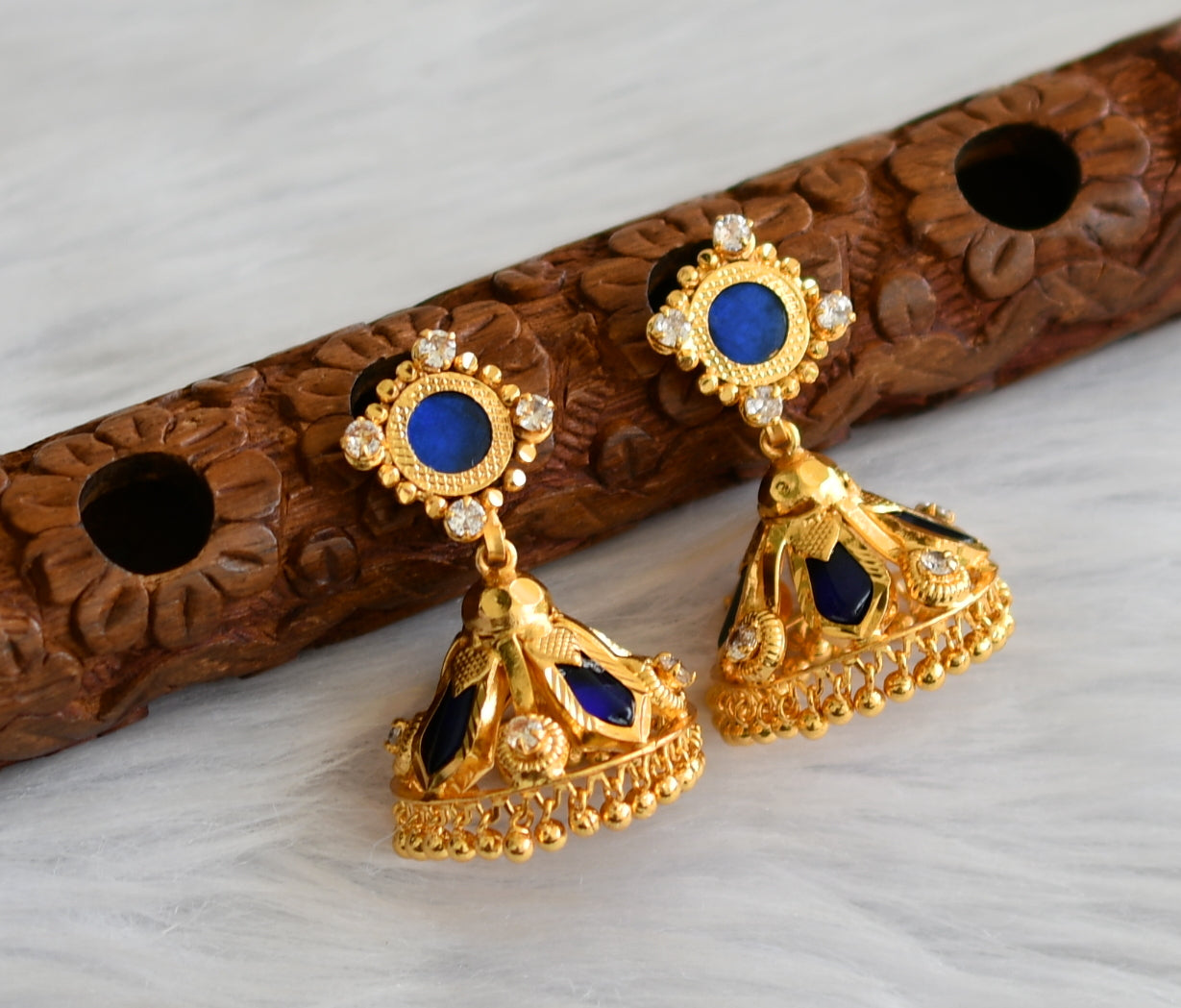 Gold tone kerala style blue nagapadam 4 petal jhumkka dj-43324