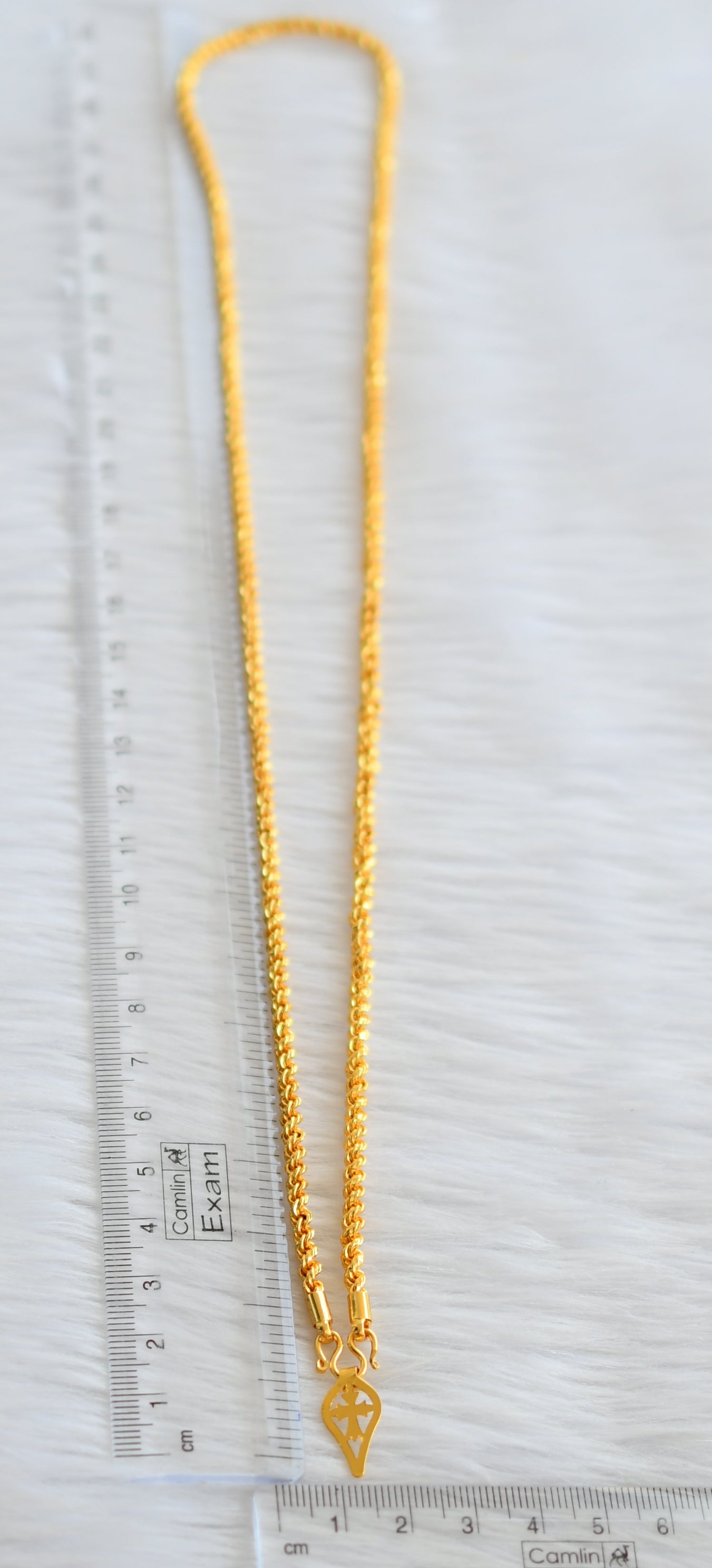 Gold tone Kerala style cross in elakka shape pendant with 24 inches chain dj-35052