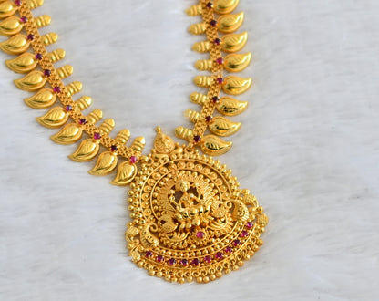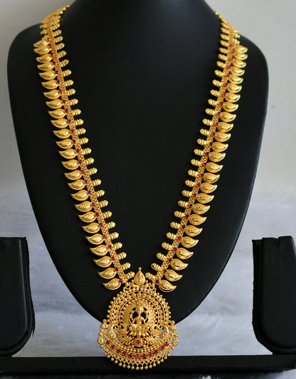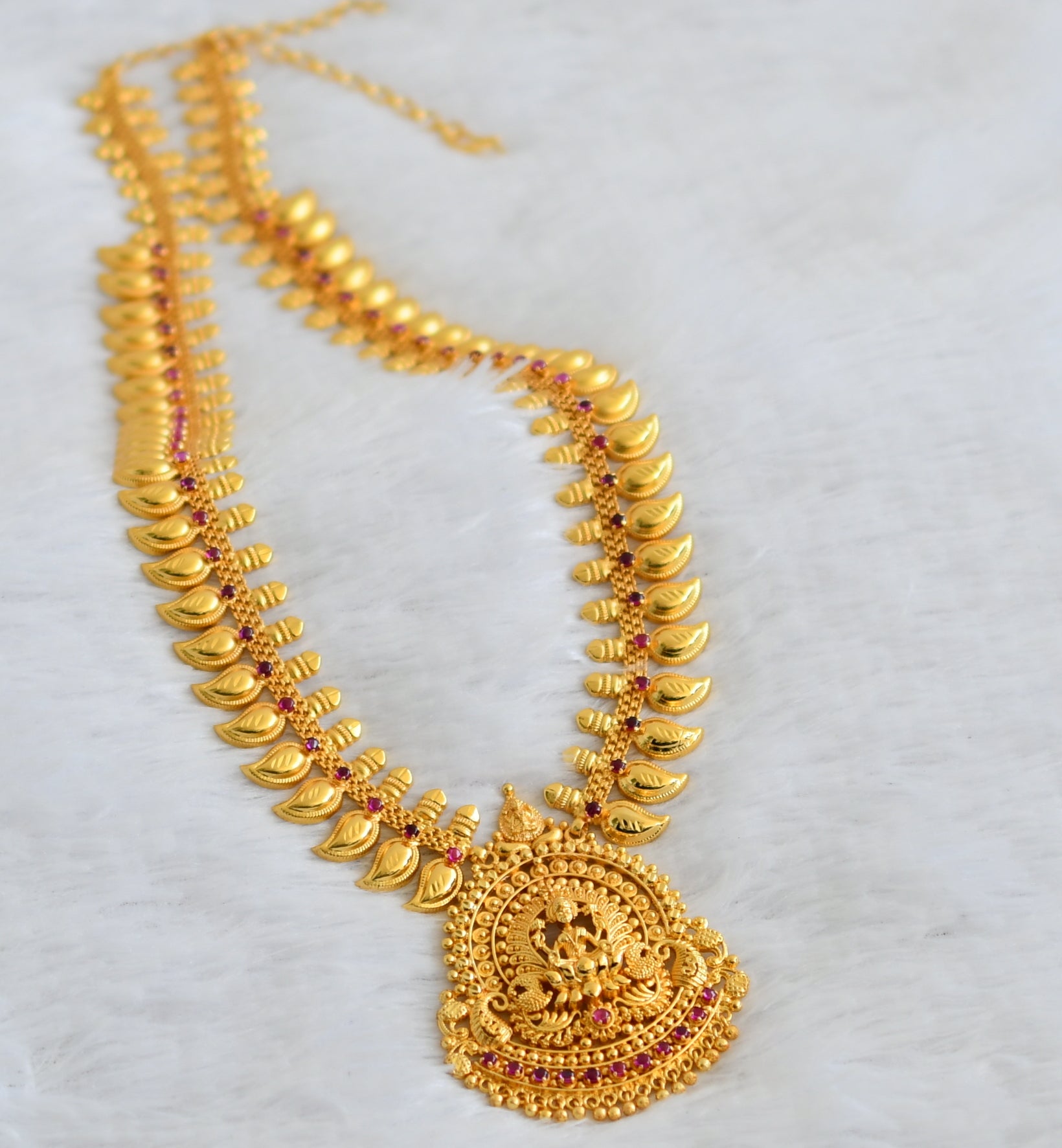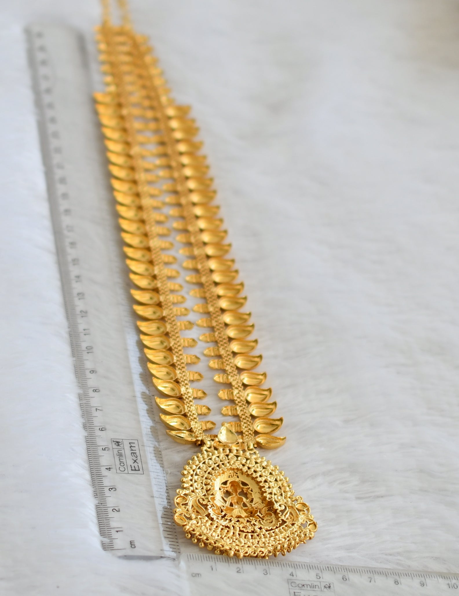 Gold tone kerala style kemp stone lakshmi peacock mango haar dj-49773