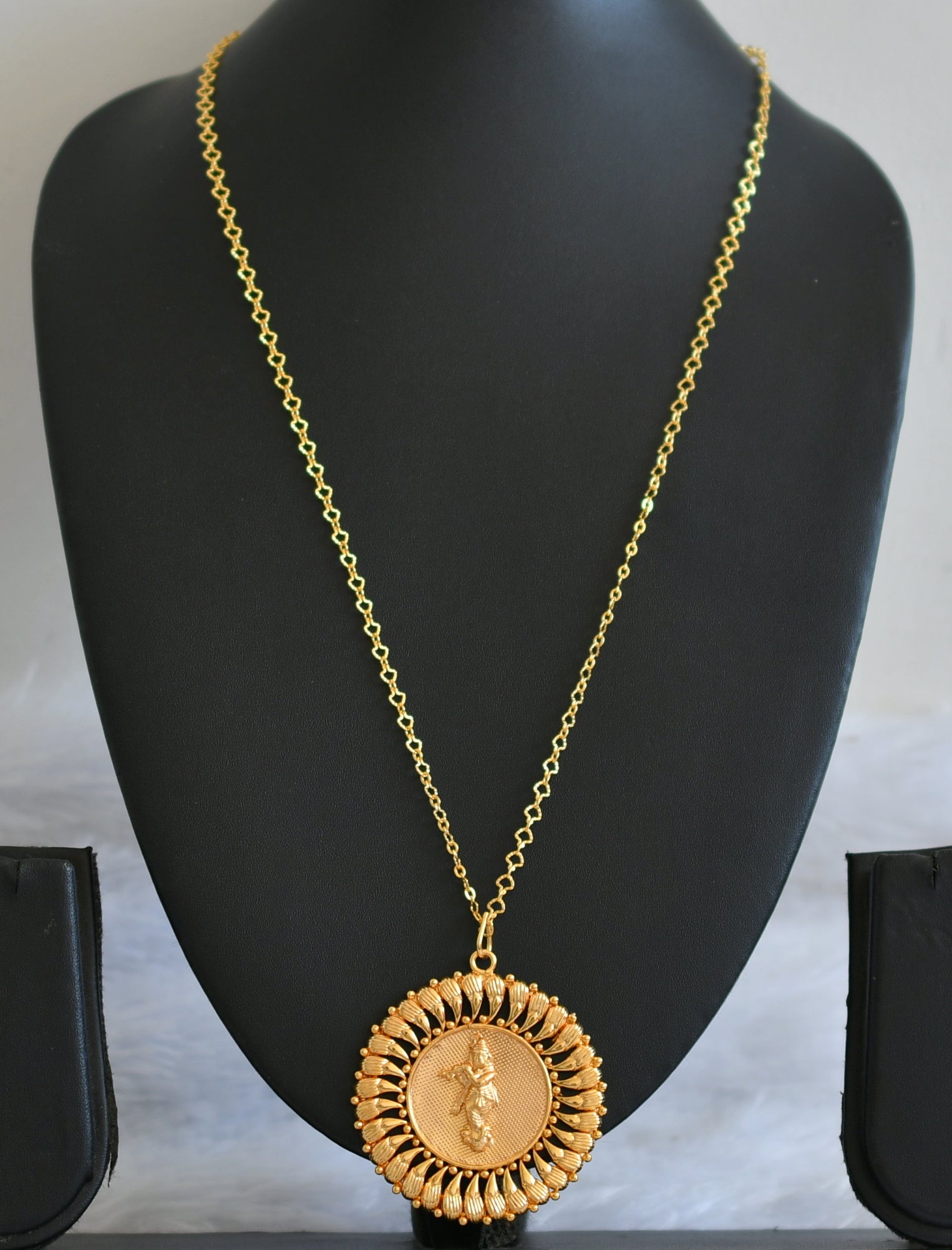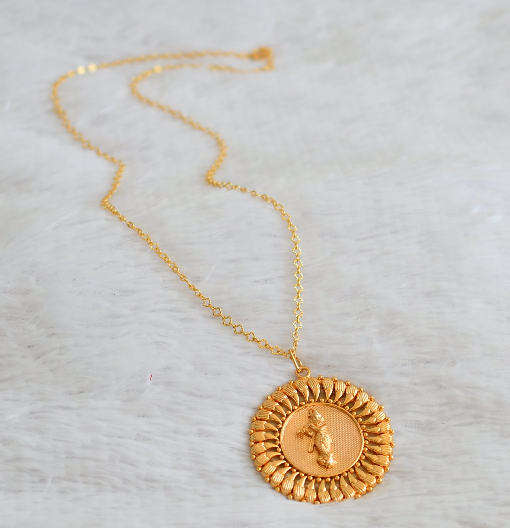 Gold tone Kerala style Krishna Pendant with chain dj-36491