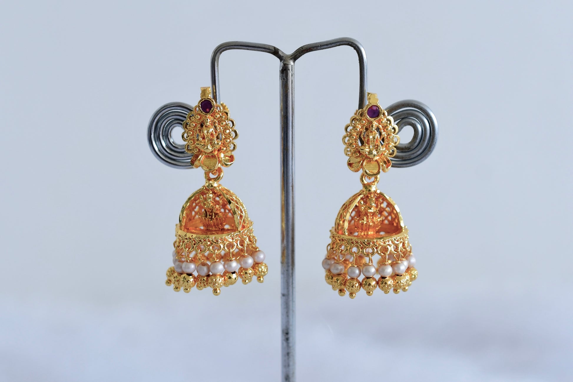 Gold tone kerala style pearl lakshmi jhumkka dj-51808