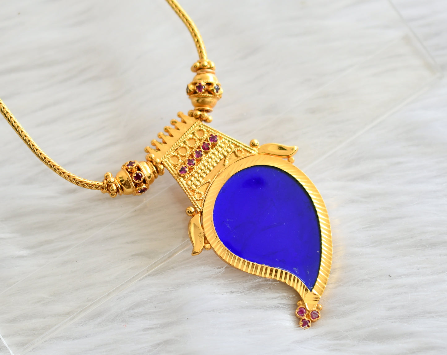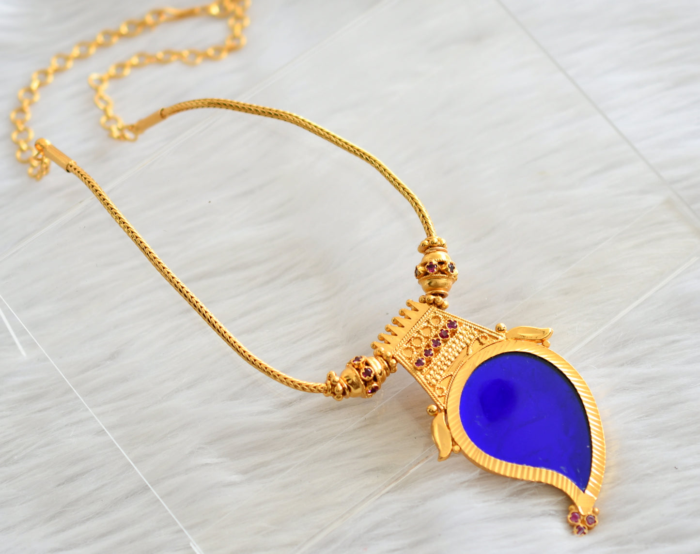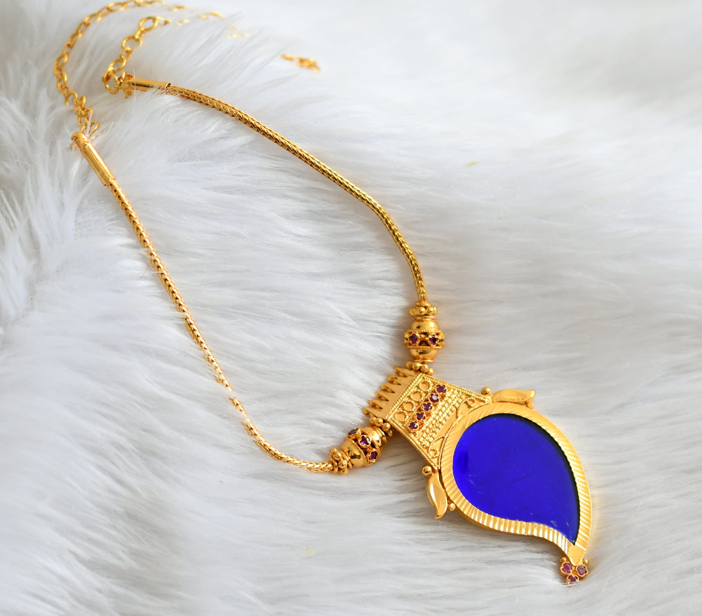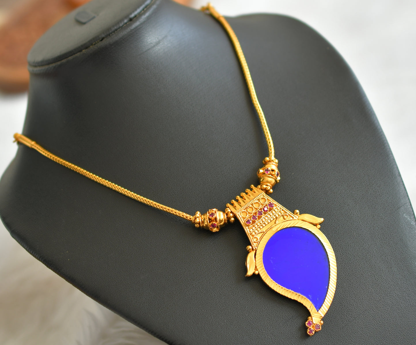 Gold tone kerala style pink-blue mango necklace dj-44165