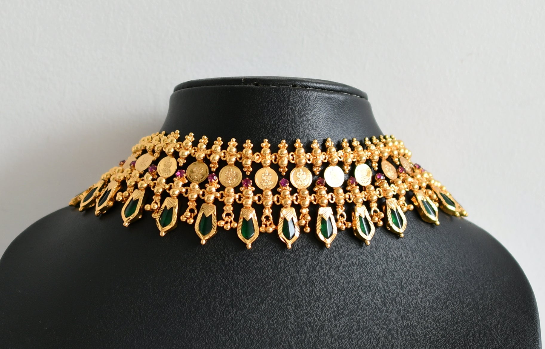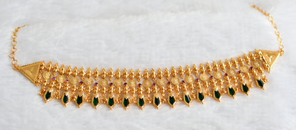 Gold tone kerala style pink-green nagapadam lakshmi coin choker necklace dj-46668
