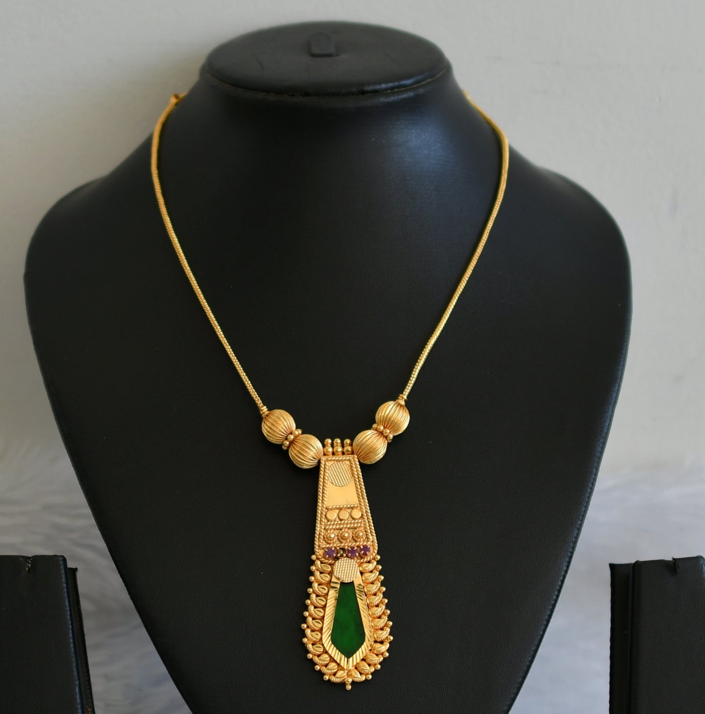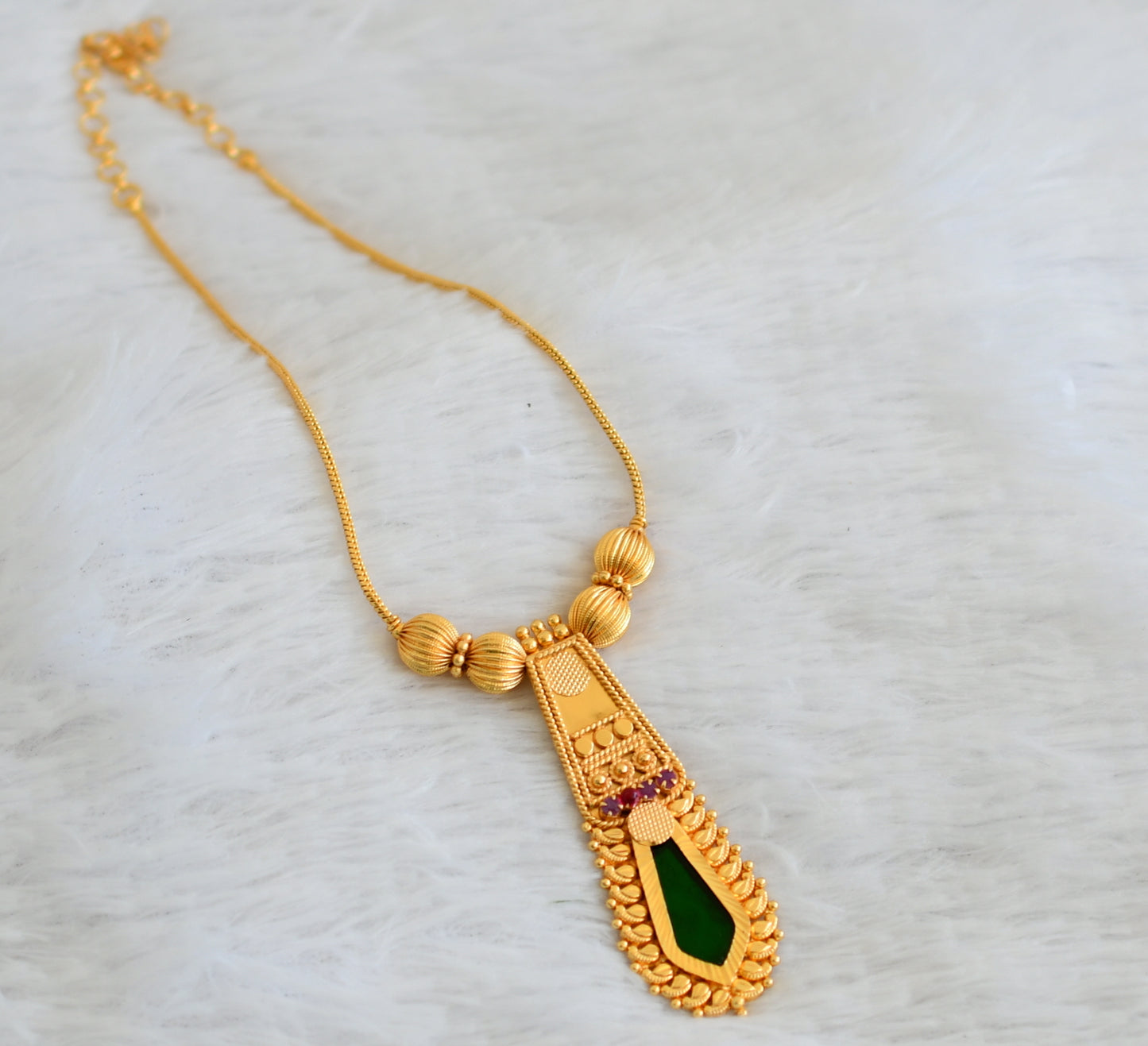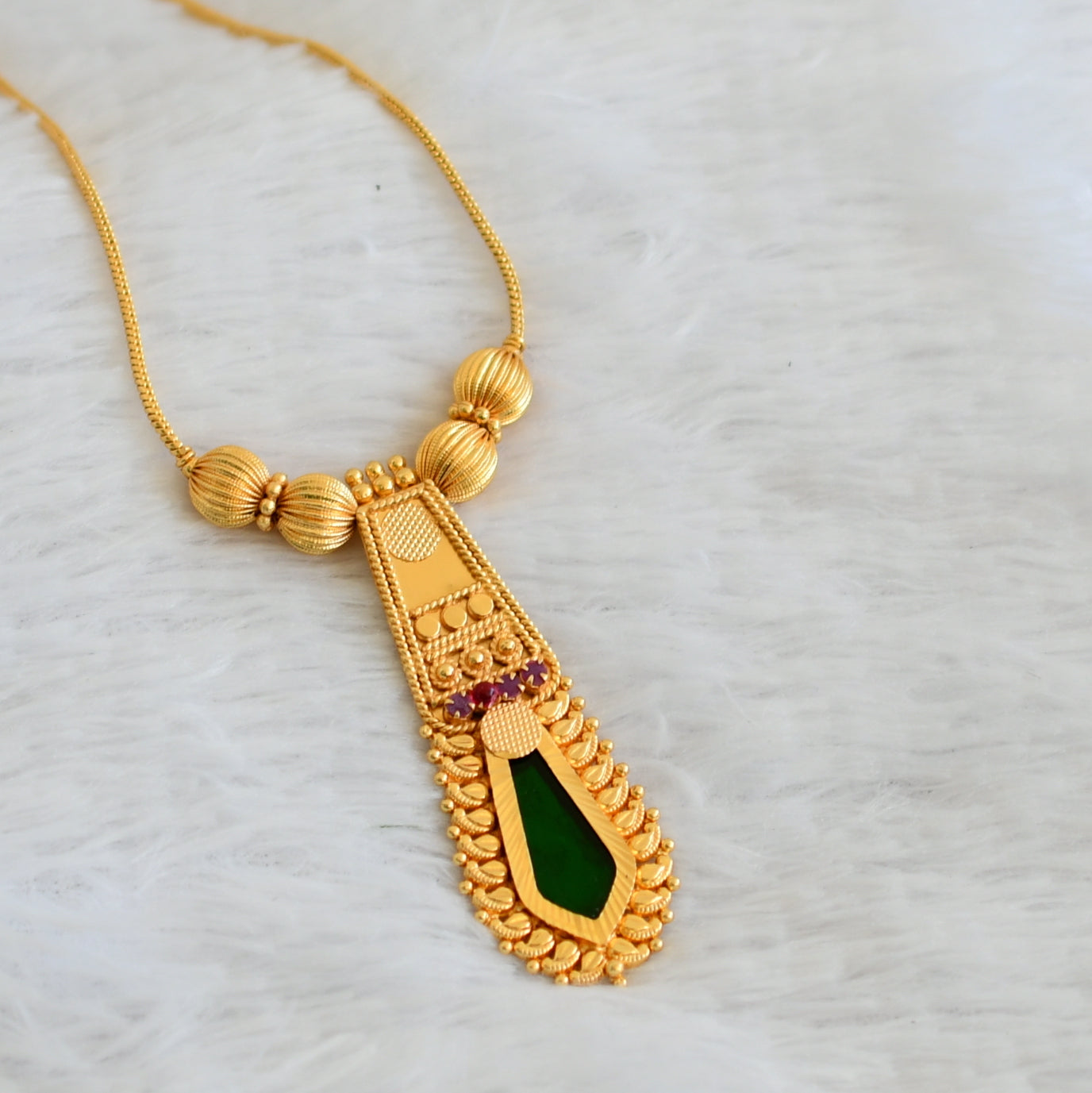 Gold tone kerala style pink-green nagapadam necklace dj-50307
