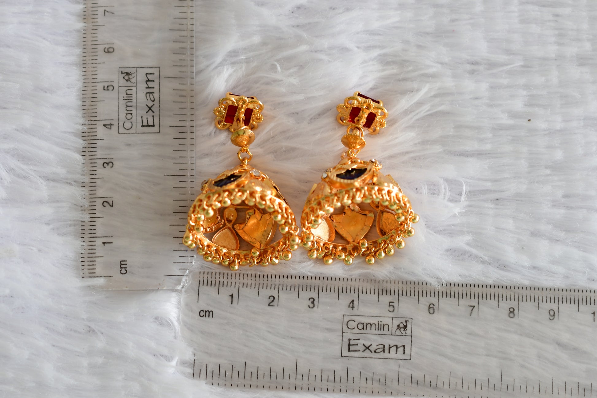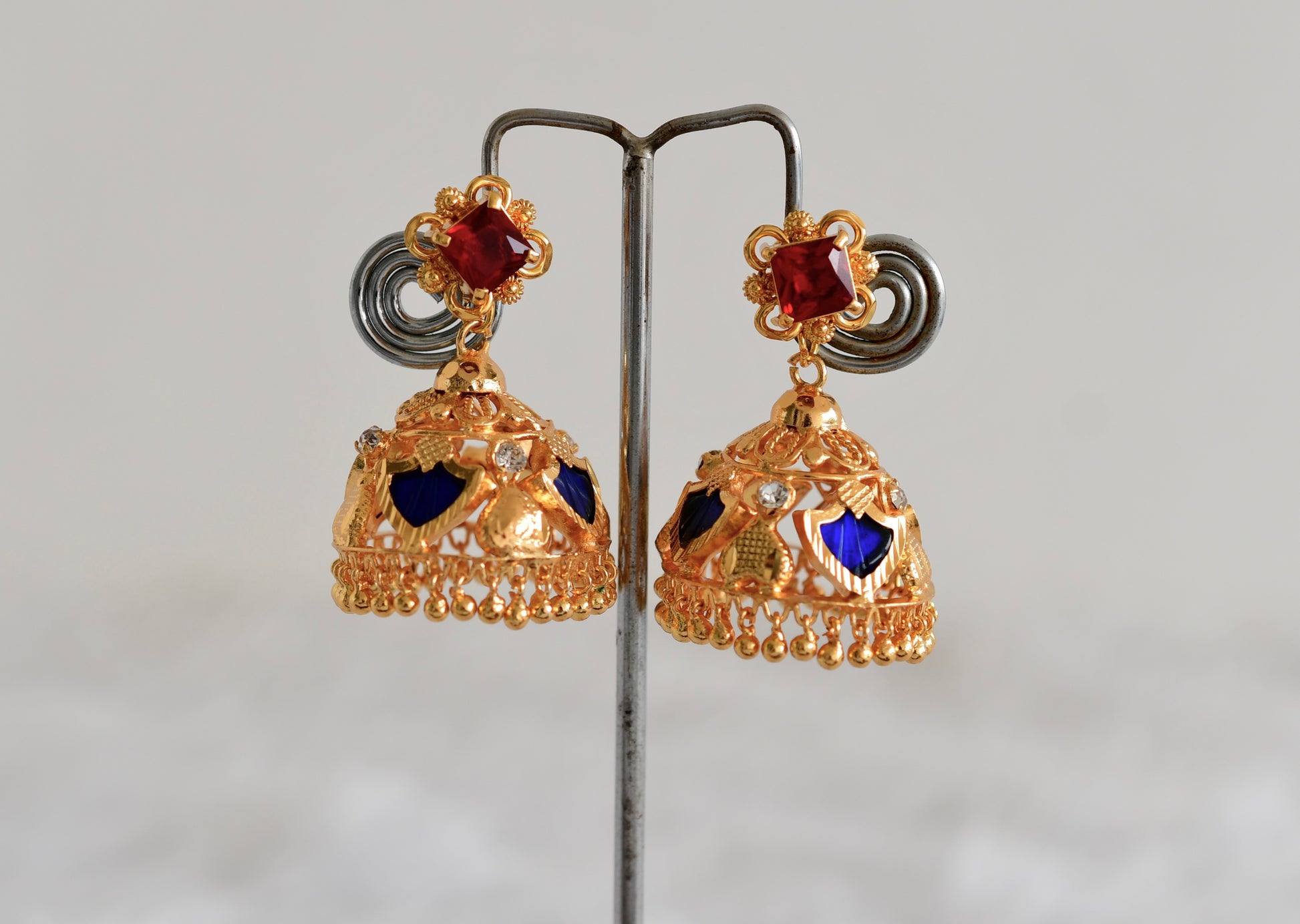 Gold tone Kerala style red-blue palakka jhumkka dj-52445