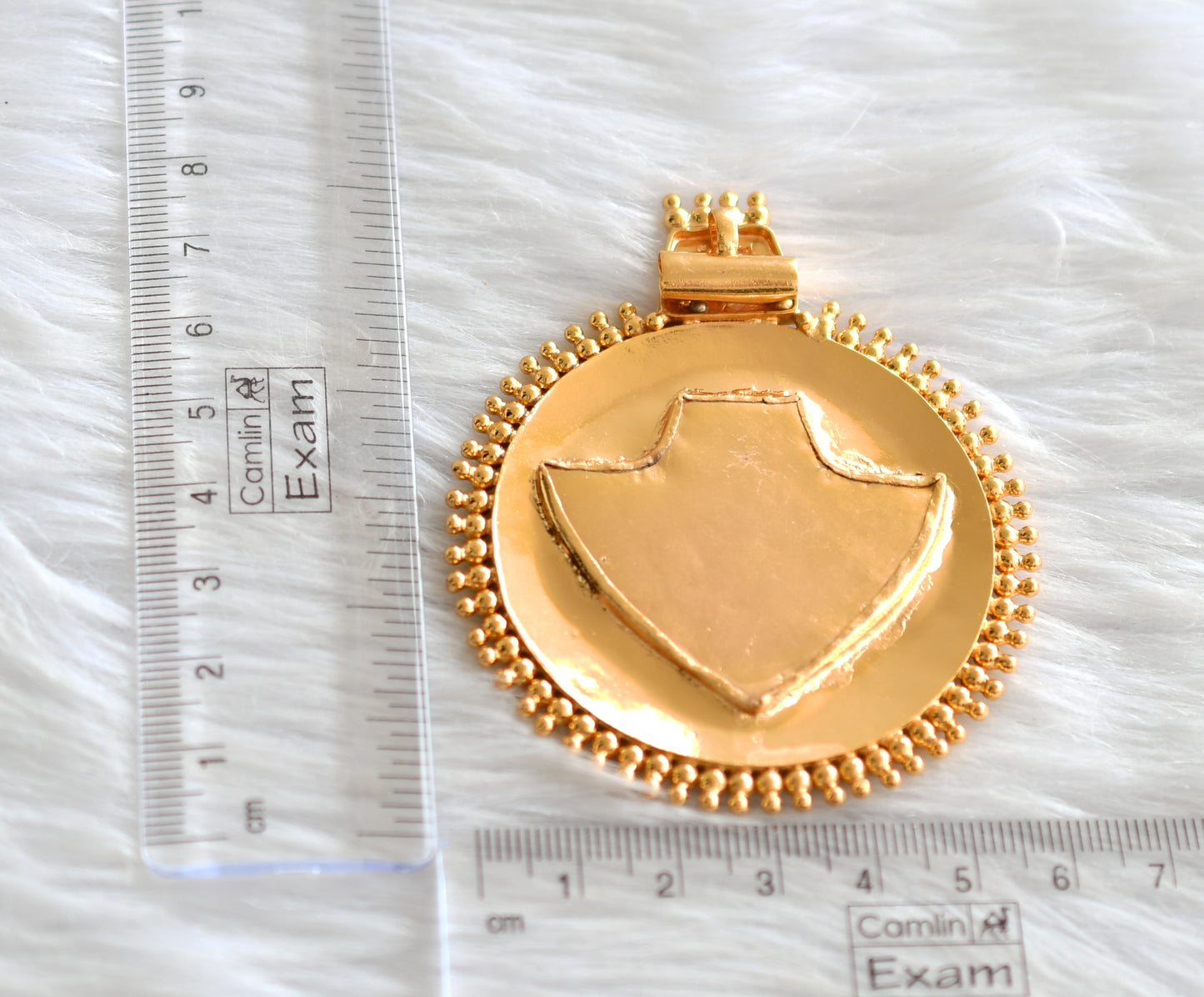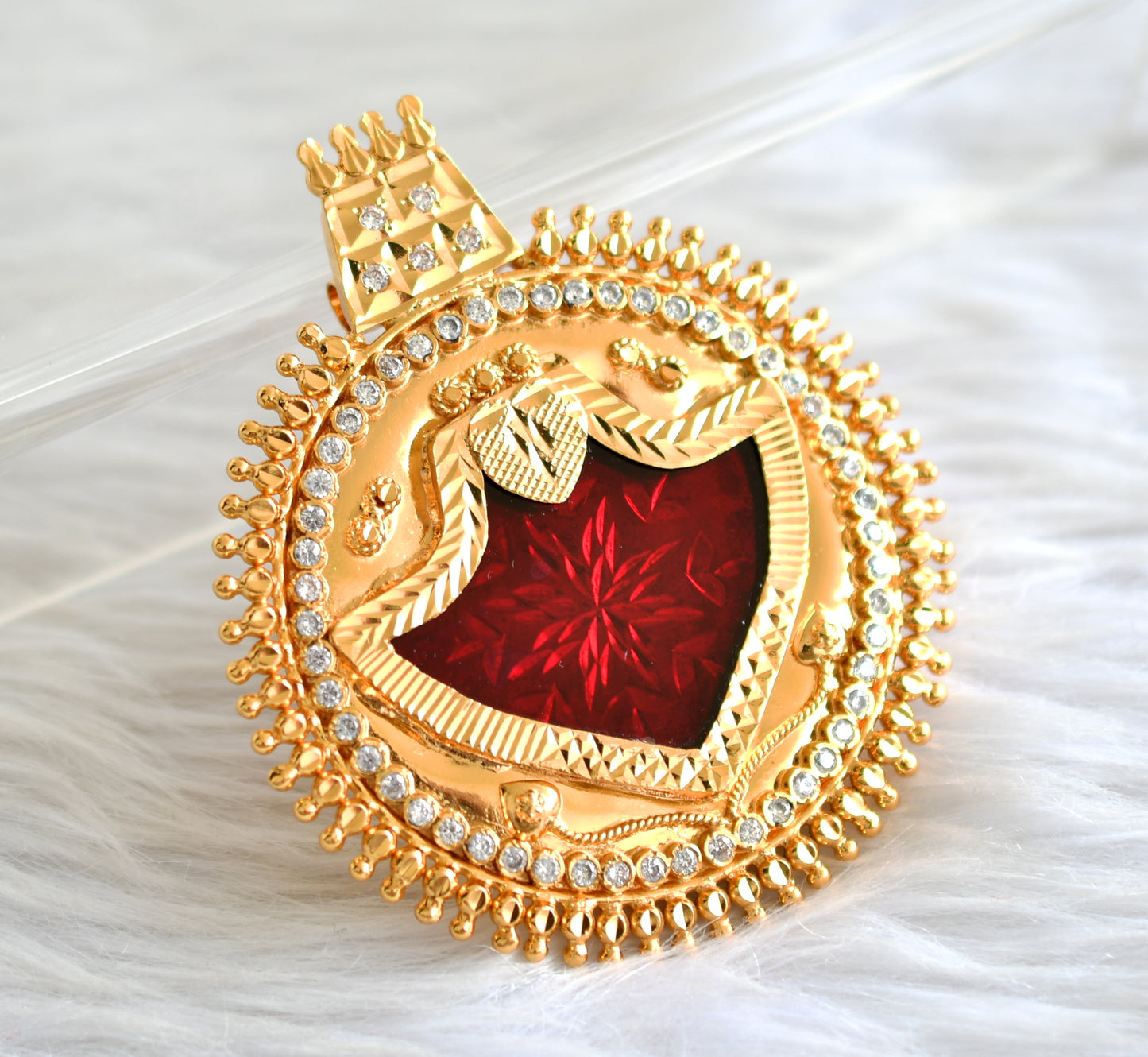 Gold tone kerala style red-white stone round palakka pendant dj-43460