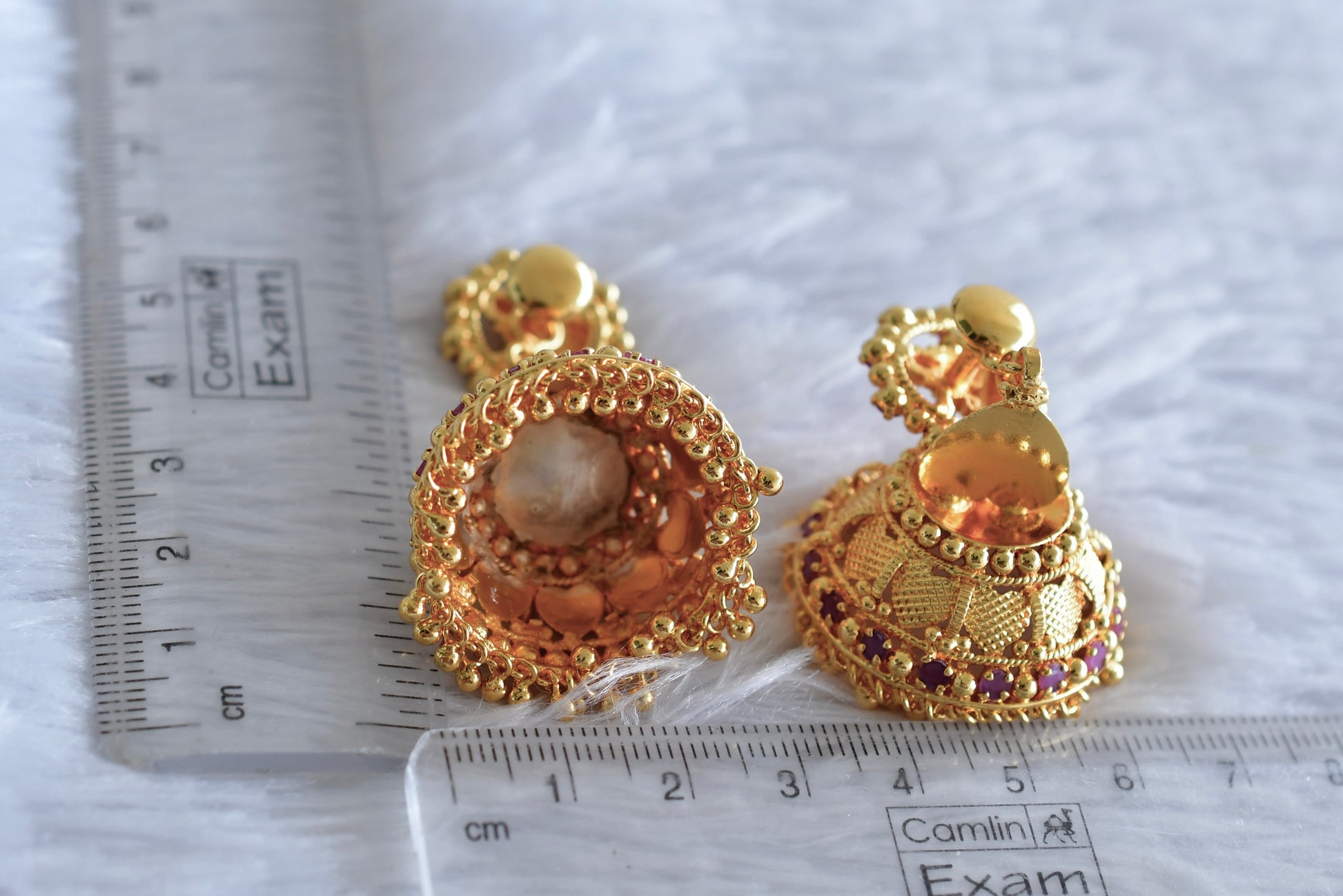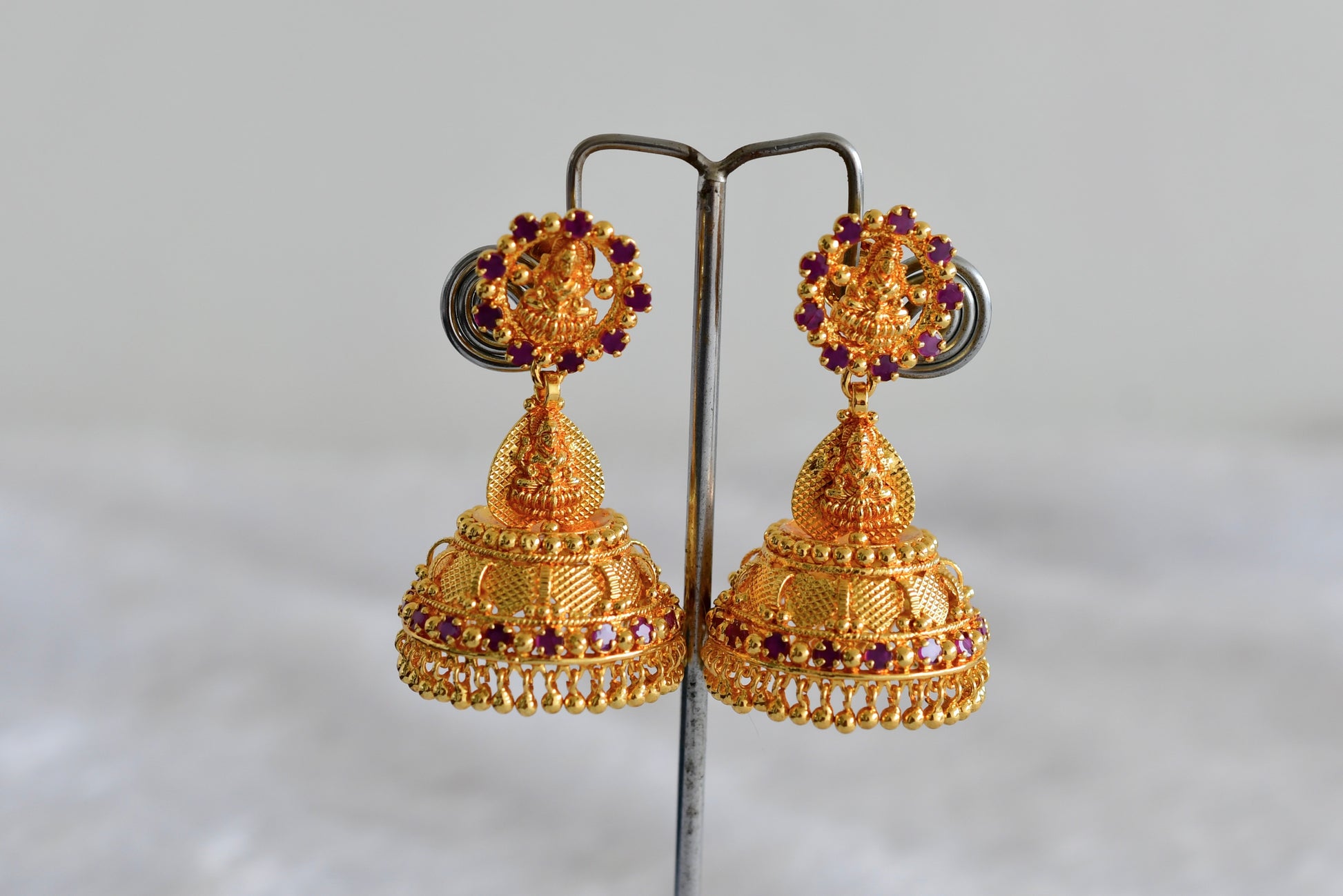 Gold tone kerala style ruby lakshmi jhumkka dj-51803