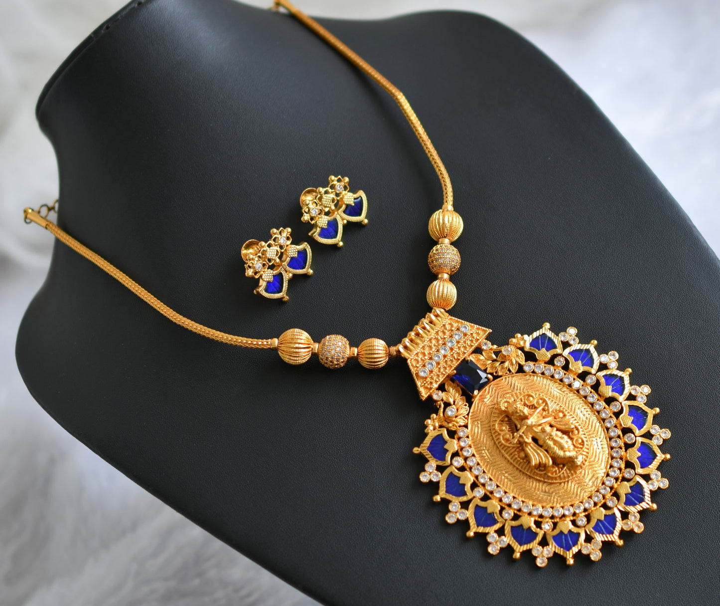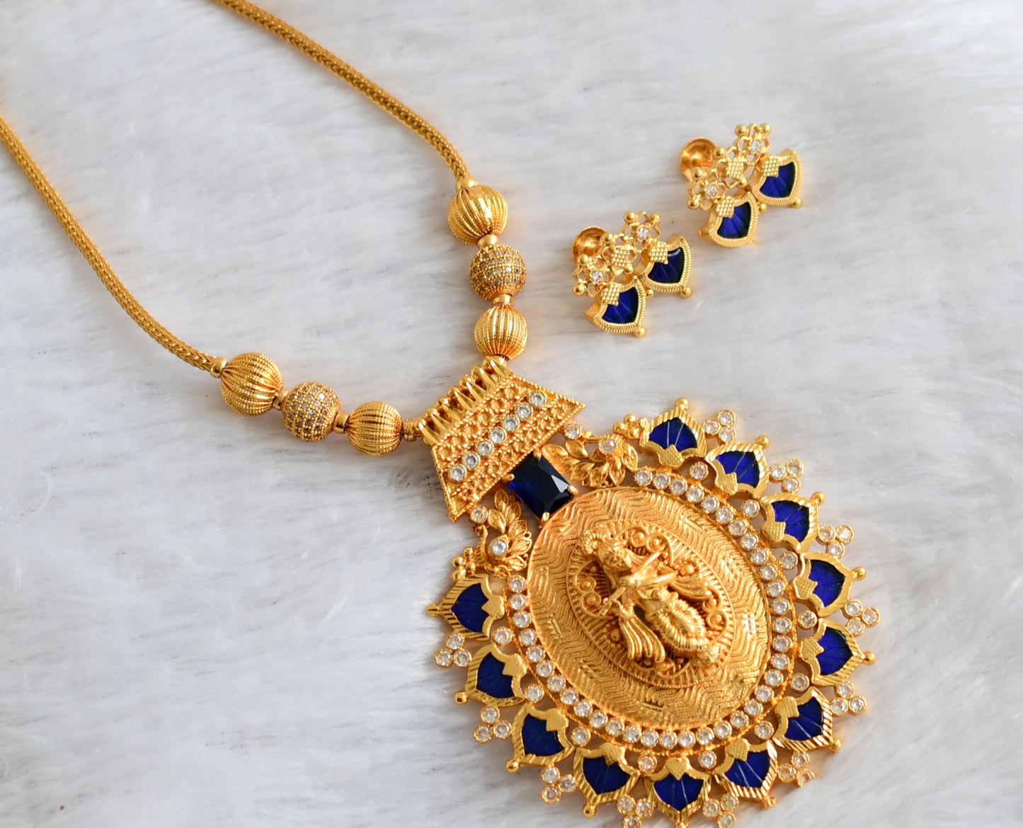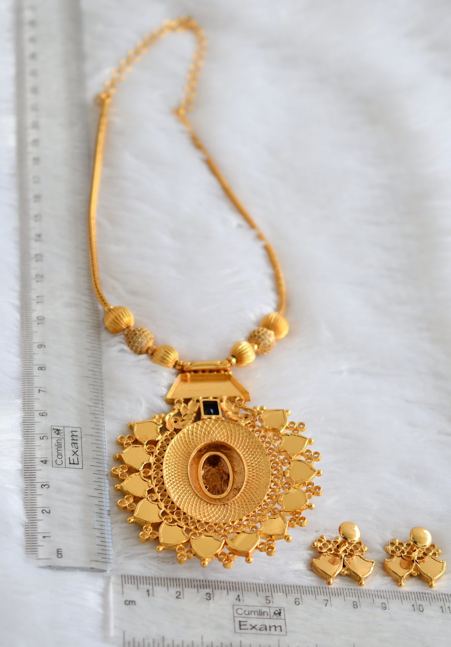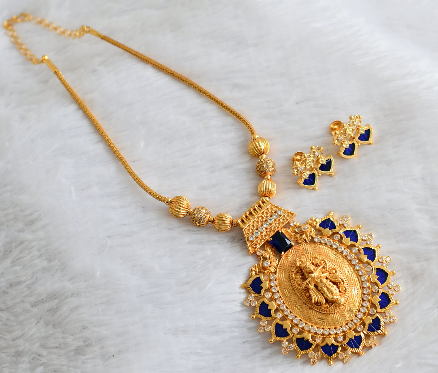 Gold tone kerala style white stone ball blue-white big palakka krishna kodi necklace set dj-46867