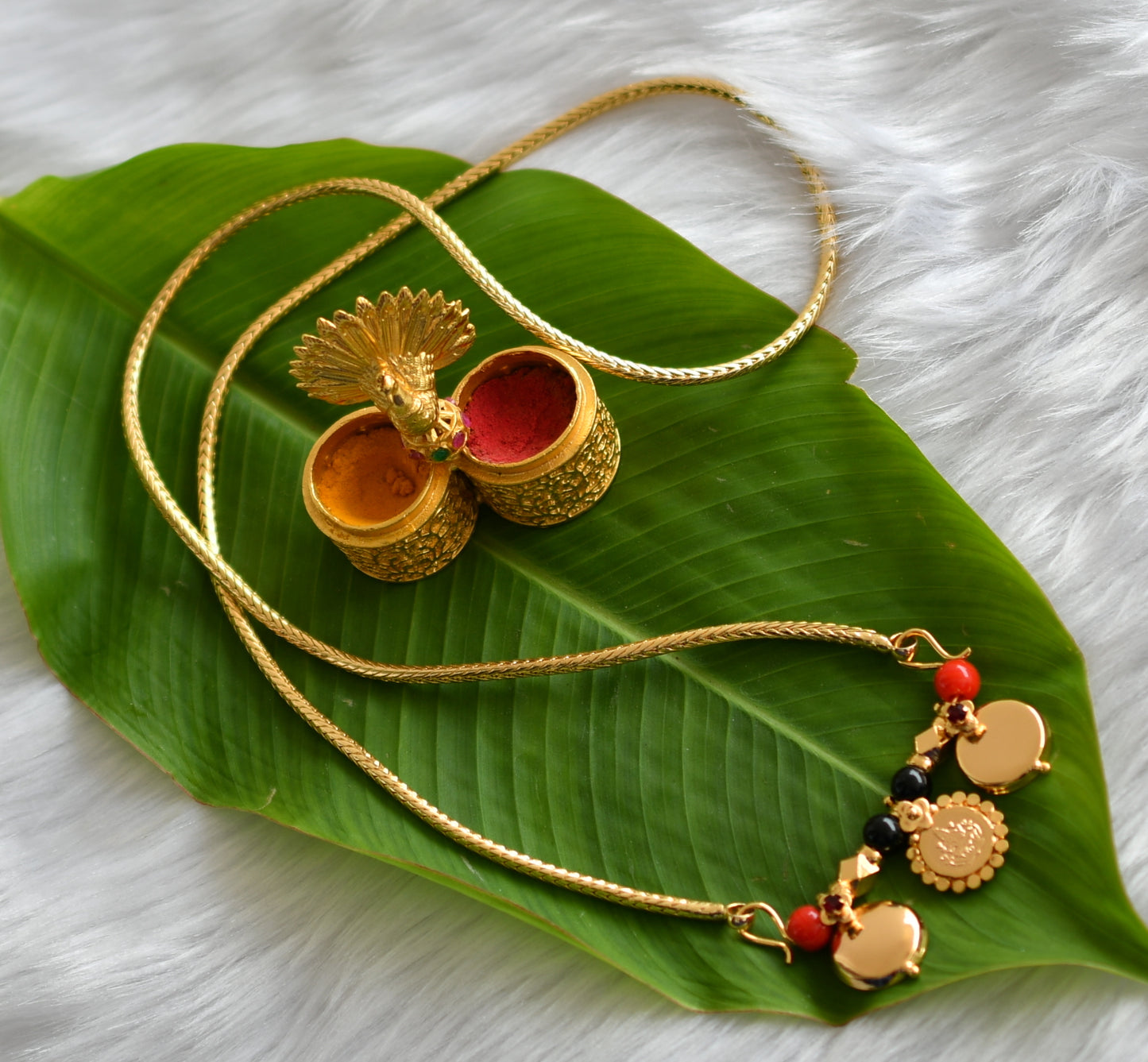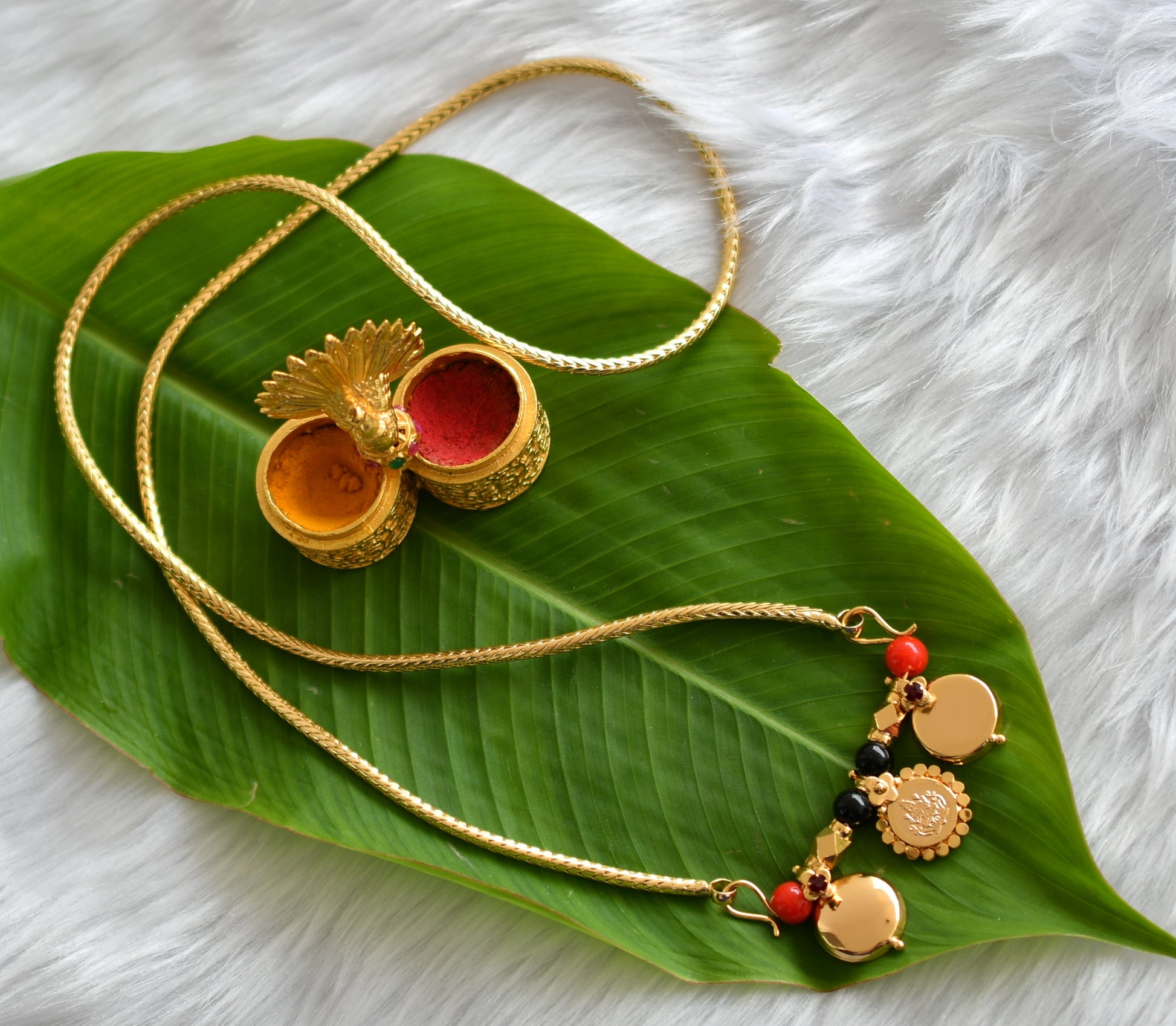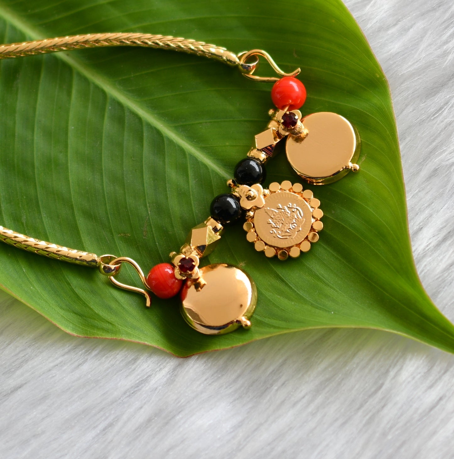 Gold tone Lakshmi coin black-coral beads mangalyam dj-38771