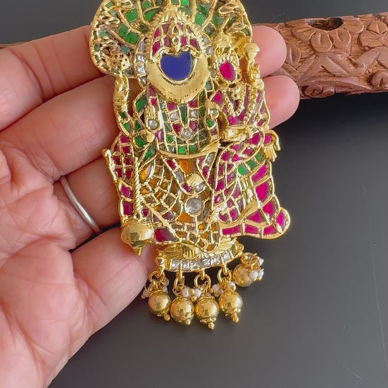 Gold tone Navarathna Narasimmha jadau pendant dj-51329