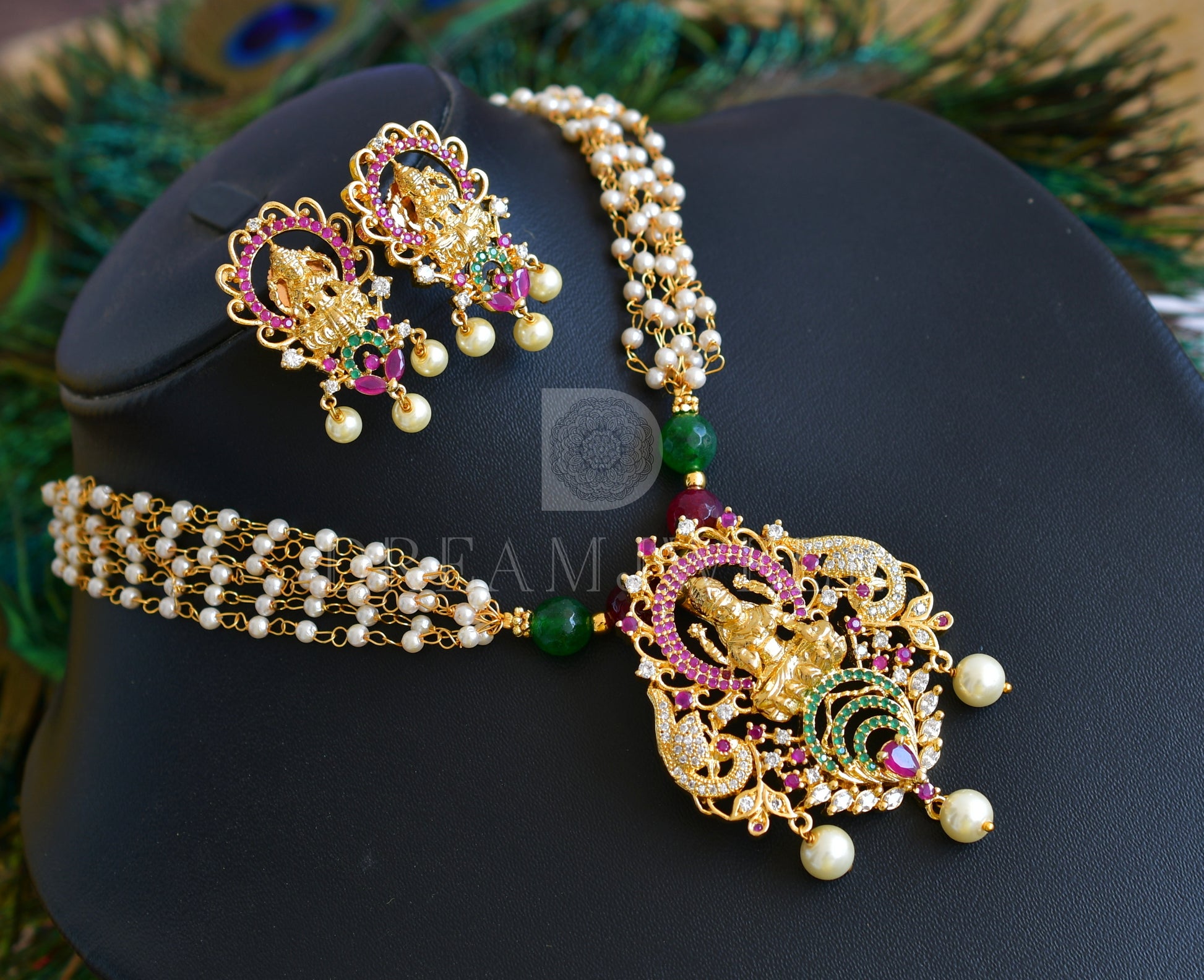 Gold tone pearl multi color Lakshmi designer necklace set dj-35713