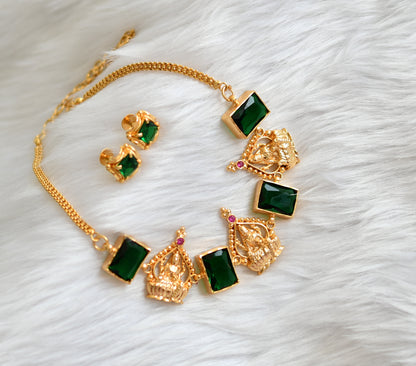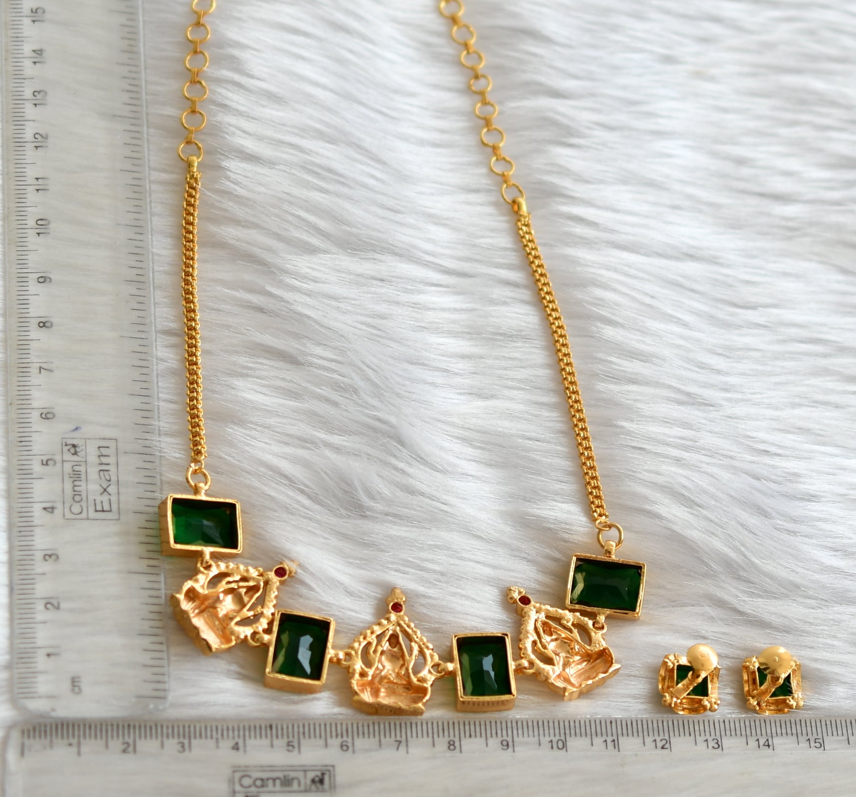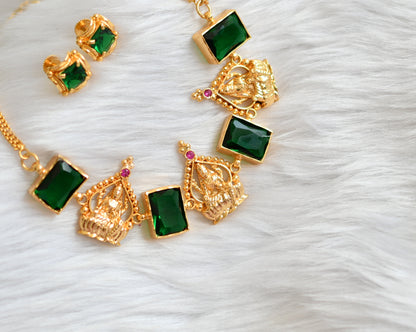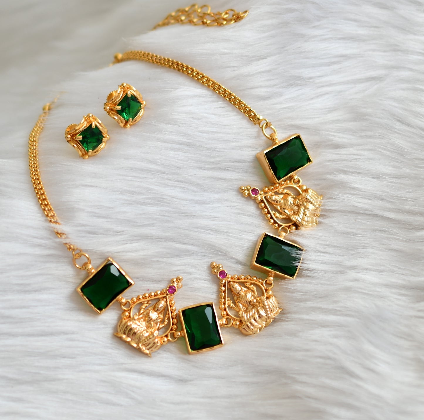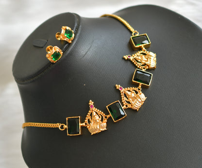 Gold tone pink-green big block stone Lakshmi necklace set dj-39661
