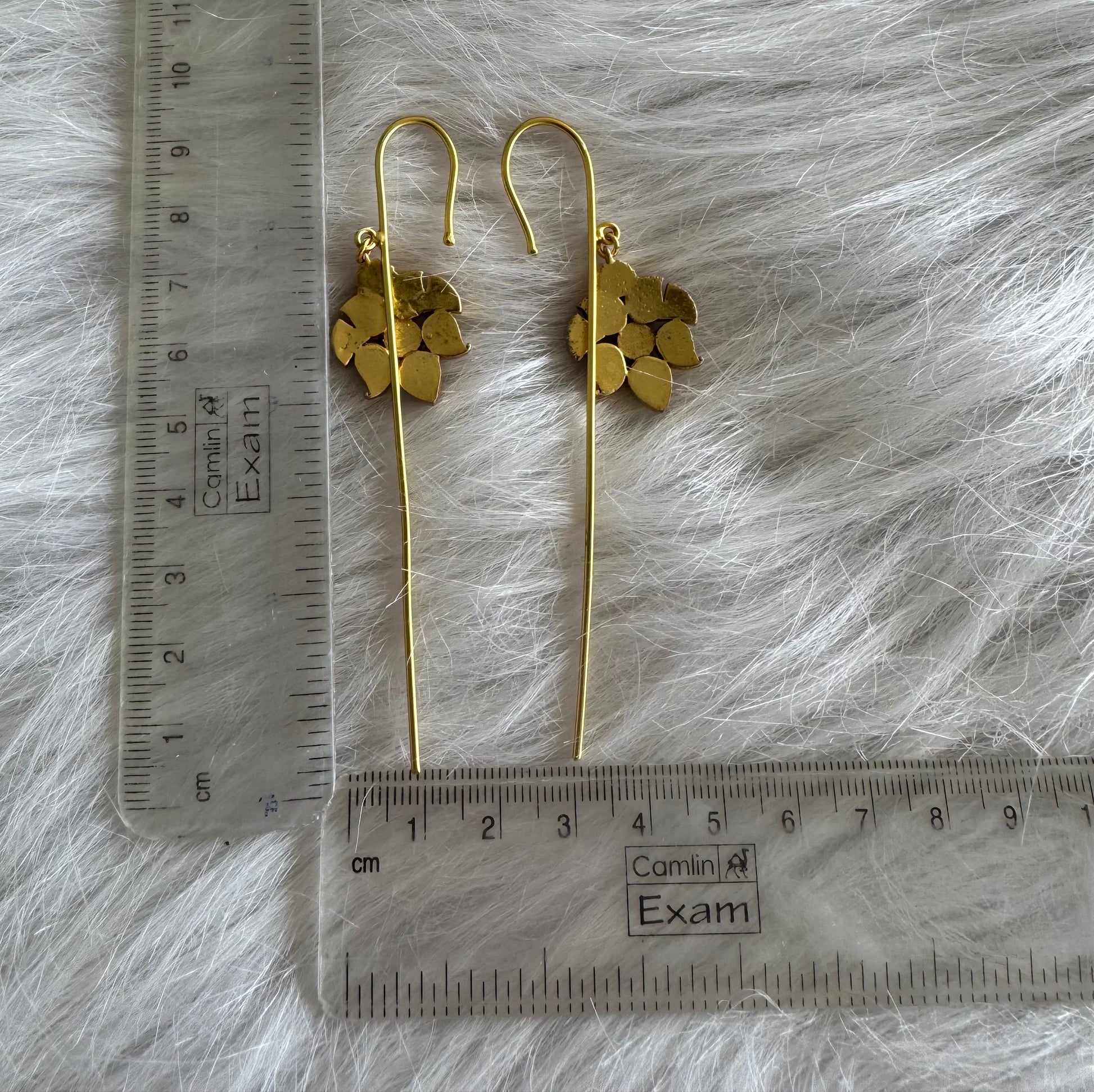 Gold tone pink-green kundan jadau flower bugadi earrings dj-51126