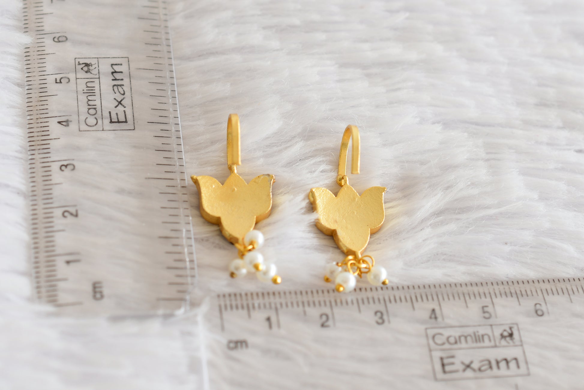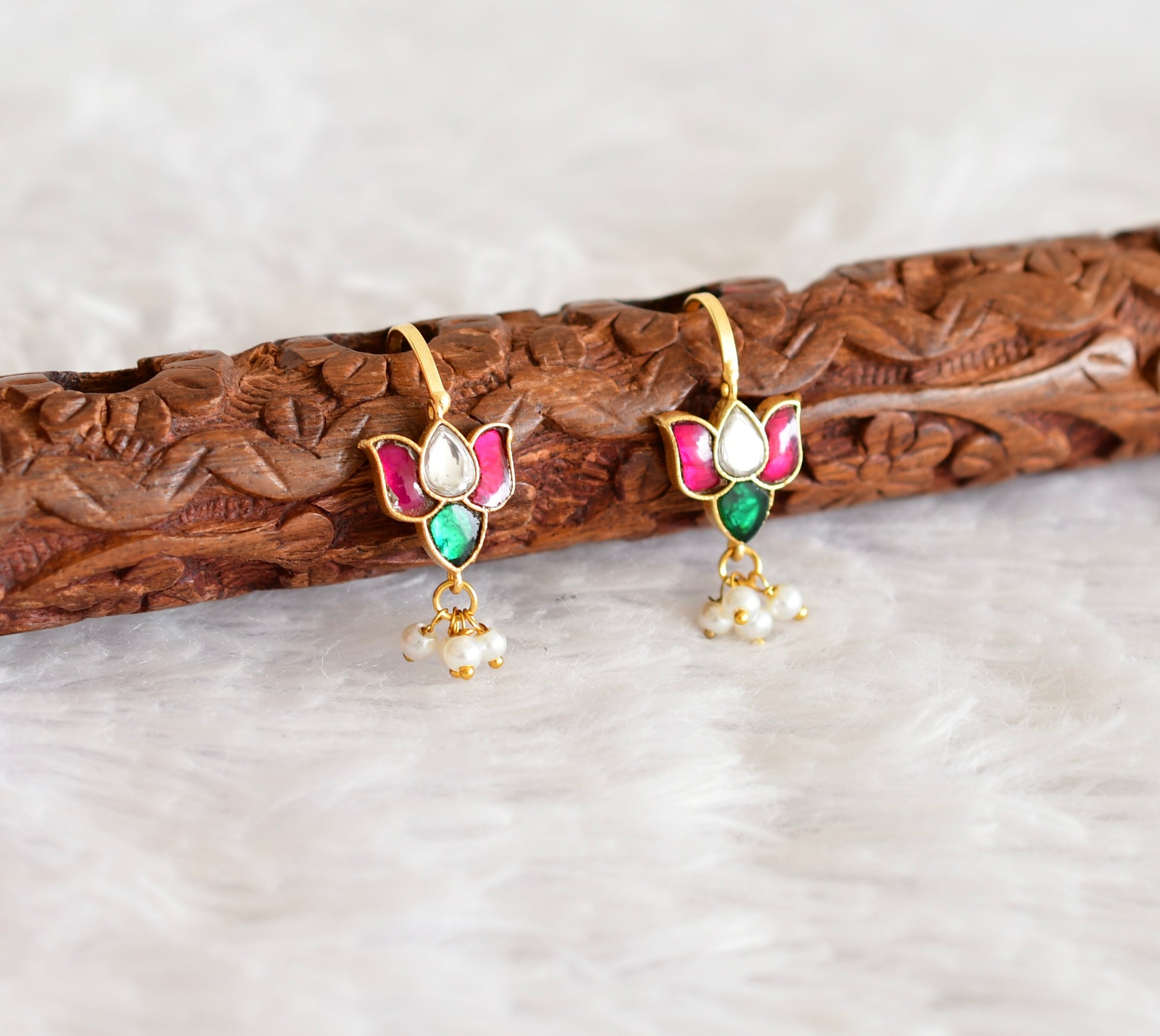 Gold tone pink-green kundan jadau lotus bugadi earrings dj-52470