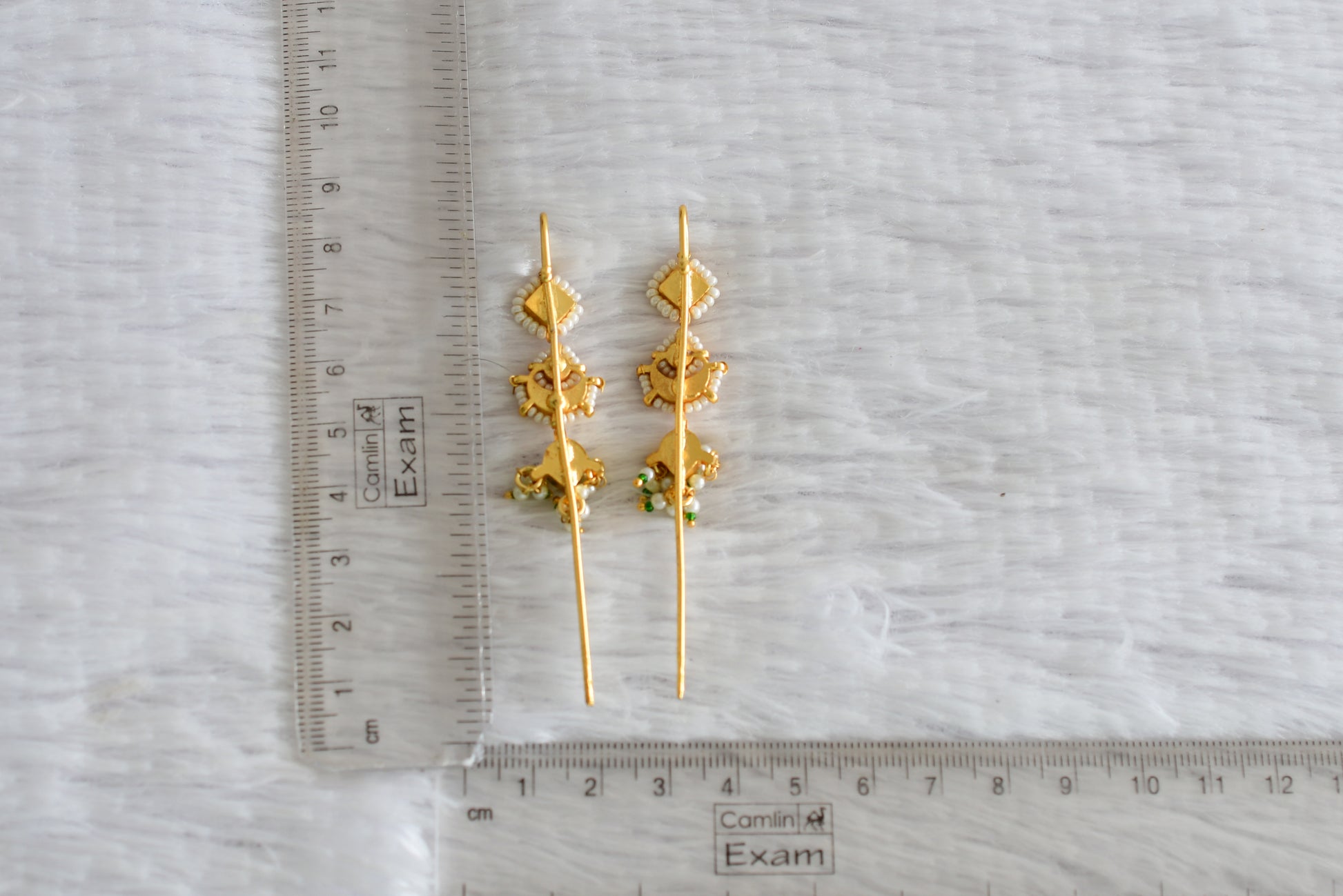 Gold tone pink-green kundan jadau moon bugadi needle earrings dj-52449