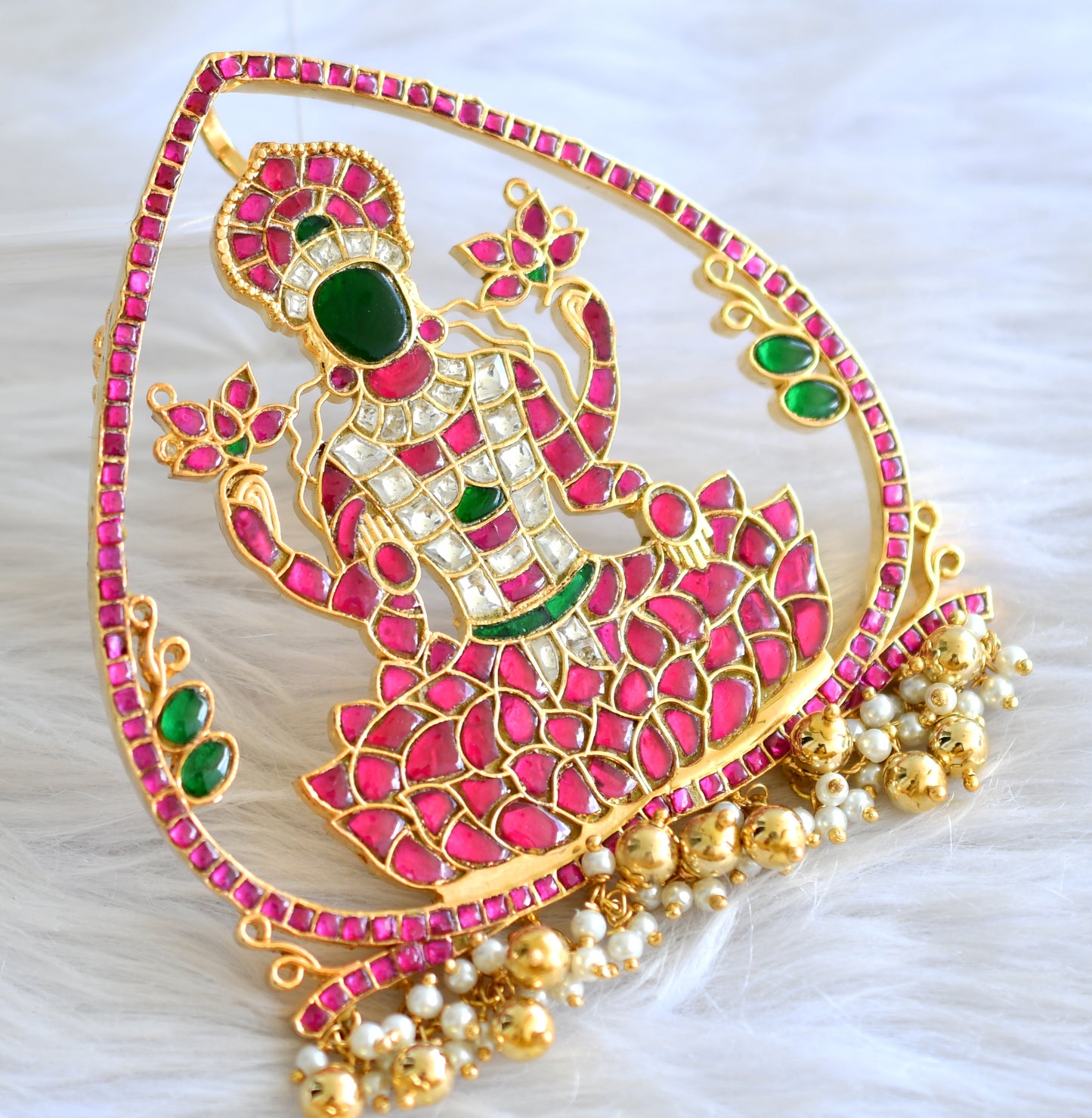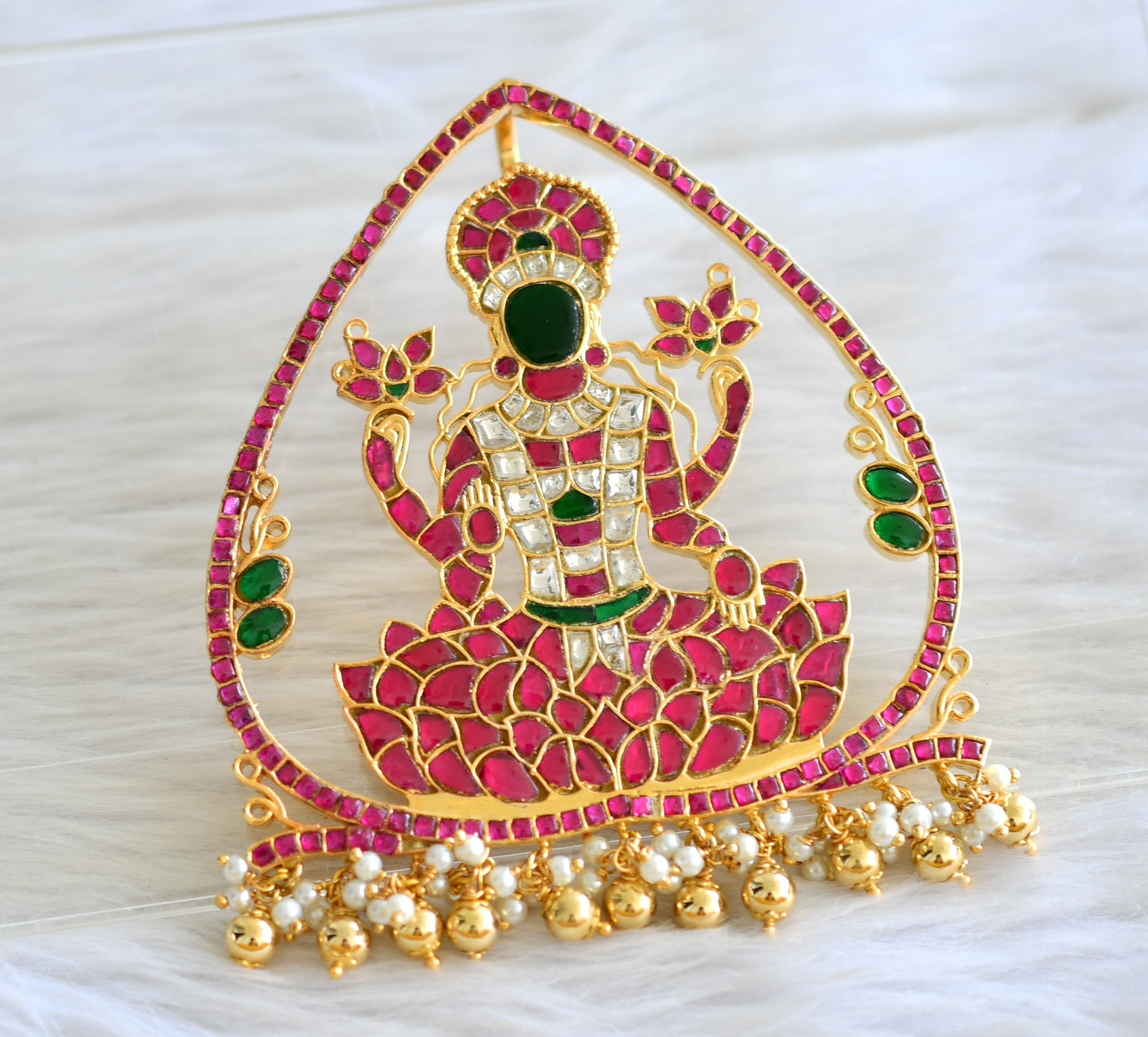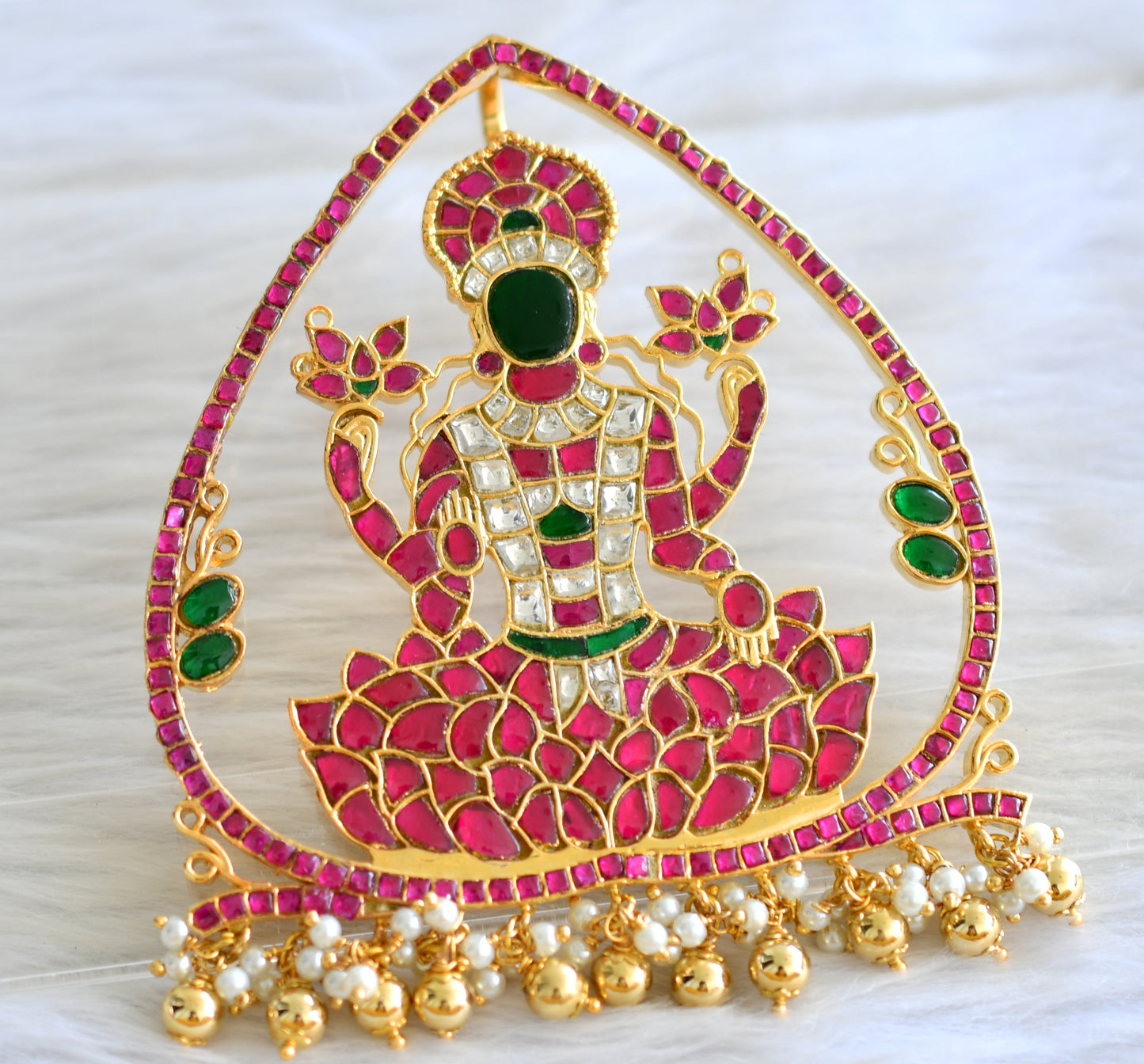 Gold tone pink-green-white kundan jadau lakshmi pendant dj-43500