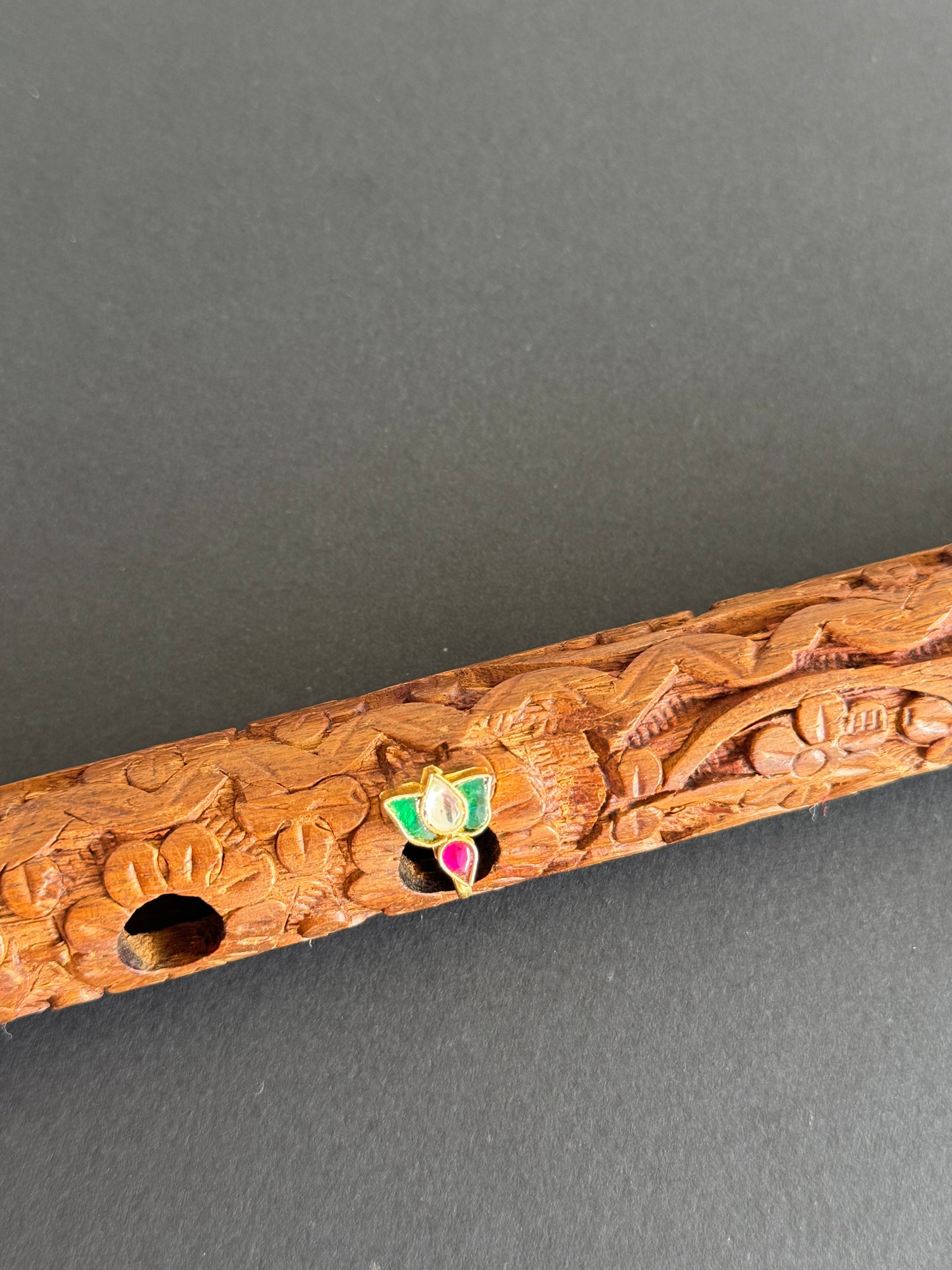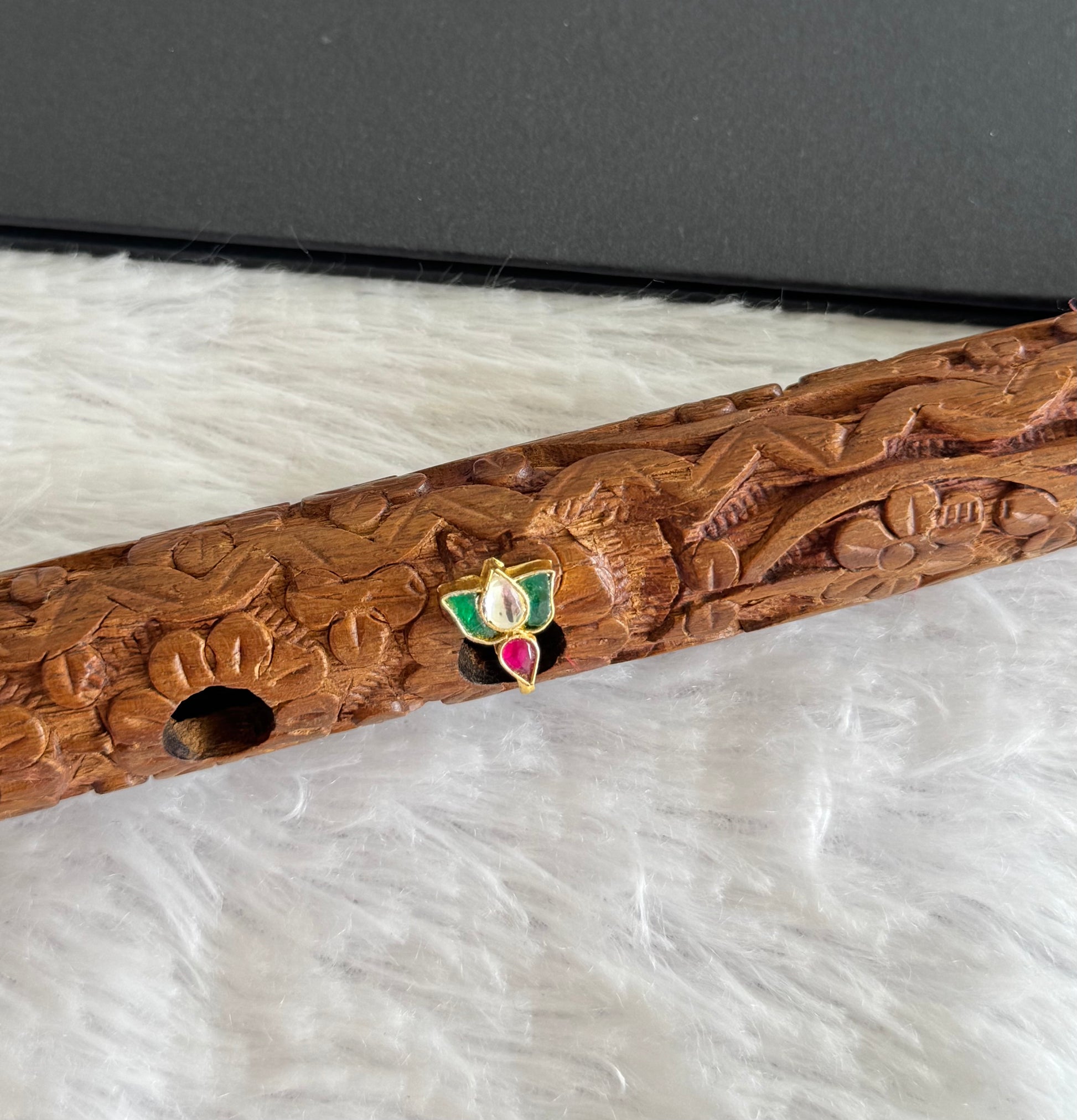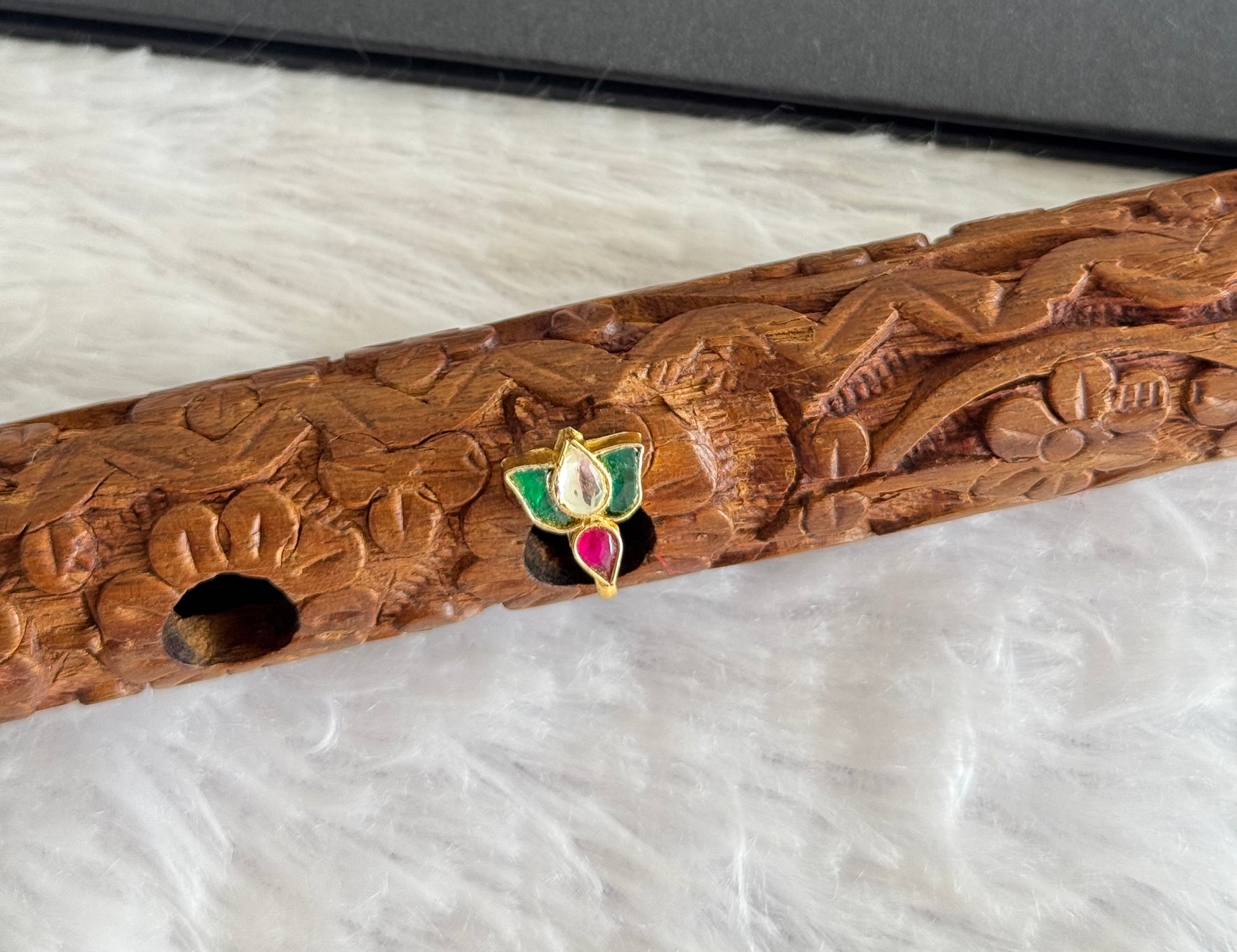 Gold tone pink-green-white kundan jadau lotus Nose Pin Dj-51419