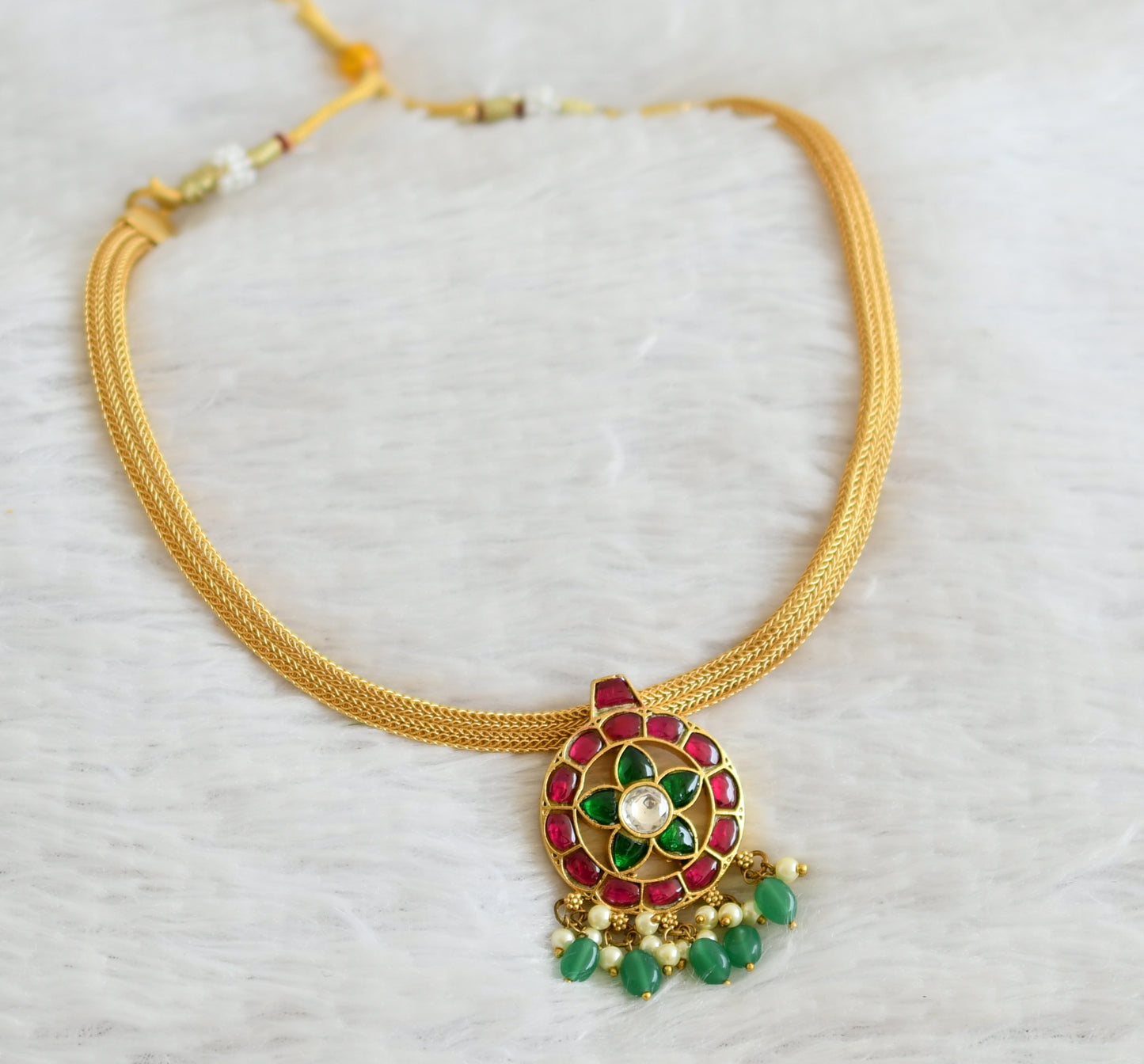 Gold tone pink-green-white kundan jadau necklace dj-36551