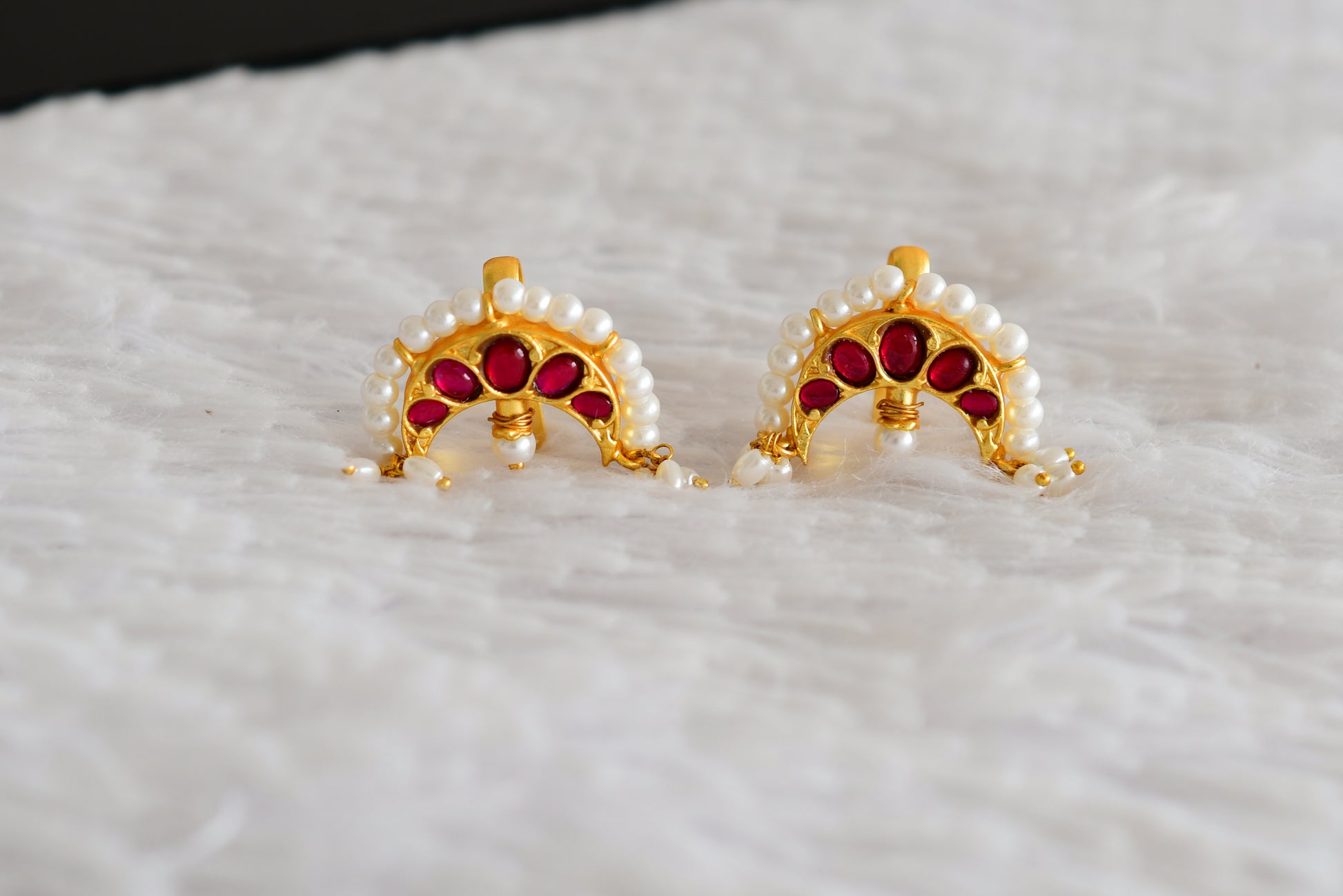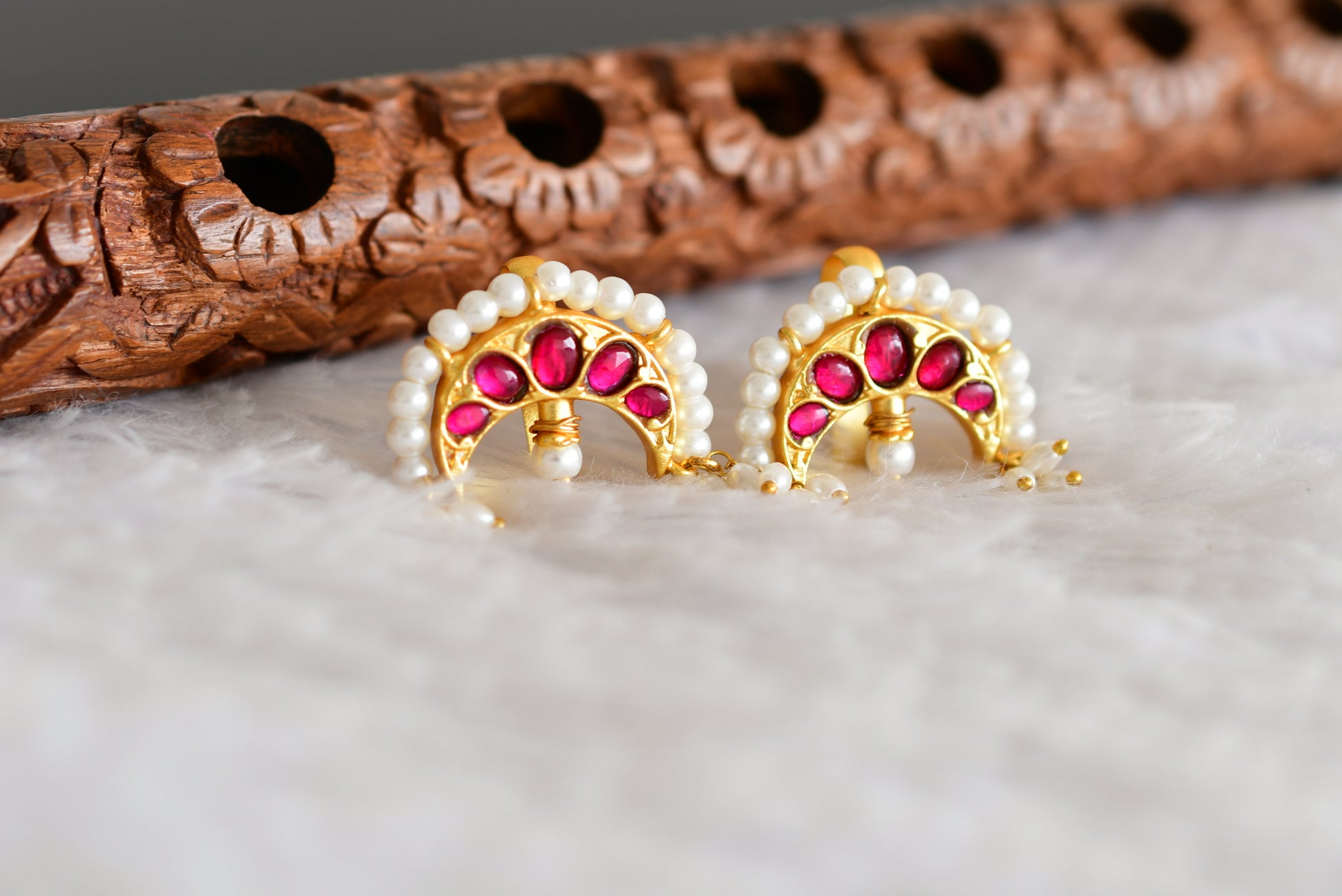 Gold tone pink kundan jadau moon bugadi earrings dj-52466