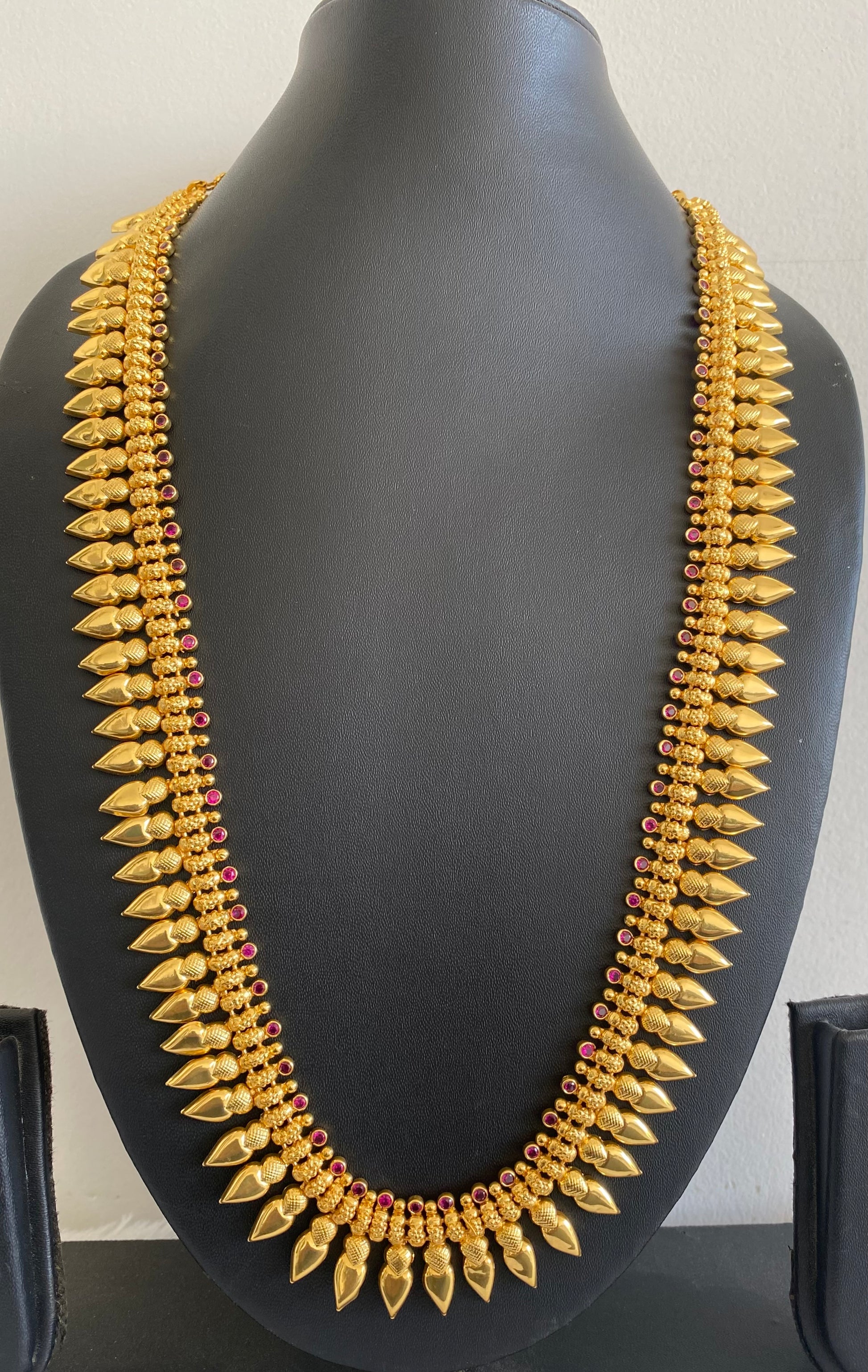 Gold tone pink stone kerala style heart haar dj-53171
