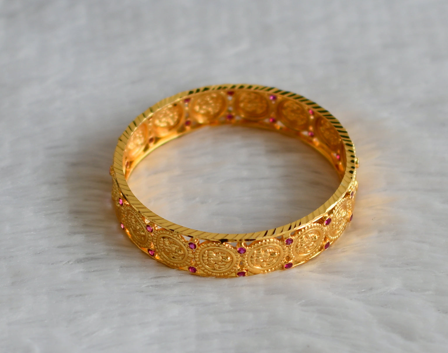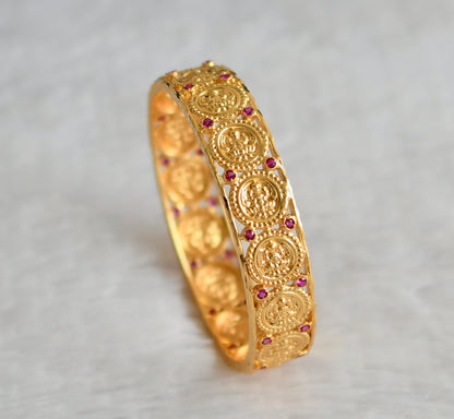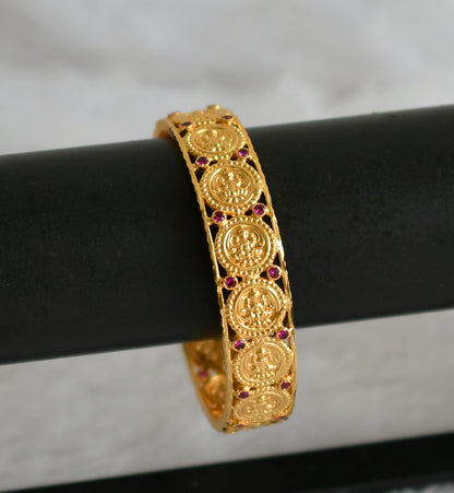 Gold tone pink stone lakshmi coin bangle(2.12) dj-49948