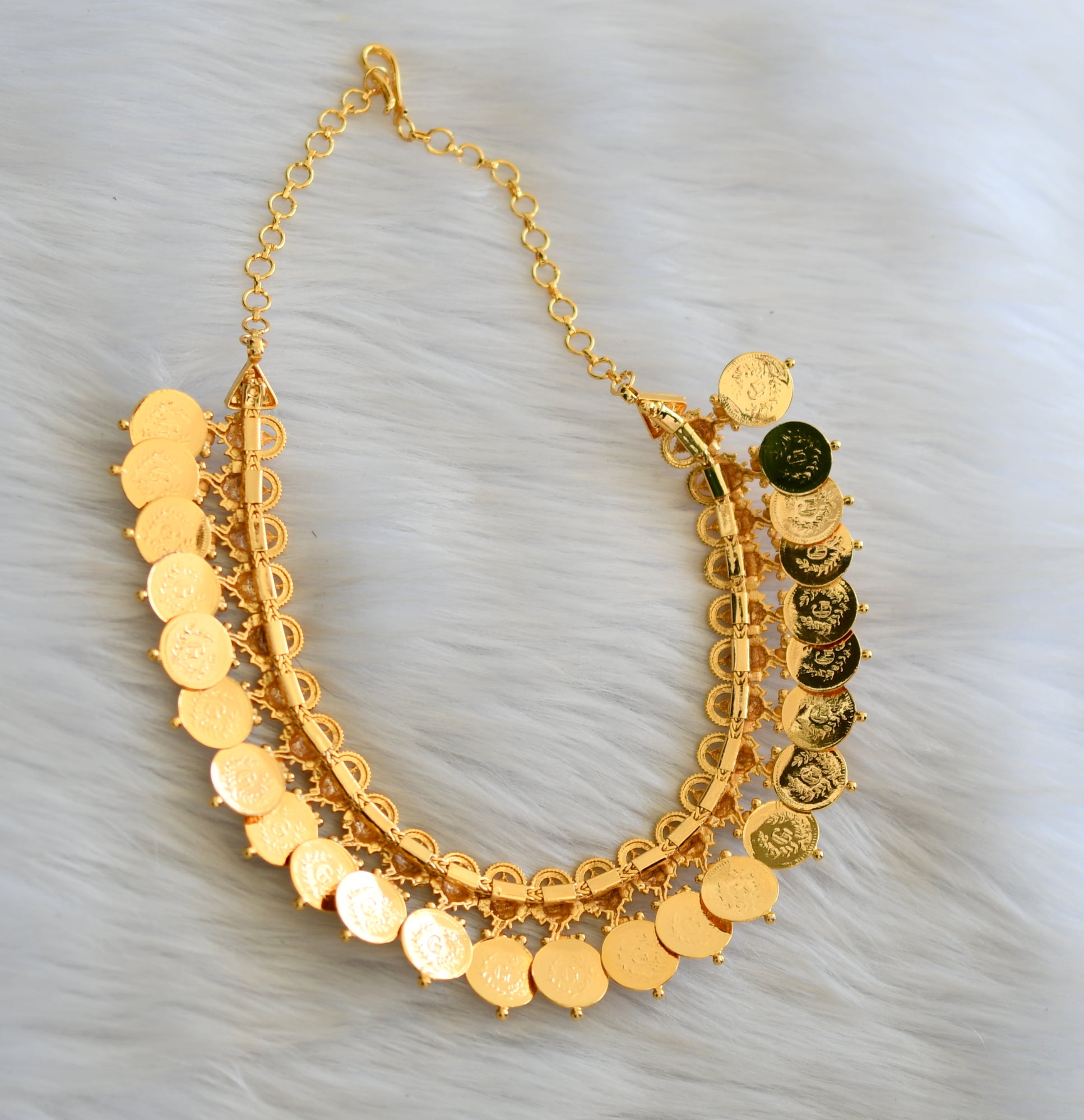Gold tone pink stone Lakshmi coin Ganesha Kerala style necklace dj-40825