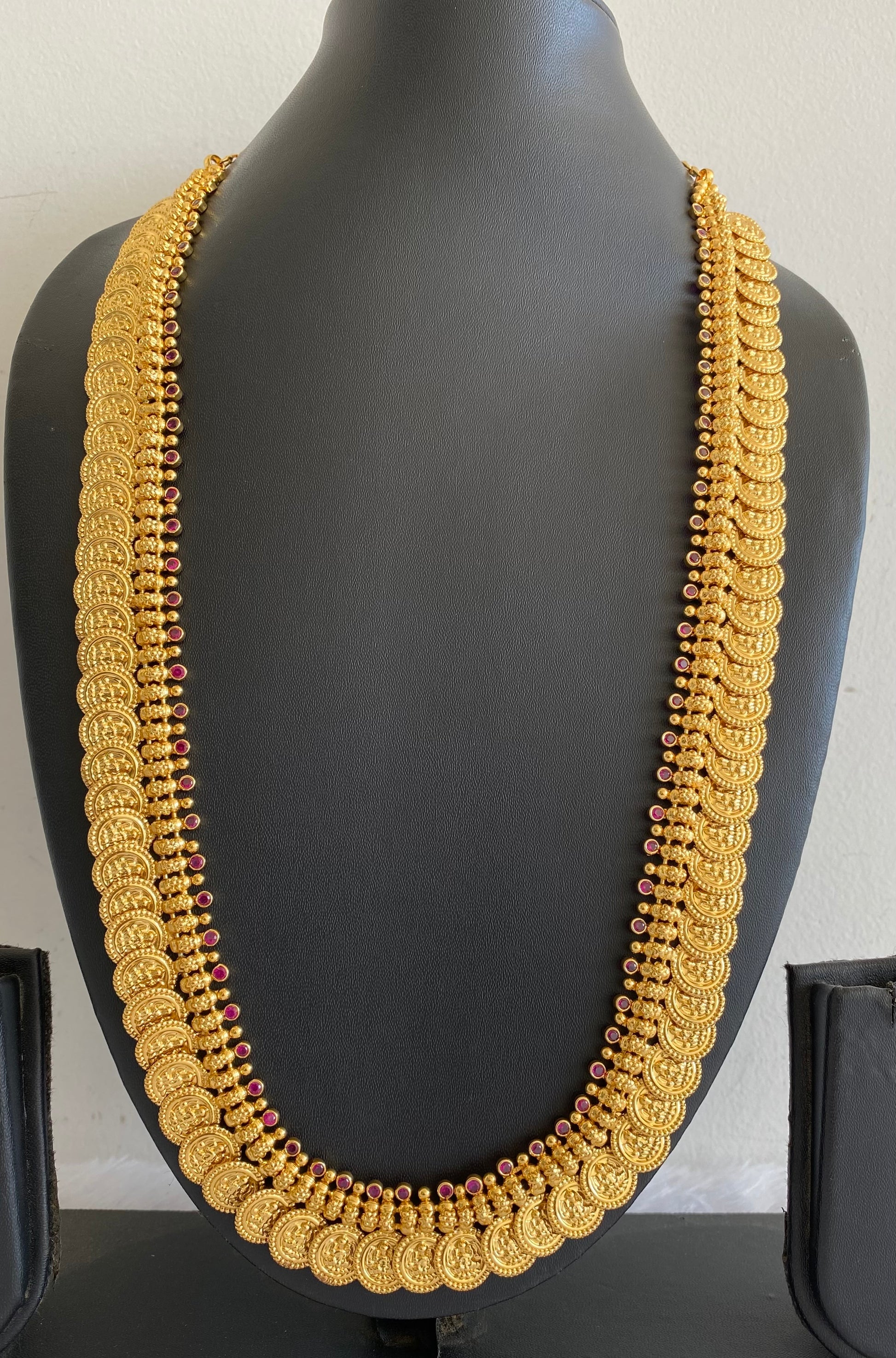 Gold tone pink stone lakshmi coin haar dj-53175