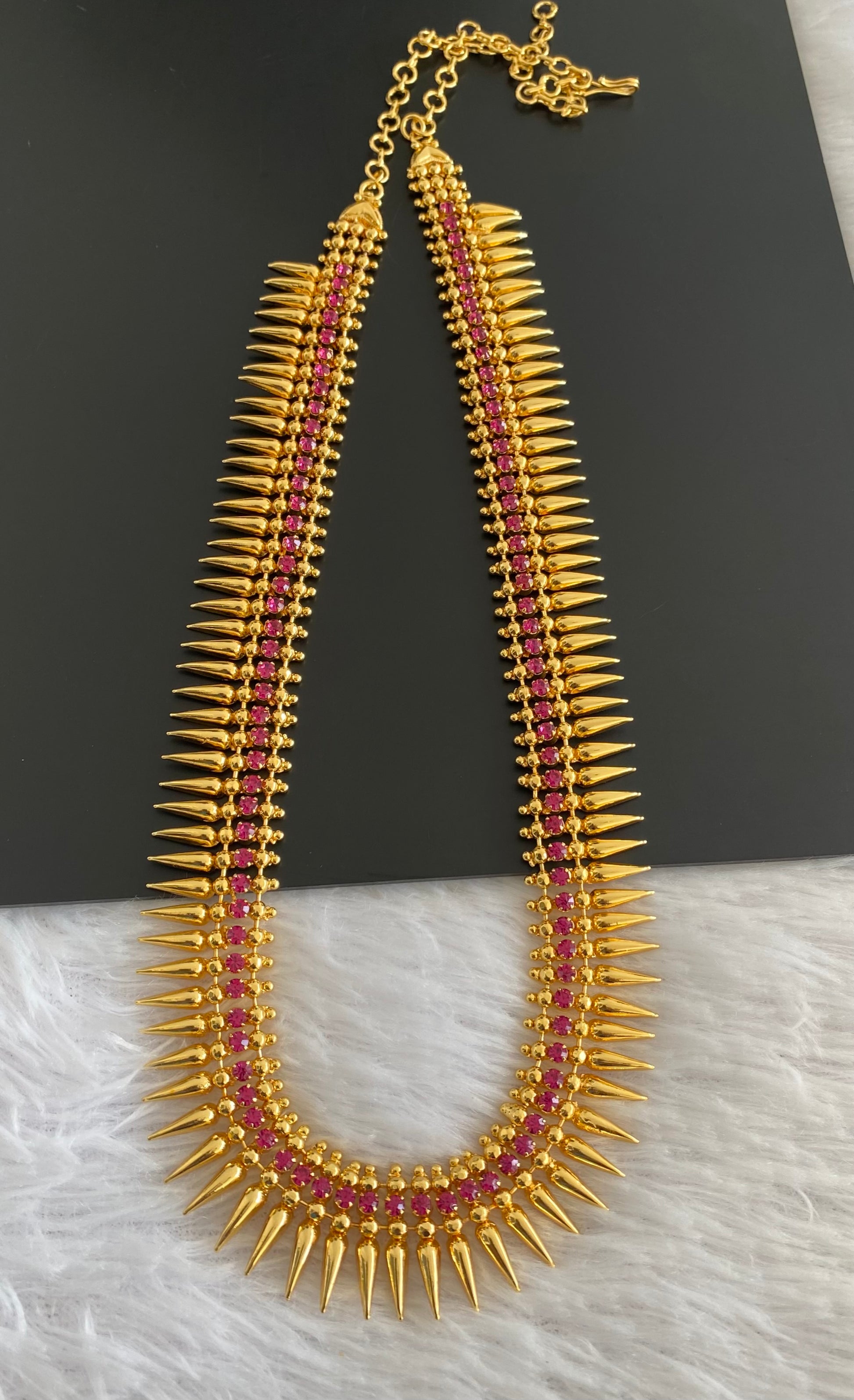 Gold tone pink stone mulla mottu kerala style haar dj-53147