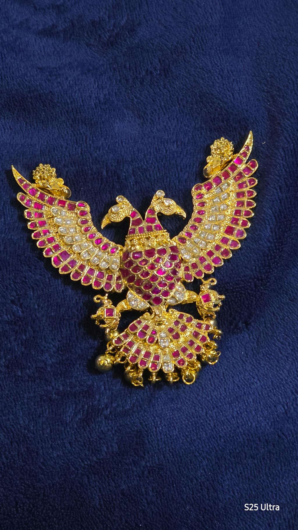 Antique gold tone kundan jadau Gandaberunda pendant dj-48799