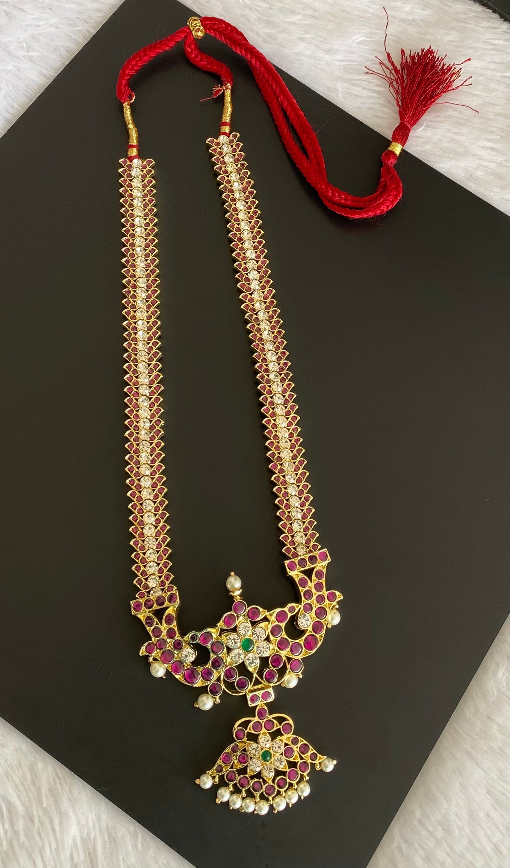 Gold tone precious kemp-green-white peacock flower pearl haar dj-53357