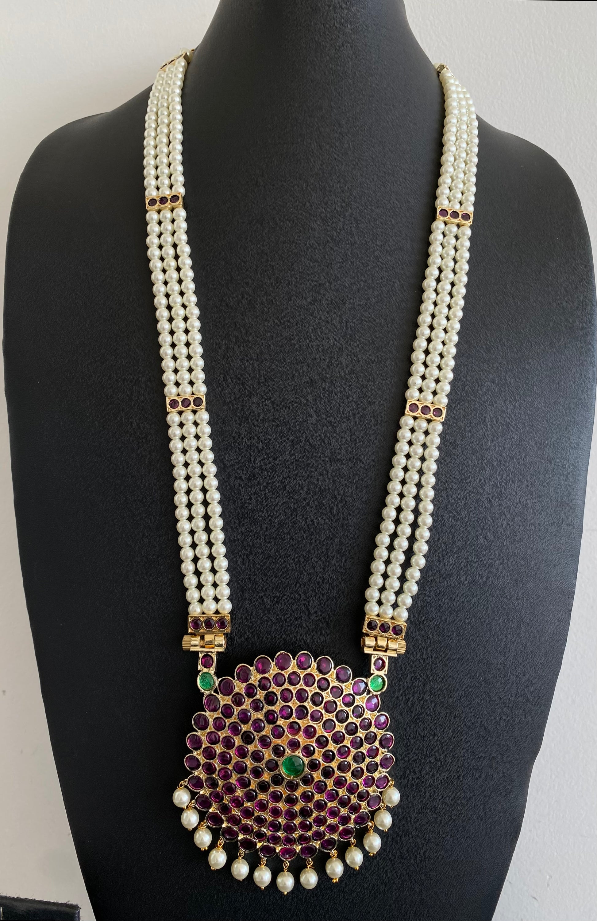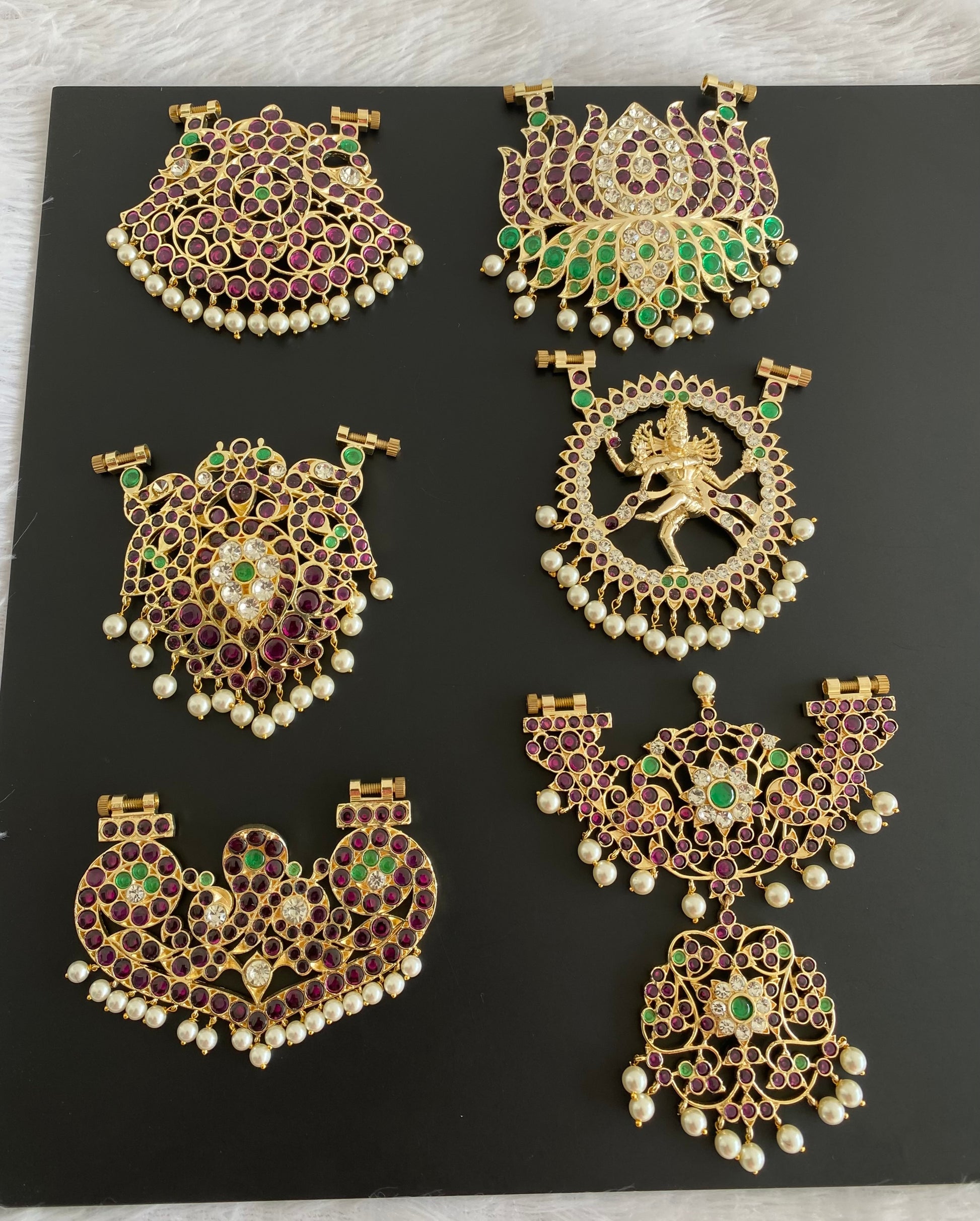 Gold tone precious kemp-green-white pearl haar with 7 interchangeable pendants dj-53380