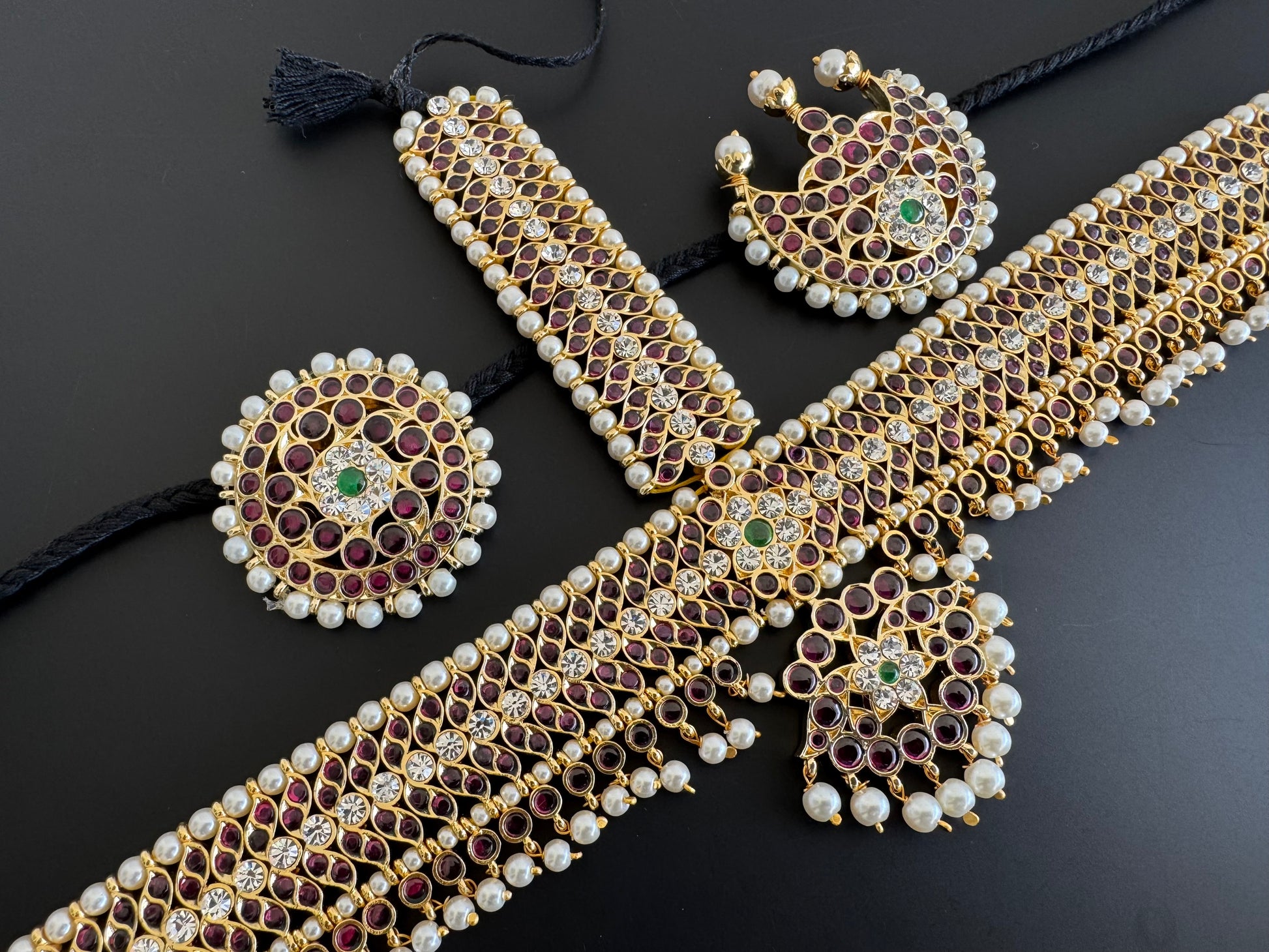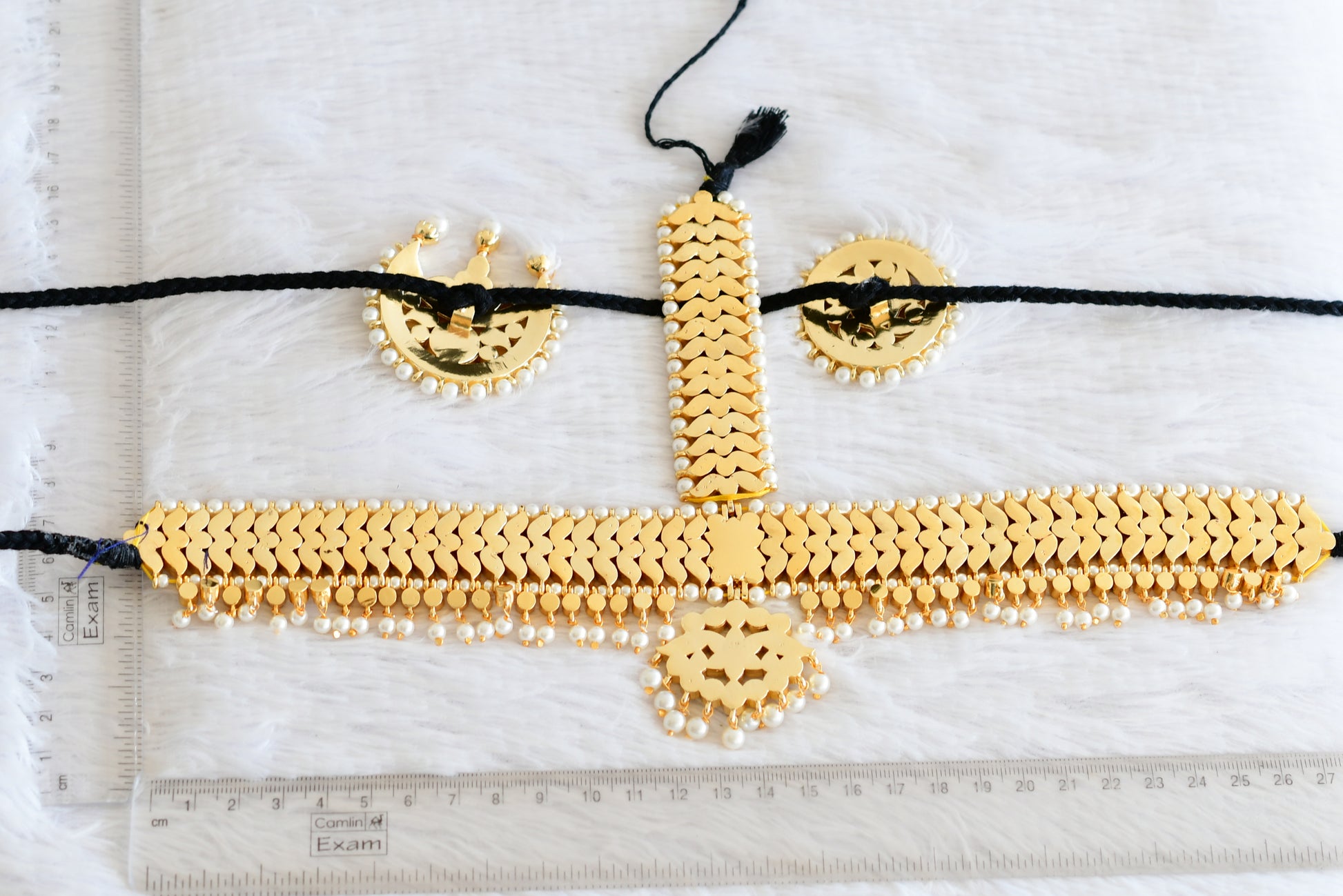Gold tone precious kemp-green-white pearl head set with sun moon dj-52526