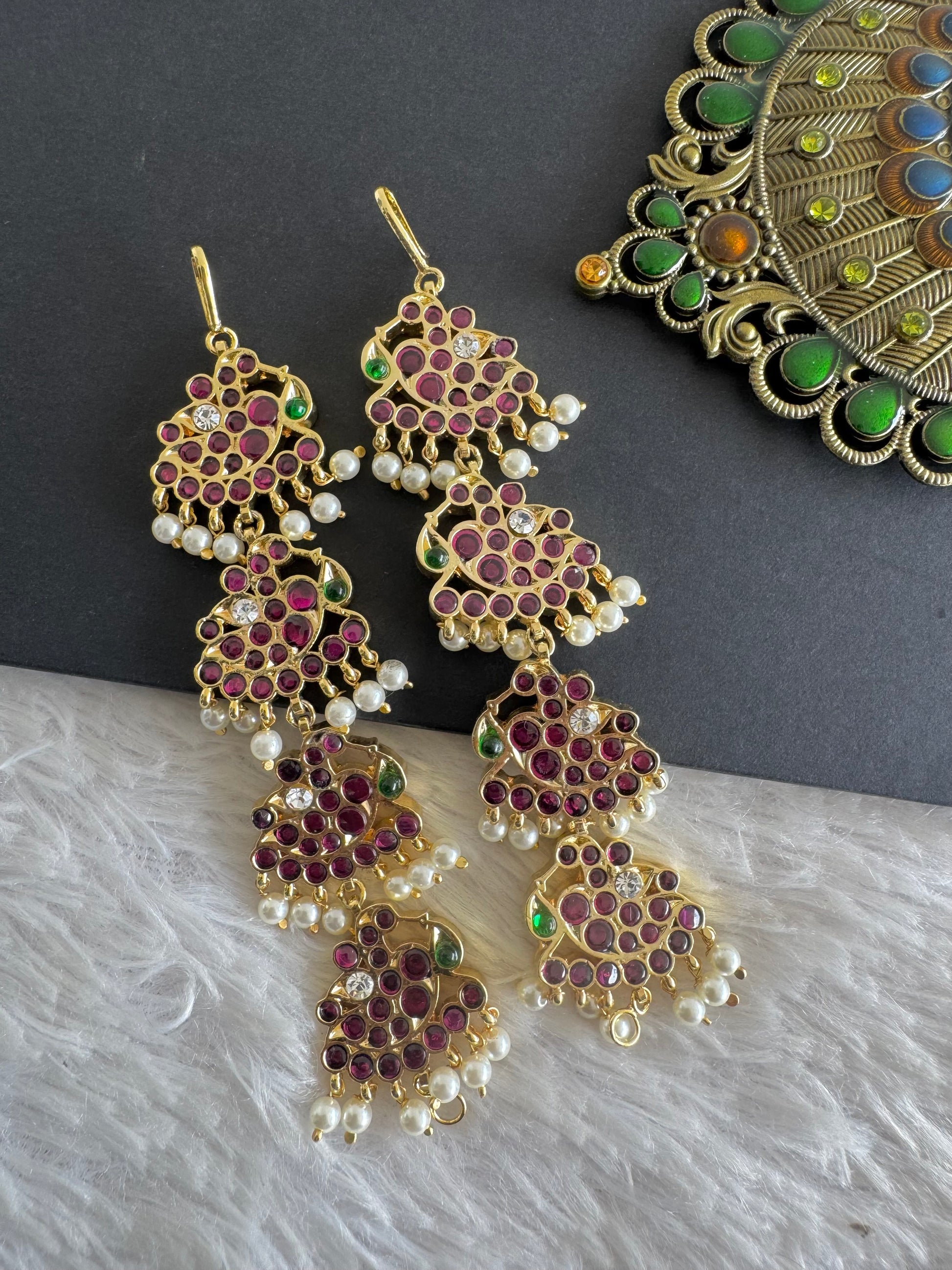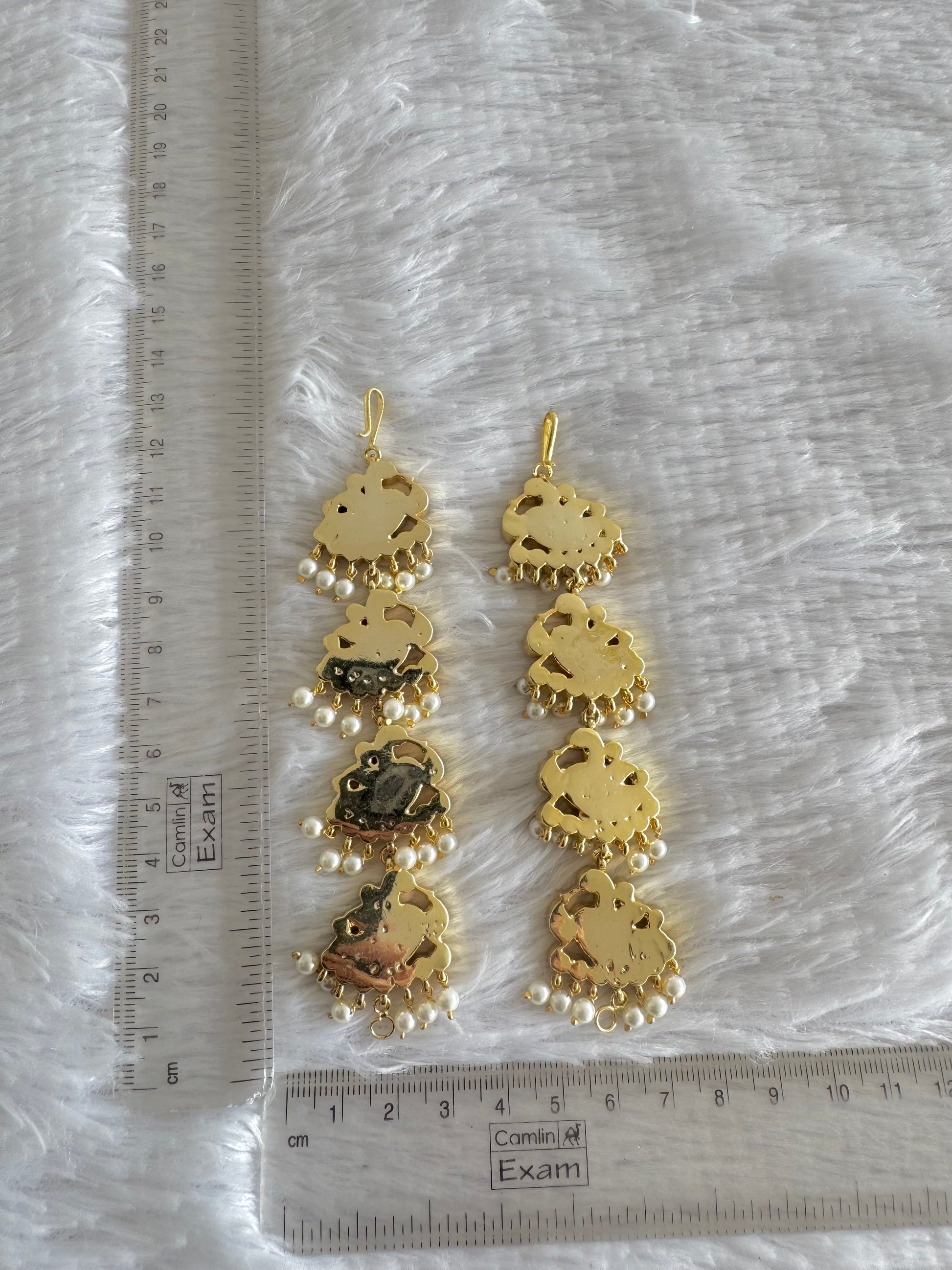 Gold tone precious kemp-green-white stone pearl peacock ear side chain dj-52010