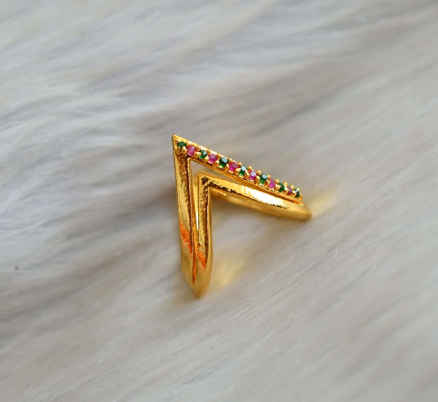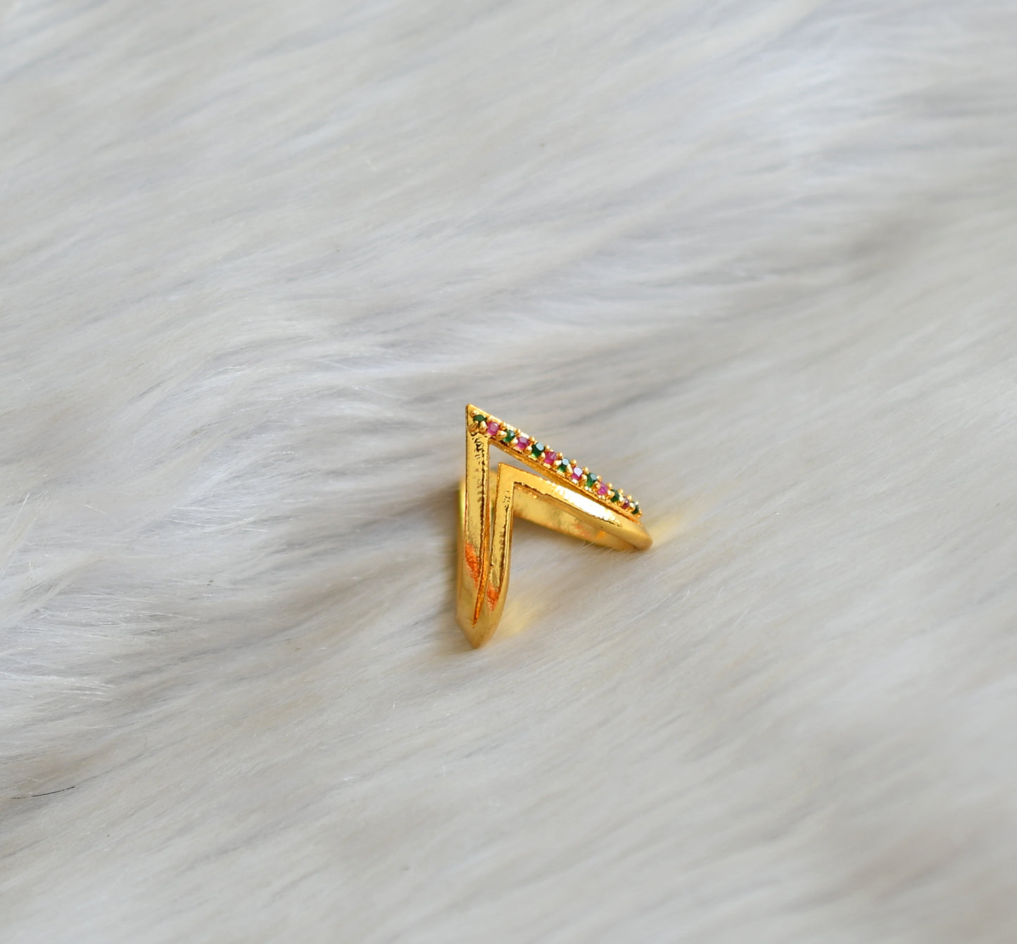 Gold tone ruby-green-white stone vanki finger ring dj-42462
