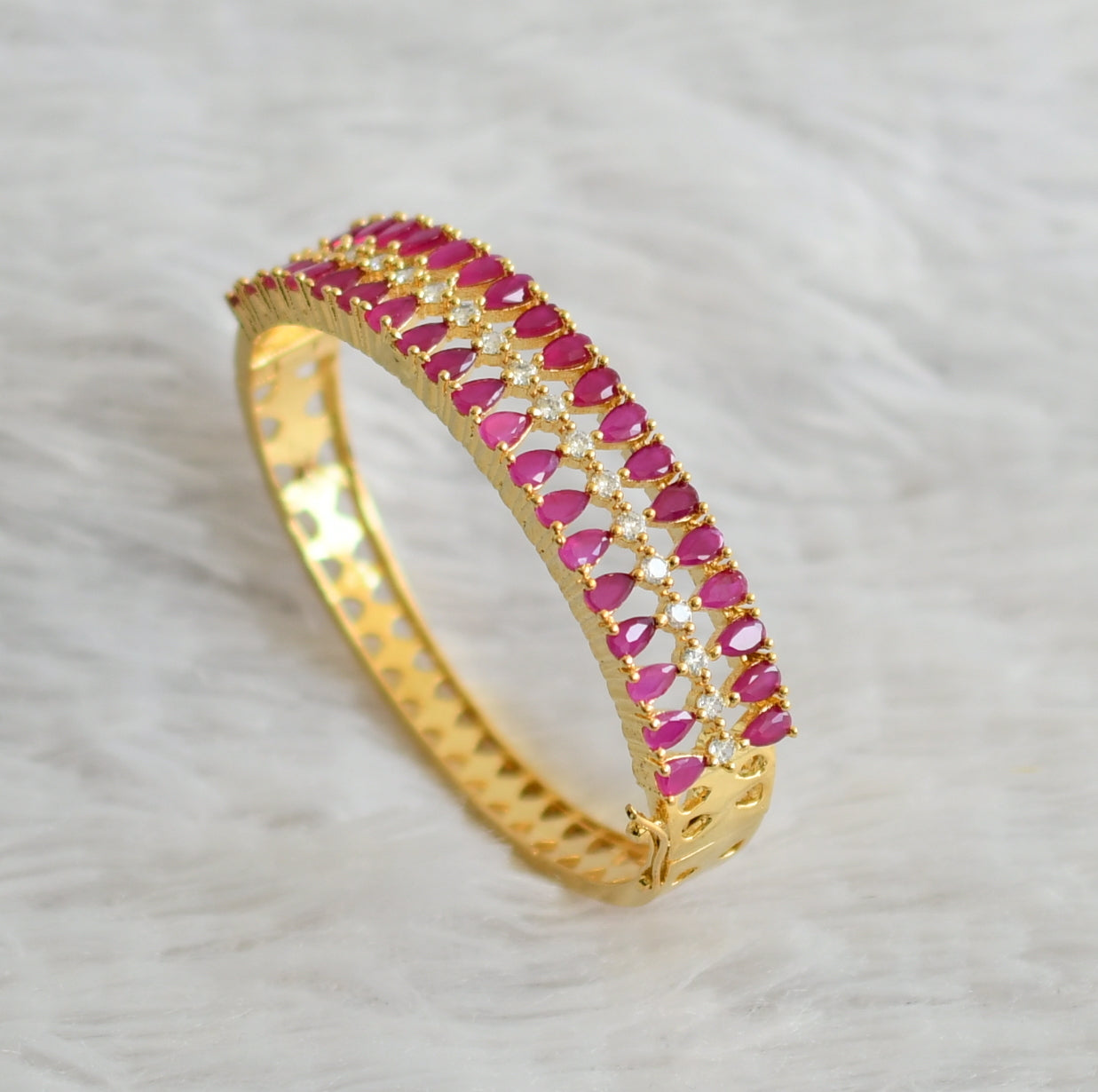 Gold tone ruby thialk stone lock type openable bracelet dj-47947