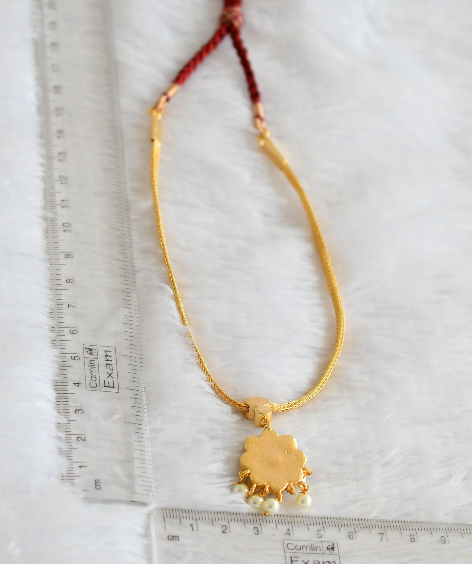 Gold tone precious kemp-green-pearl flower attigai necklace dj-50778