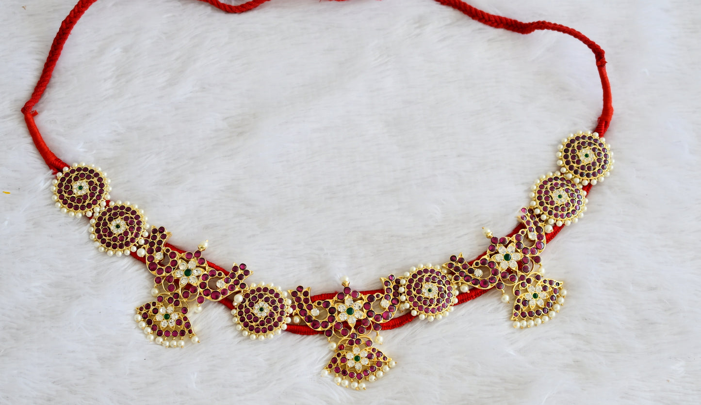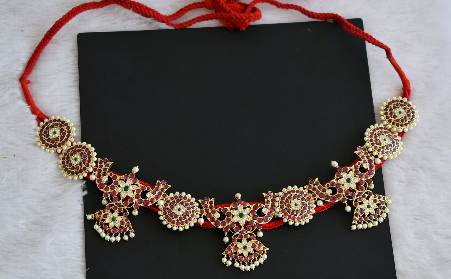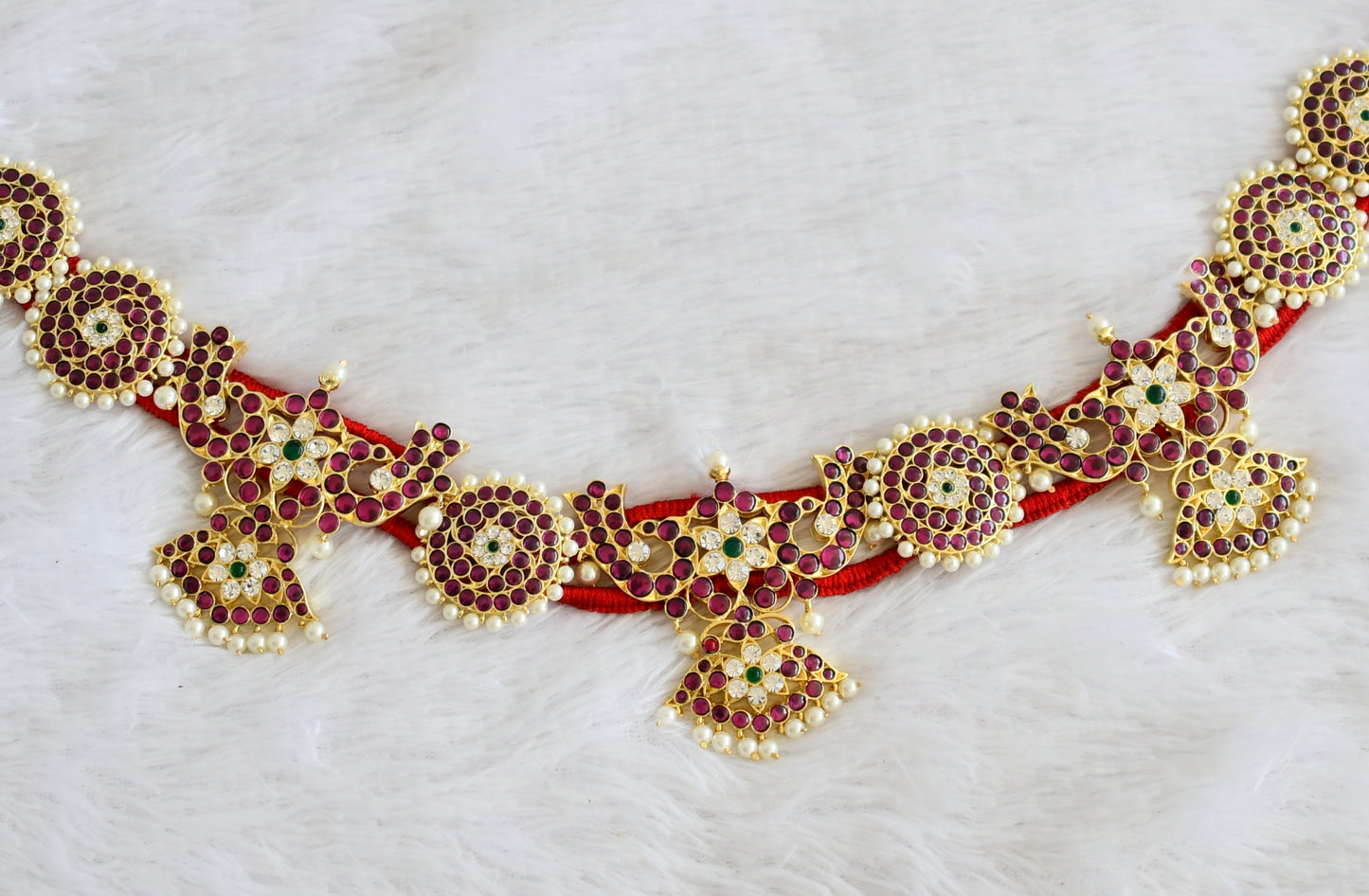 Gold tone precious kemp-green-white peacock round waist band dj-50280