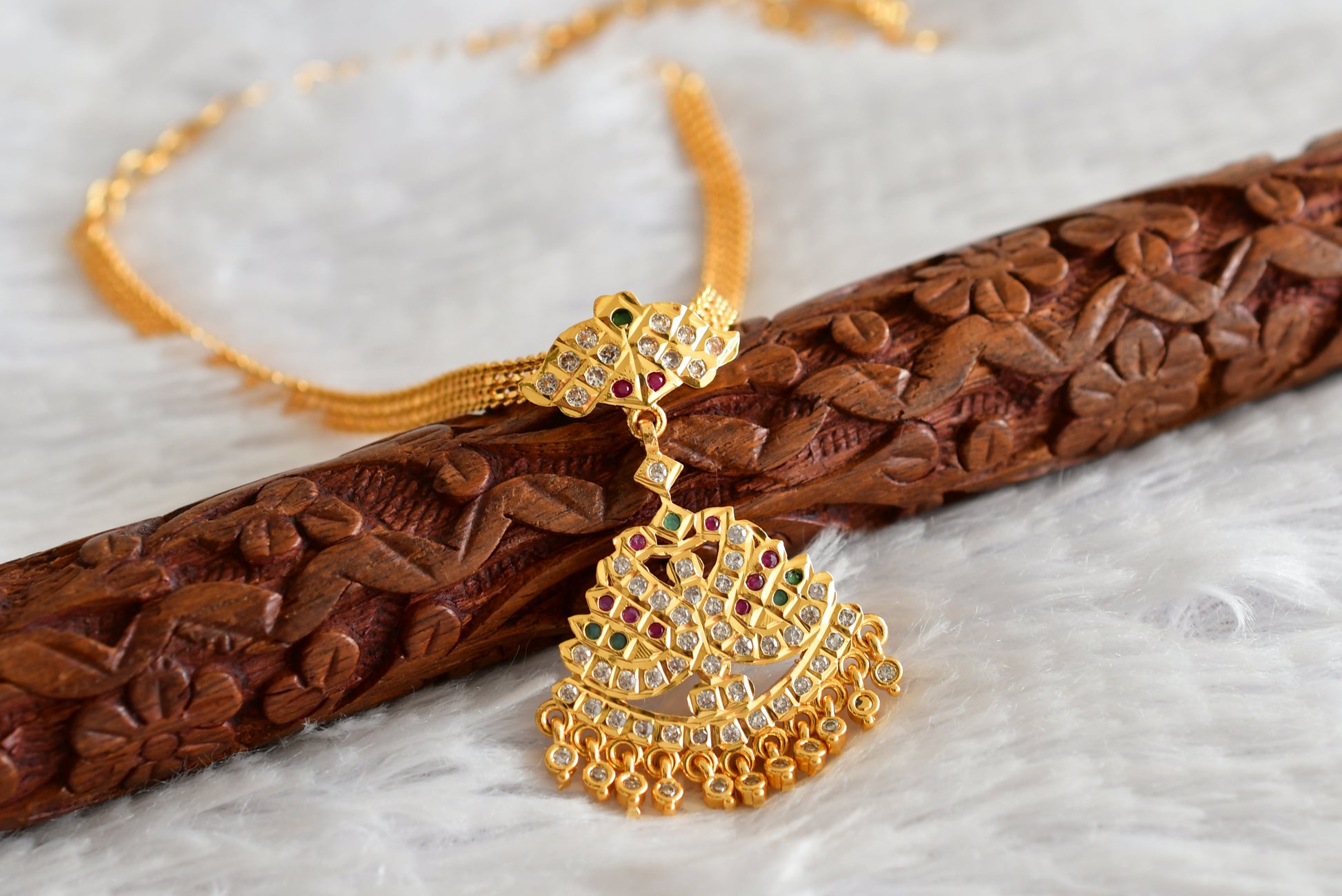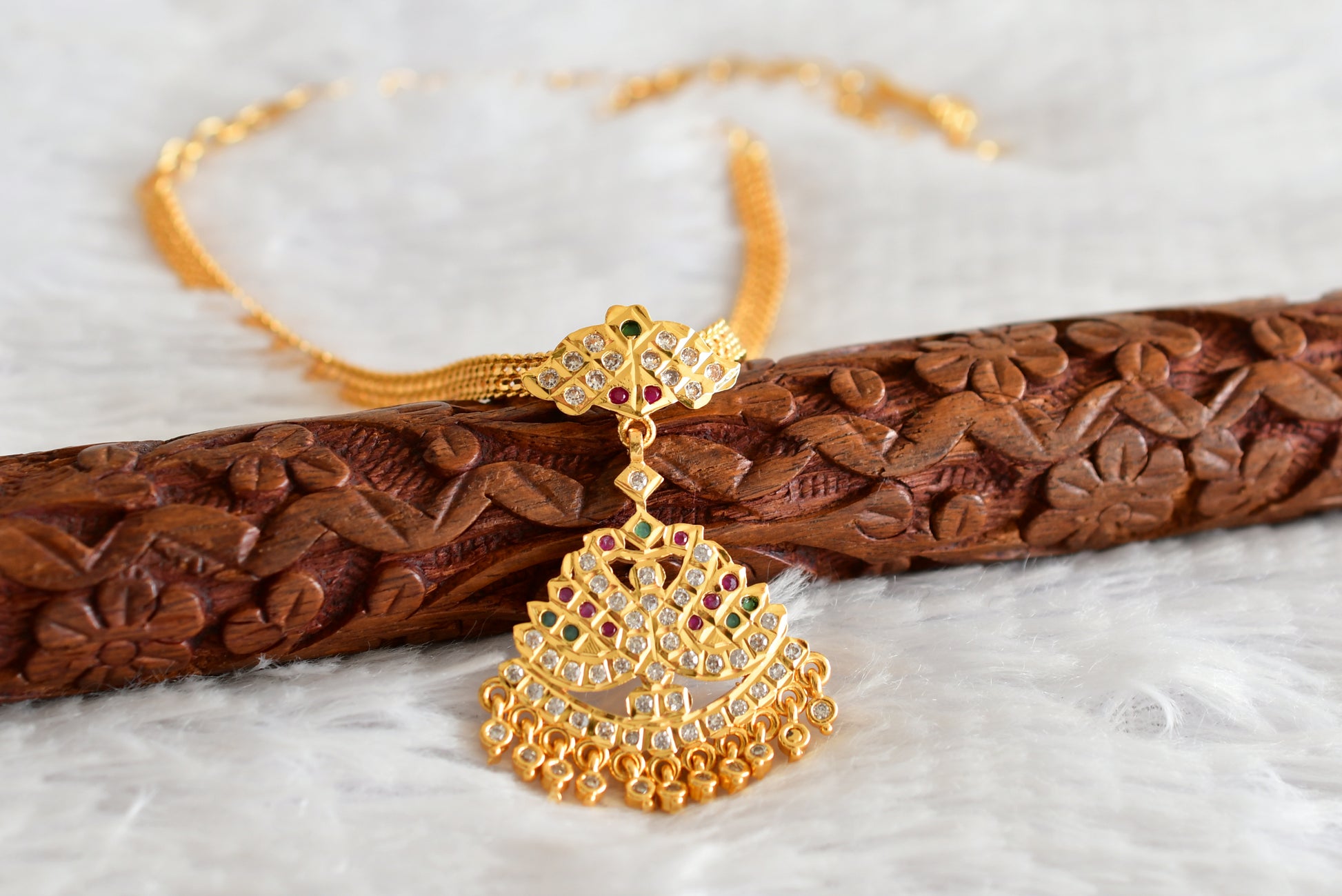Gold tone south indian AD pink-green-white swan attigai/necklace dj-51893