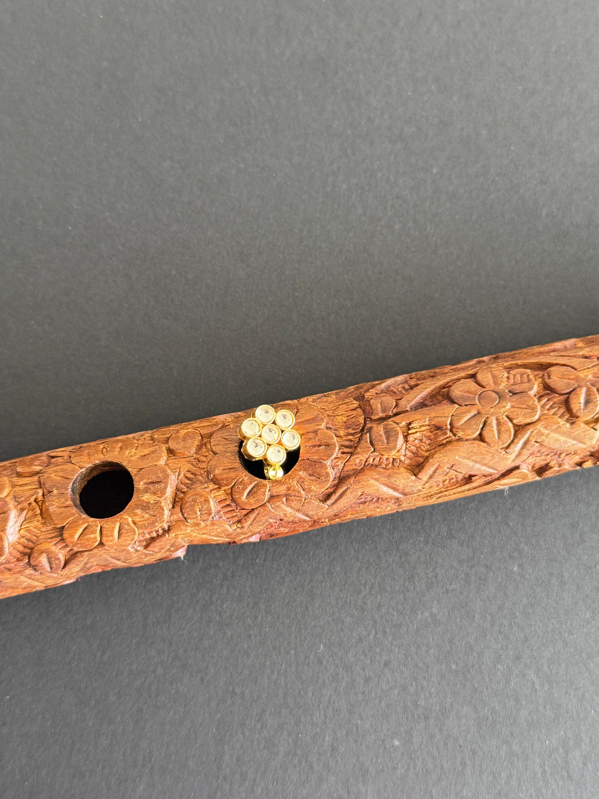 Gold tone white kundan jadau flower Nose Pin Dj-51422