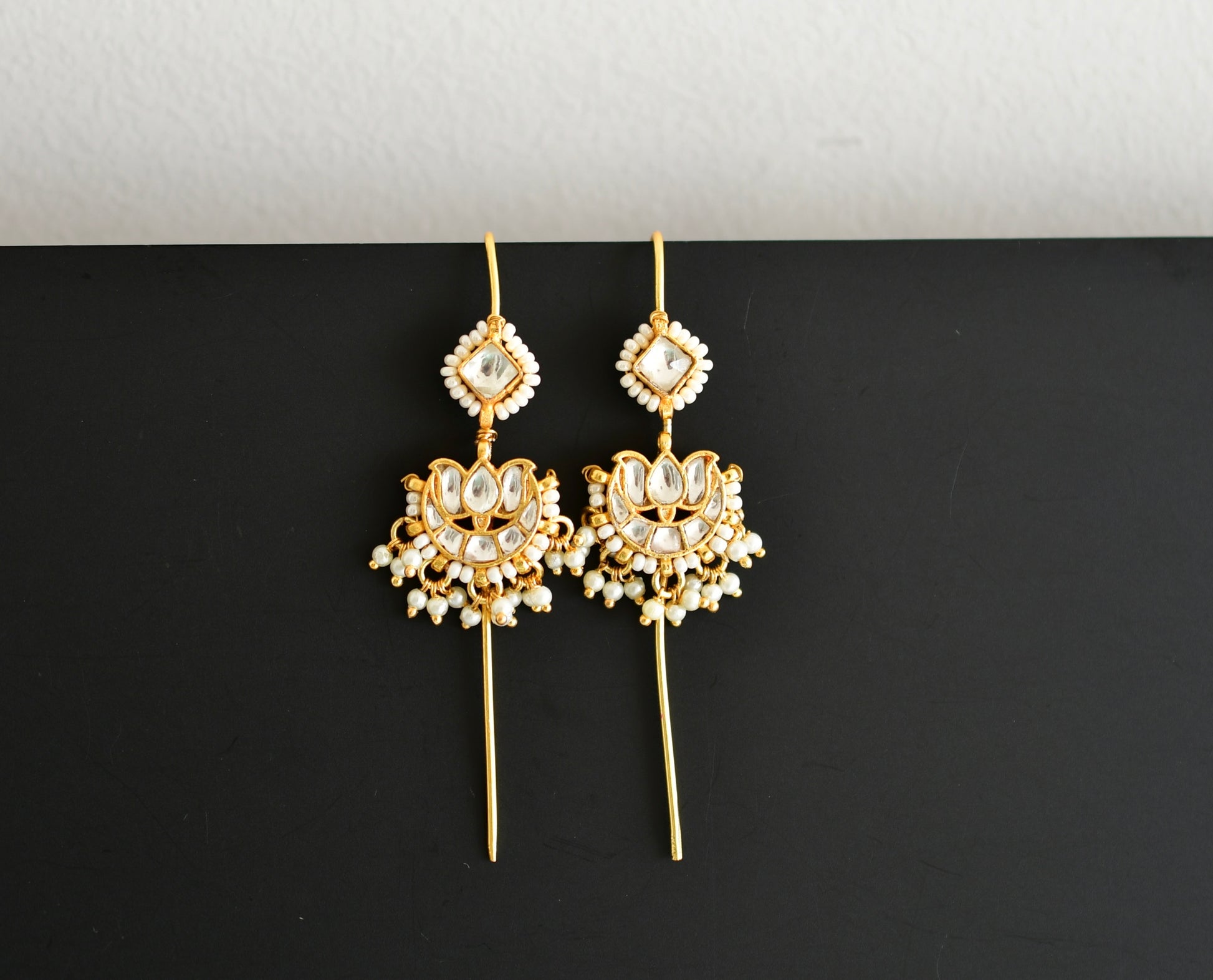Gold tone white kundan jadau lotus bugadi needle earrings dj-52448