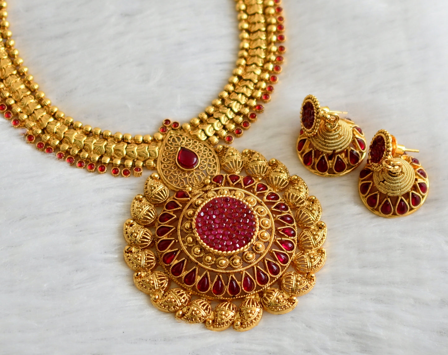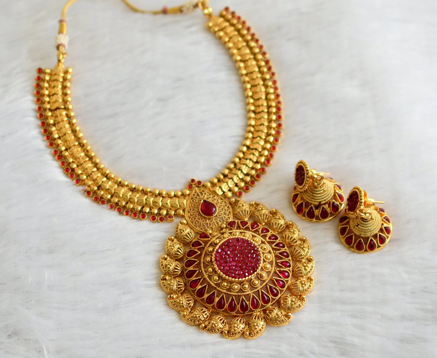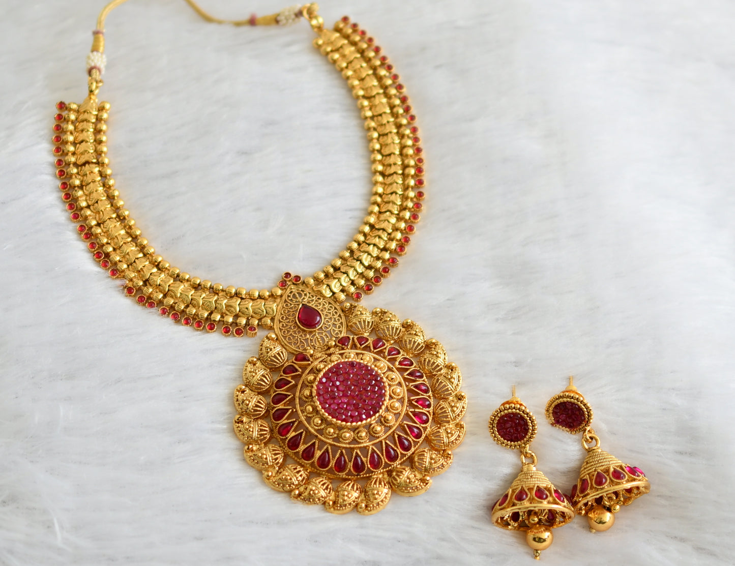 Antique Gold Tone Transparent Pink Necklace Set dj-09266