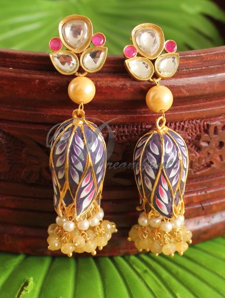 Antique Purple Meenakari Kundan Lotus jhumkka-dj14553
