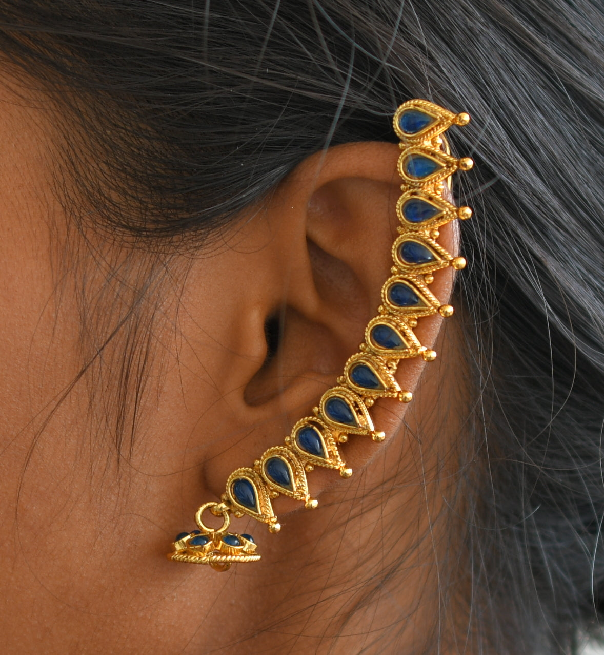 Antique Blue Ear Cuff With Small Jhumkka-dj04068