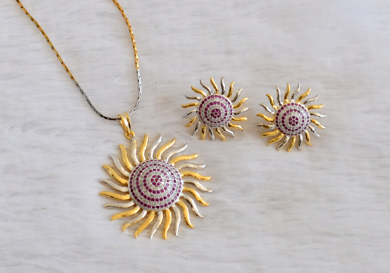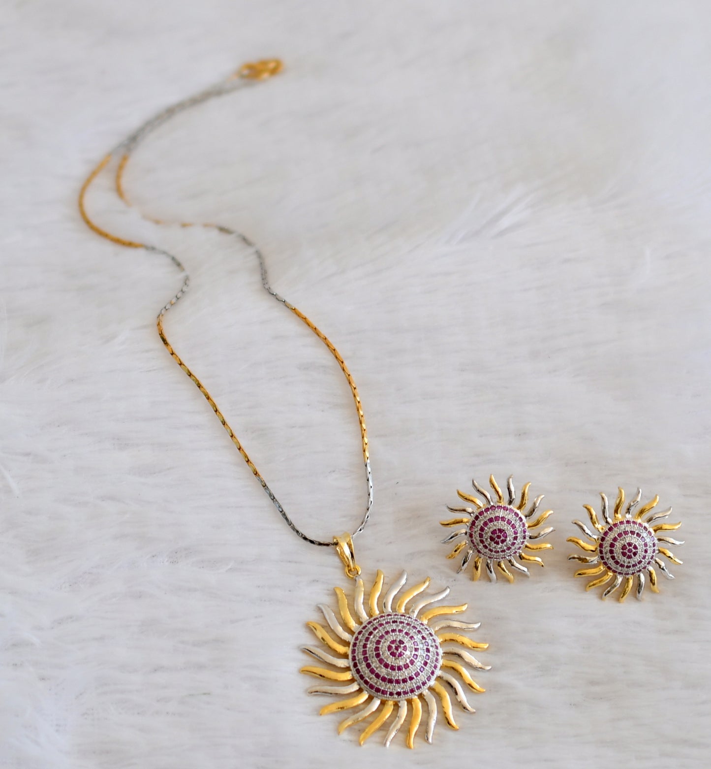 Two tone Cz-ruby Sun flower Designer Necklace Set-dj05009
