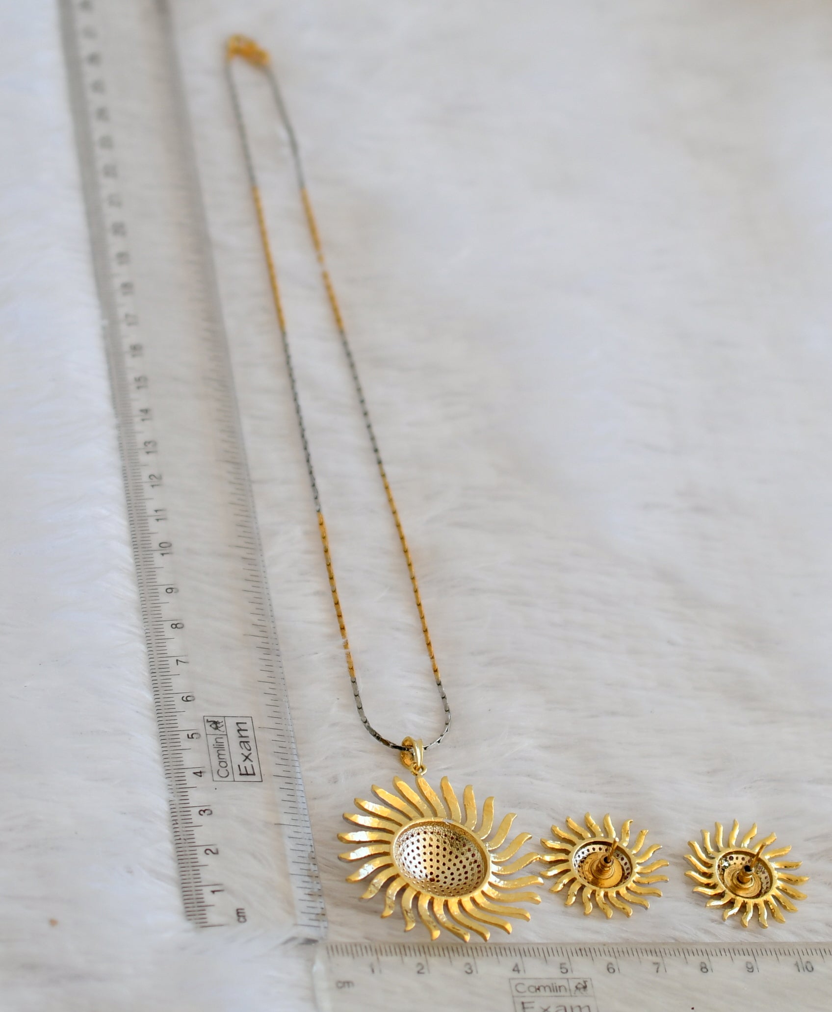 The product includes a necklace and a pair of earringsEarrings height-25mm   width-25mmNecklace  Height-26cms(Each side)